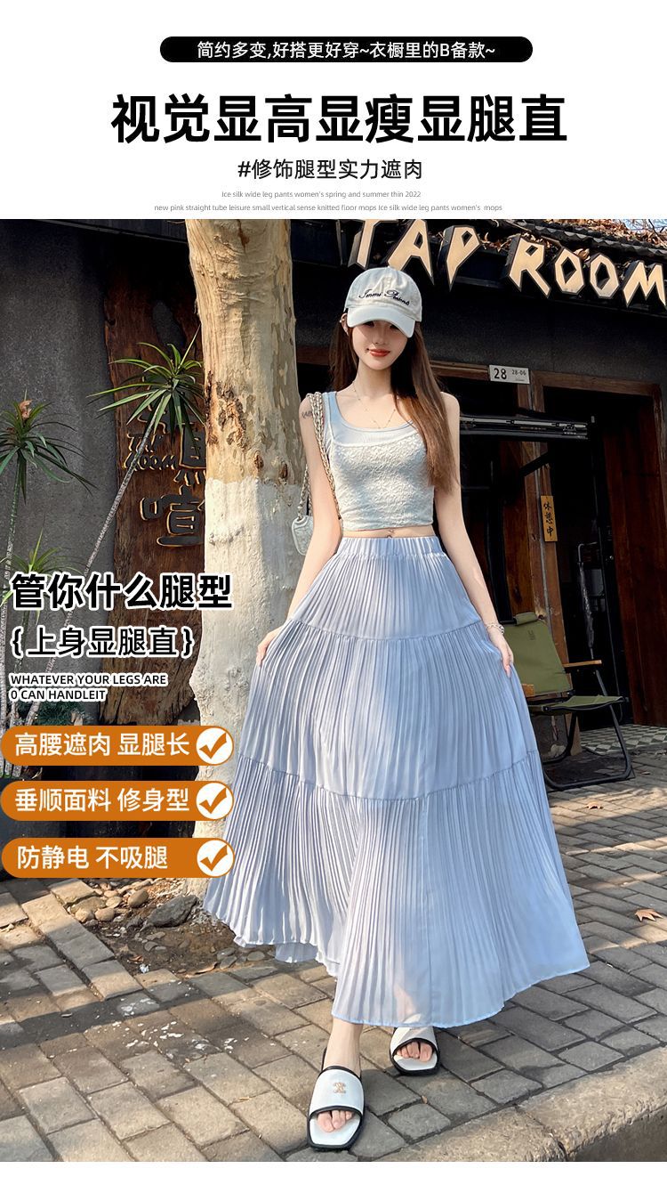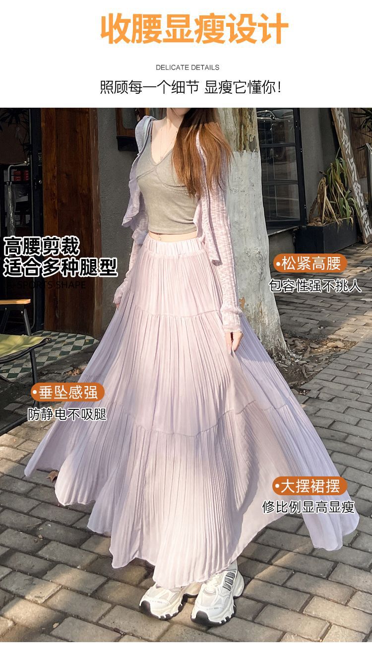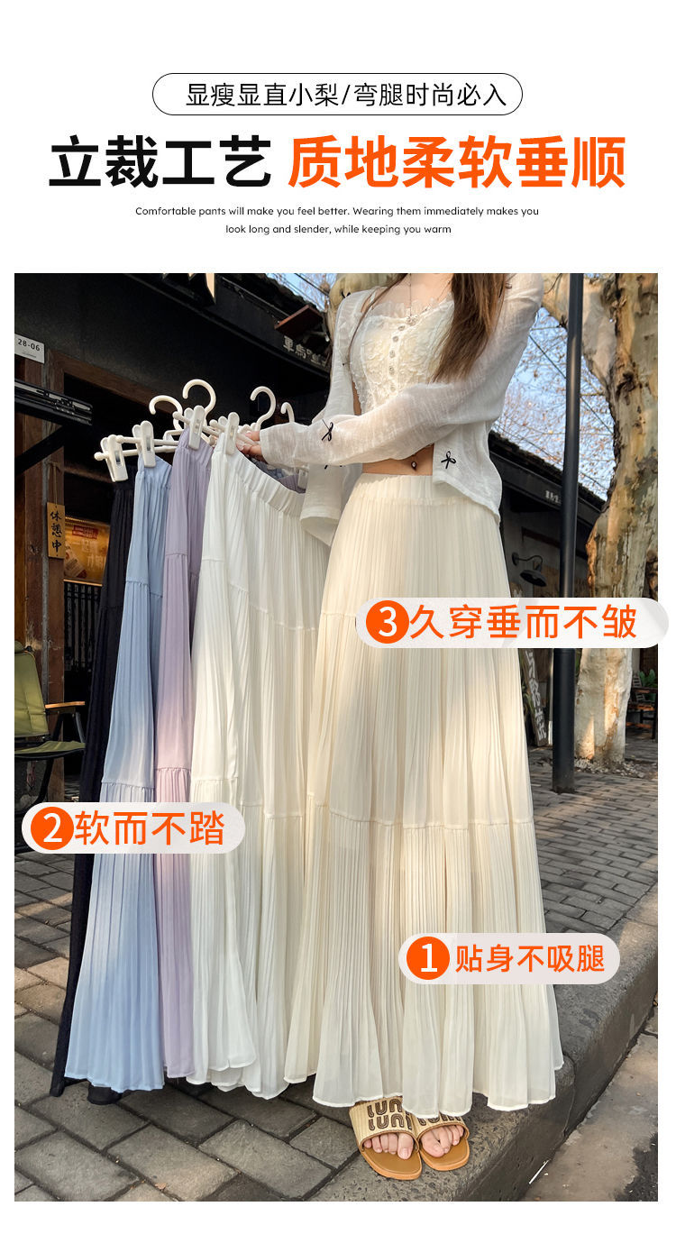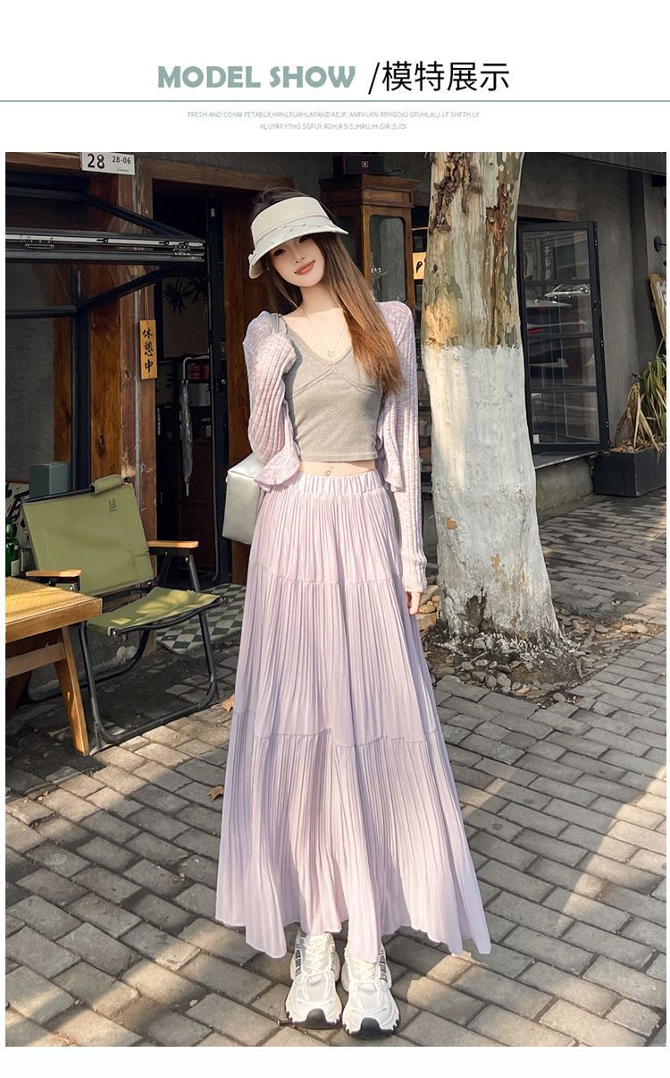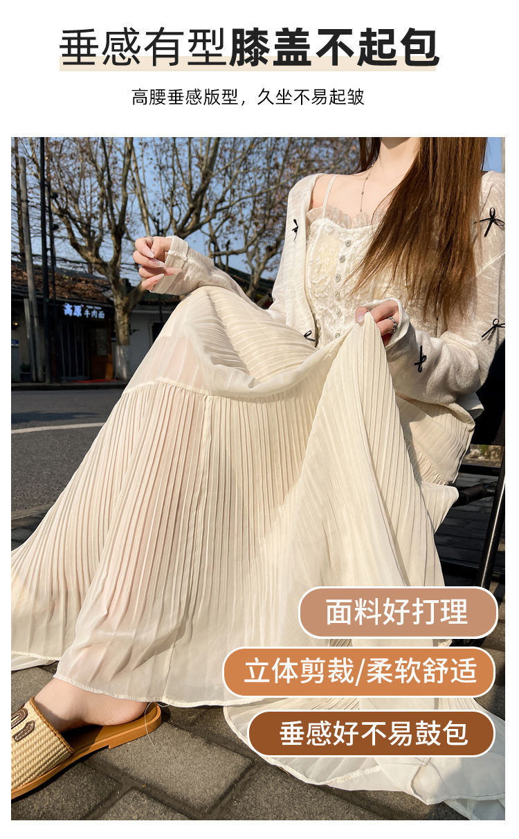(안감 포함) 주름 공예 플리츠 스커트 여성 봄과 가을 여름 새로운 높은 허리 A 라인 엉덩이 커버 긴 스커트스토어 가기