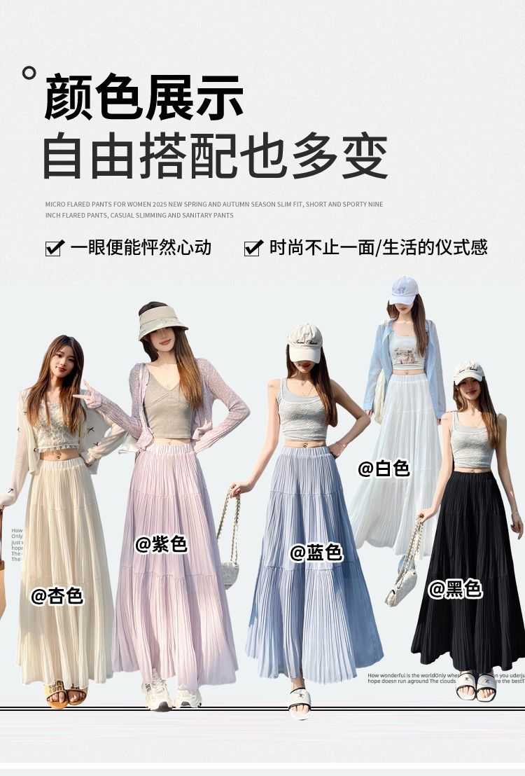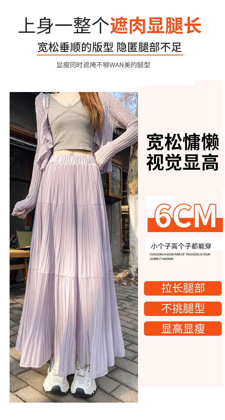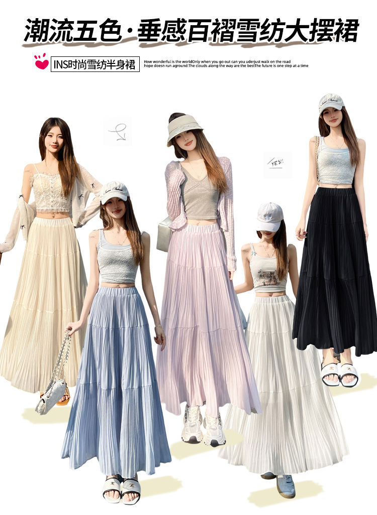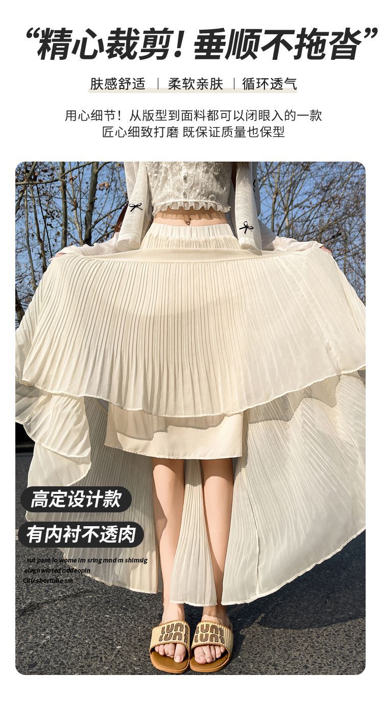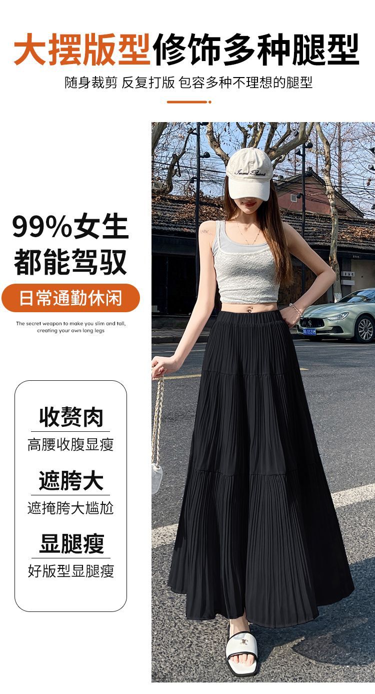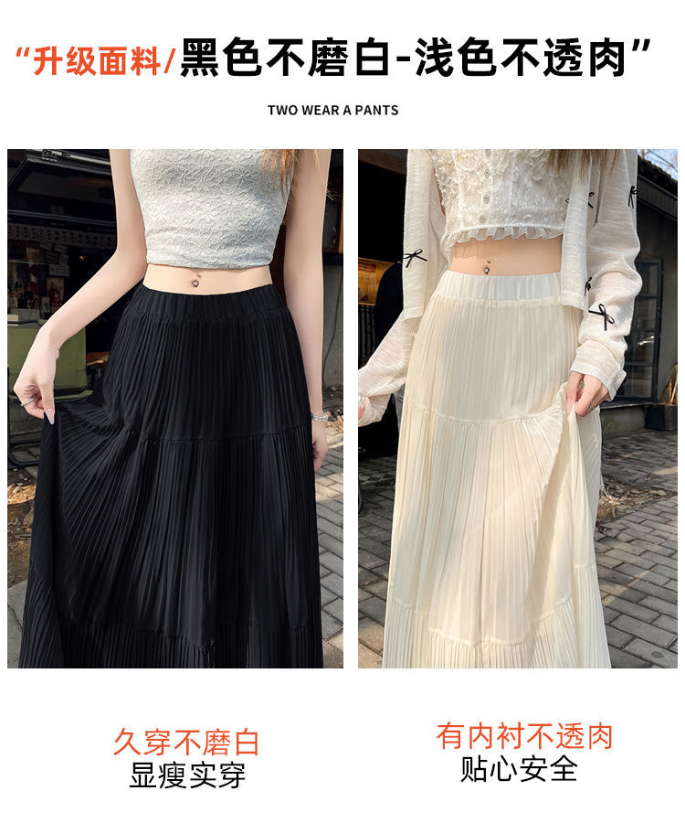 (안감 포함) 주름 공예 플리츠 스커트 여성 봄과 가을 여름 새로운 높은 허리 A 라인 엉덩이 커버 긴 스커트