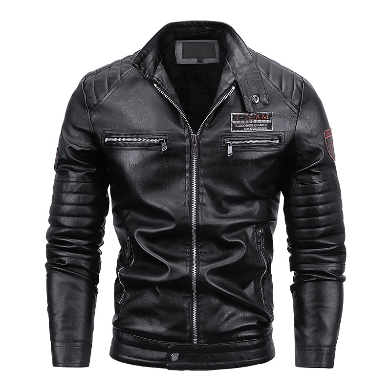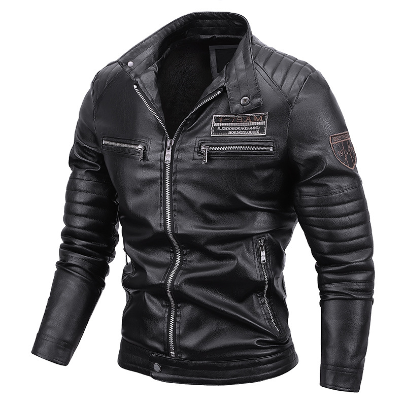 겨울 벨벳 스탠드 칼라 크로스 보더 남성 가죽 자켓 따뜻한 겨울 캐주얼 PU 오토바이 가죽 자켓 크로스 보더 스팟스토어 가기