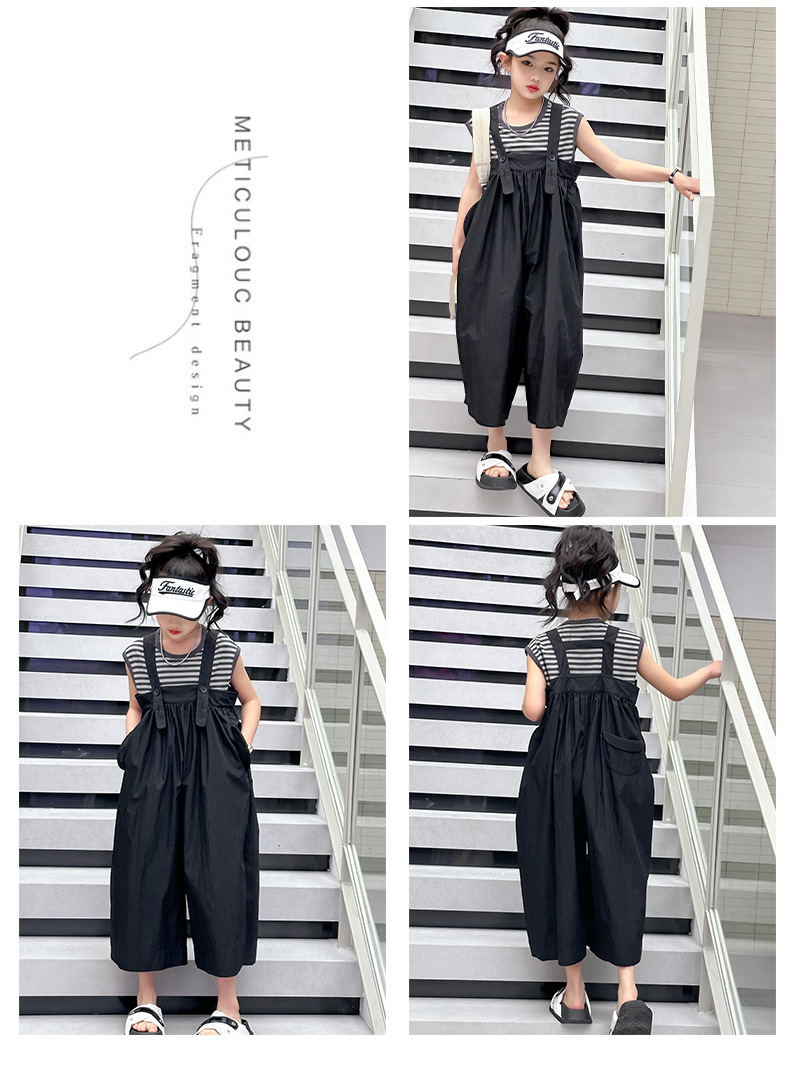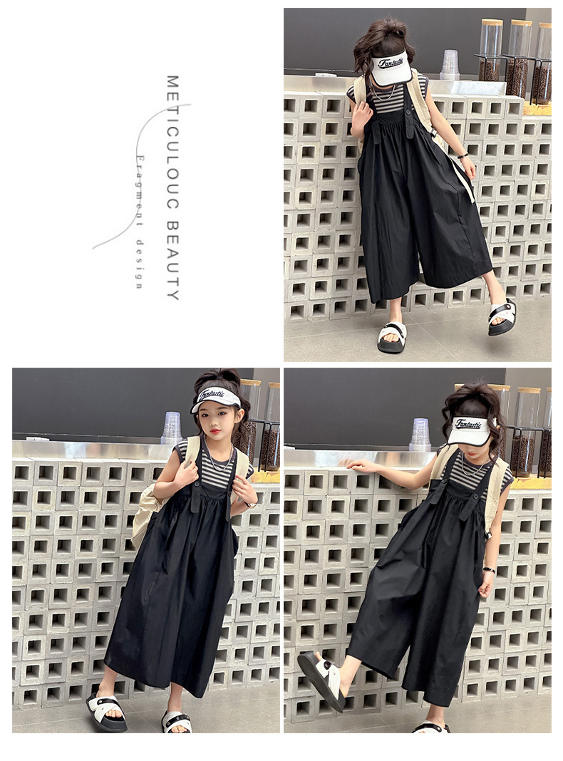 여자 2025 신식 스트래퍼 세트 패션 조끼 줄무늬 서양식 걸스 여름 세트 한국식 중년 어린이