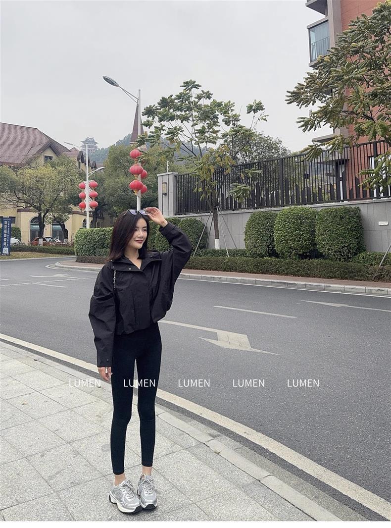 룰루 같은 스타일 비 체이서 여성 스포츠 방풍 재킷 방수 작은 비옷 짧은 코트 재킷 캐주얼스토어 가기
