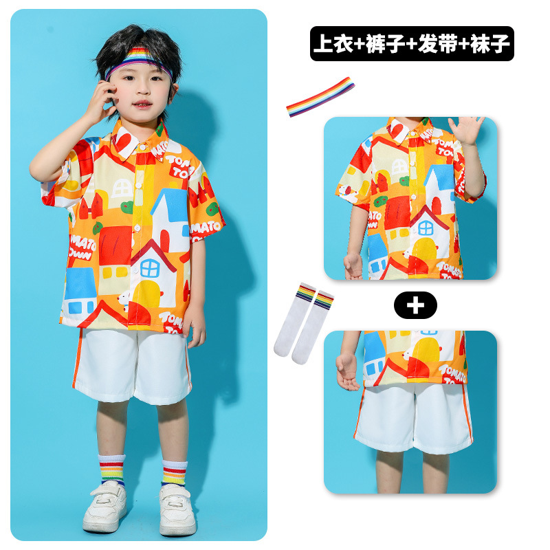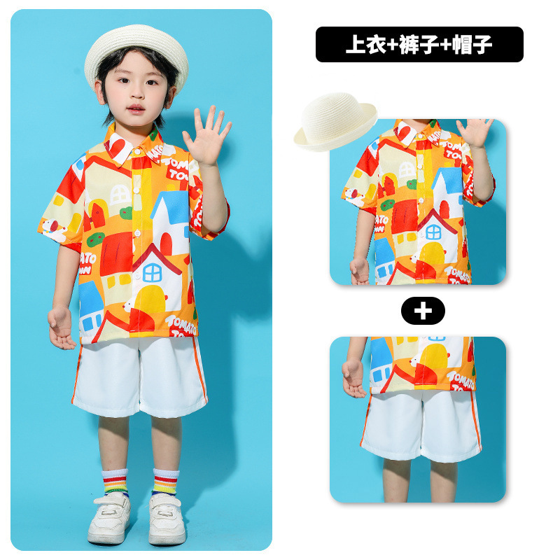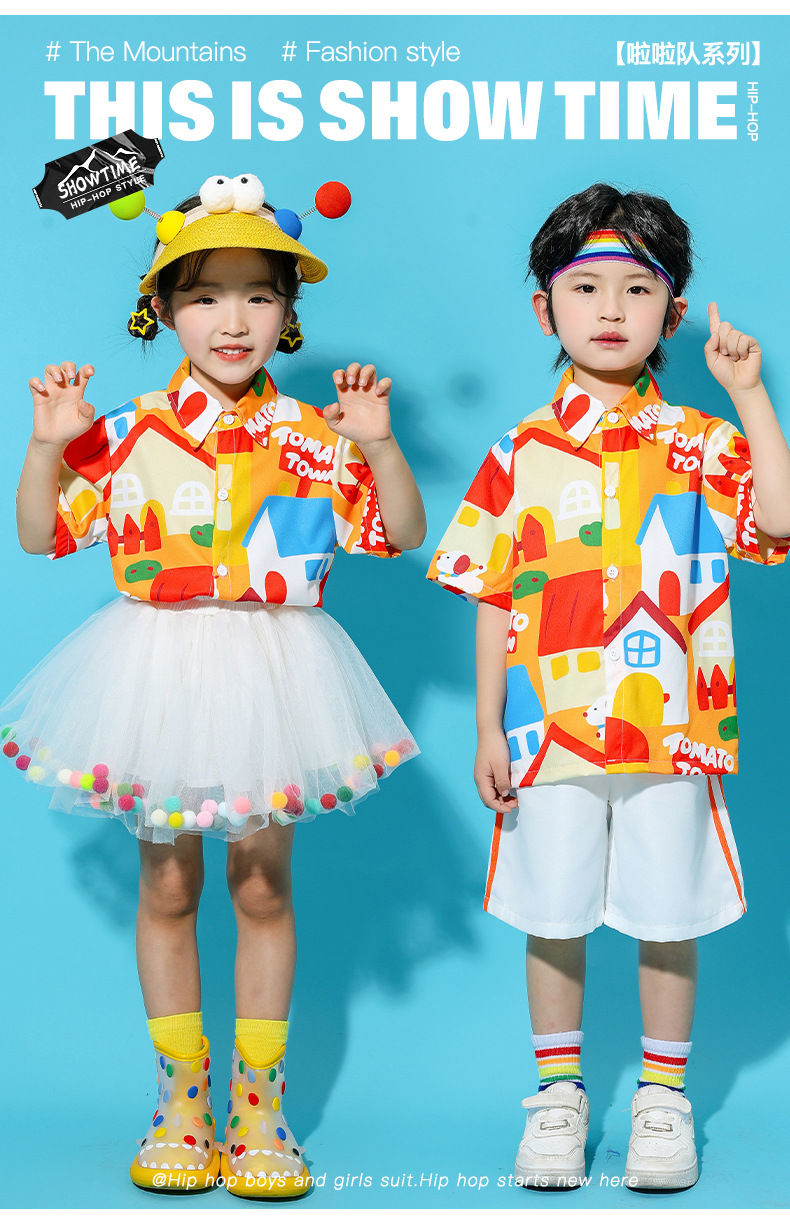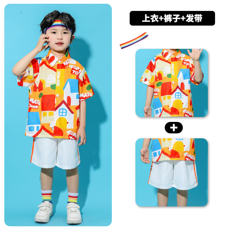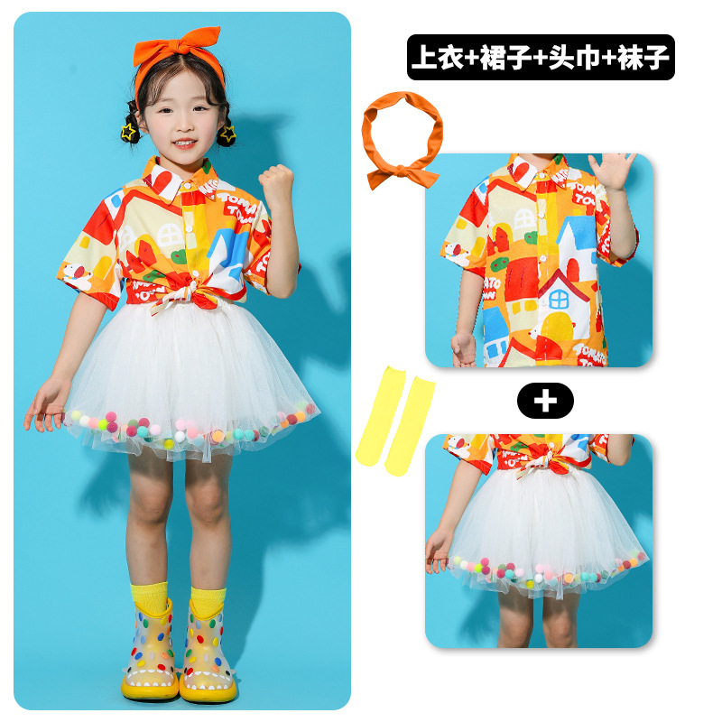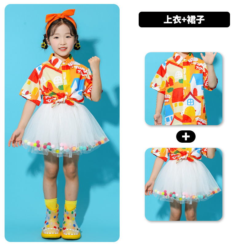 어린이 의상 유치원 단체 활동 셔츠 푹신한 치마 댄스 세트 소년 소녀 공연 의상스토어 가기