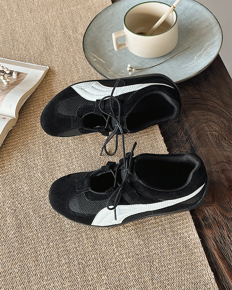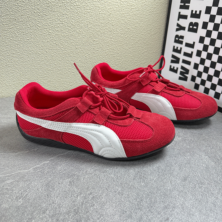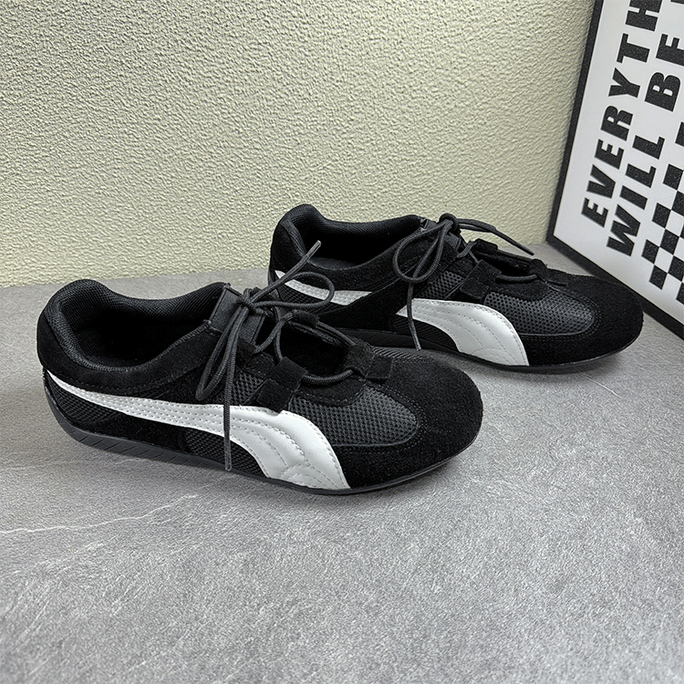 정품 가죽 트레이닝 신발 여성 2025 년 여름 새로운 스타일 통기성 메쉬 캐주얼 포레스트 검프 신발 로우 탑 얇은 밑창 얕은 입 보드 신발 트렌디스토어 가기