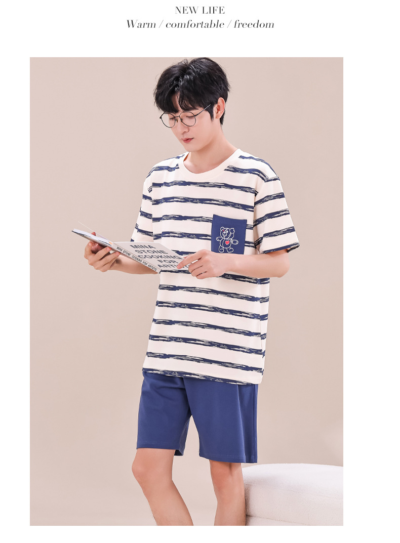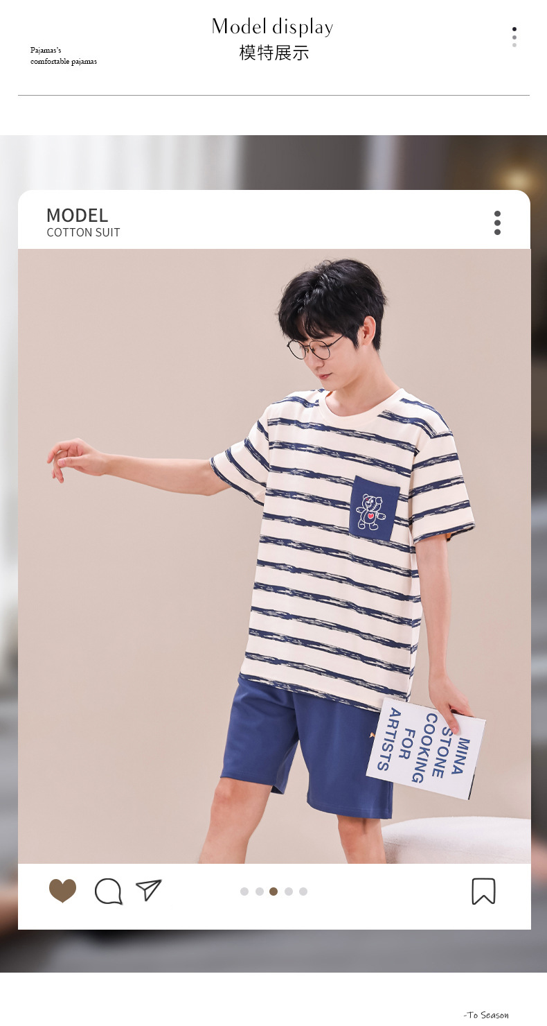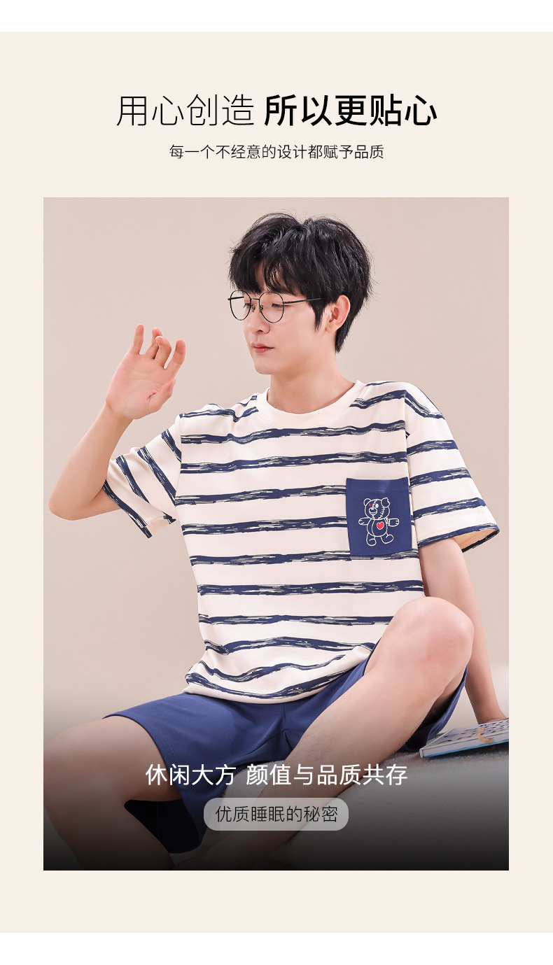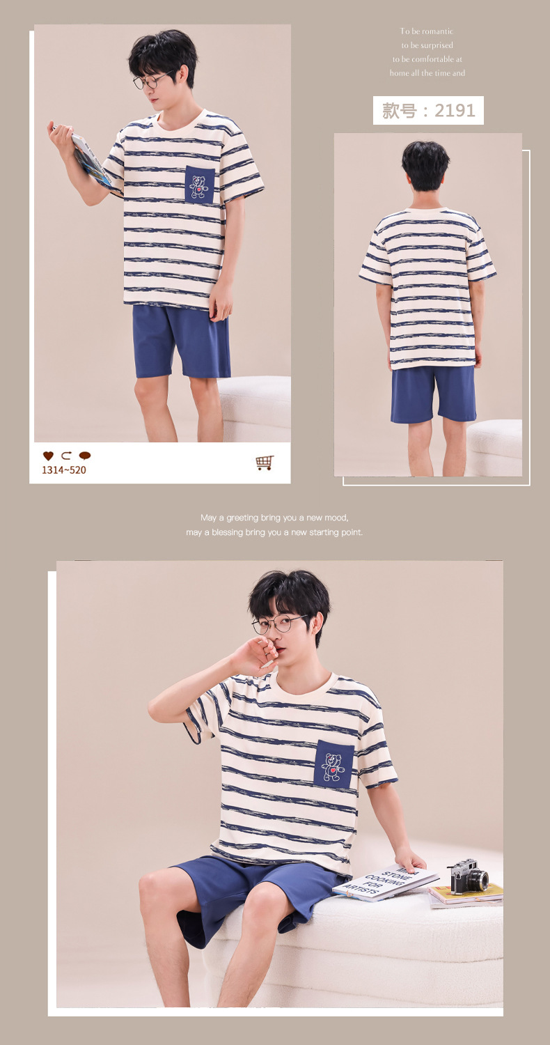 남성용 잠옷 면화 여름 반팔 반바지 얇은 느슨한 단순 남성 여름 홈 의류 세트 착용 가능스토어 가기