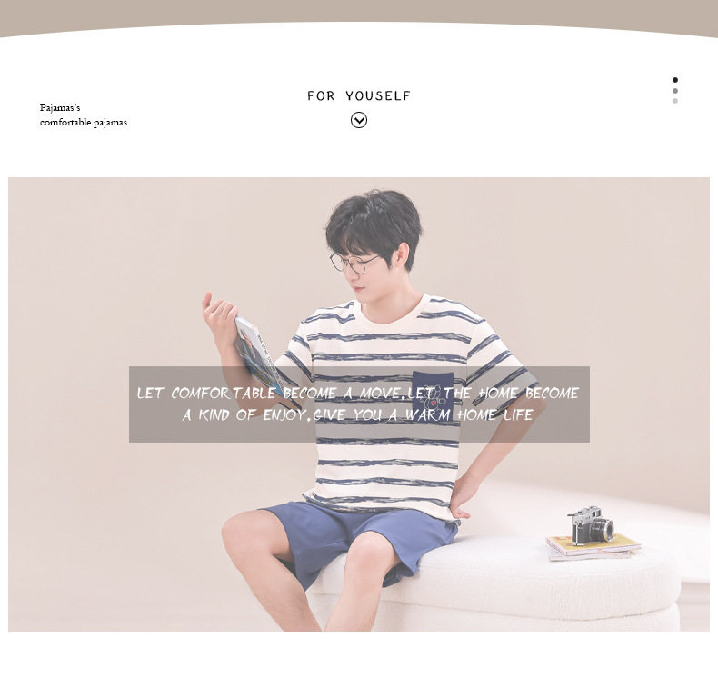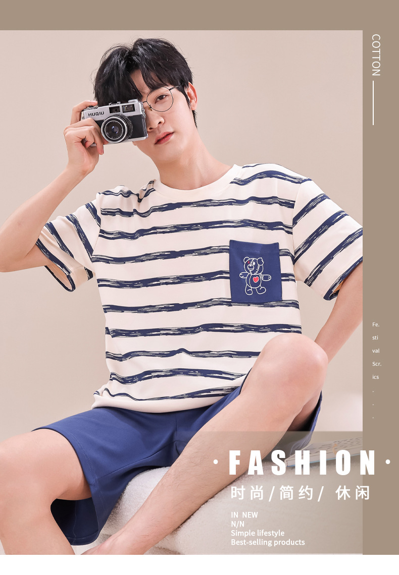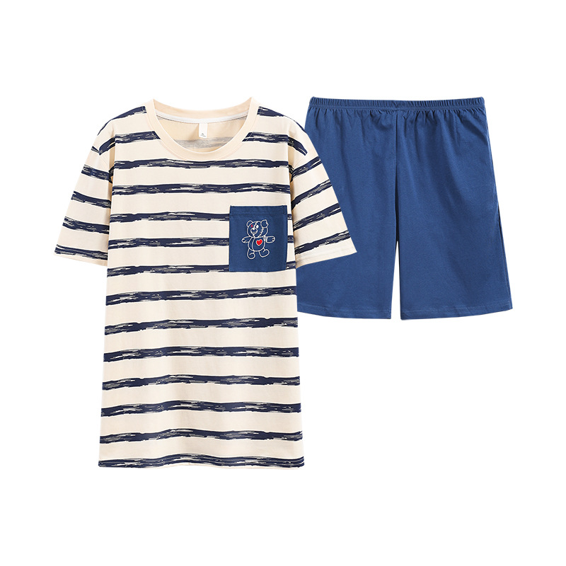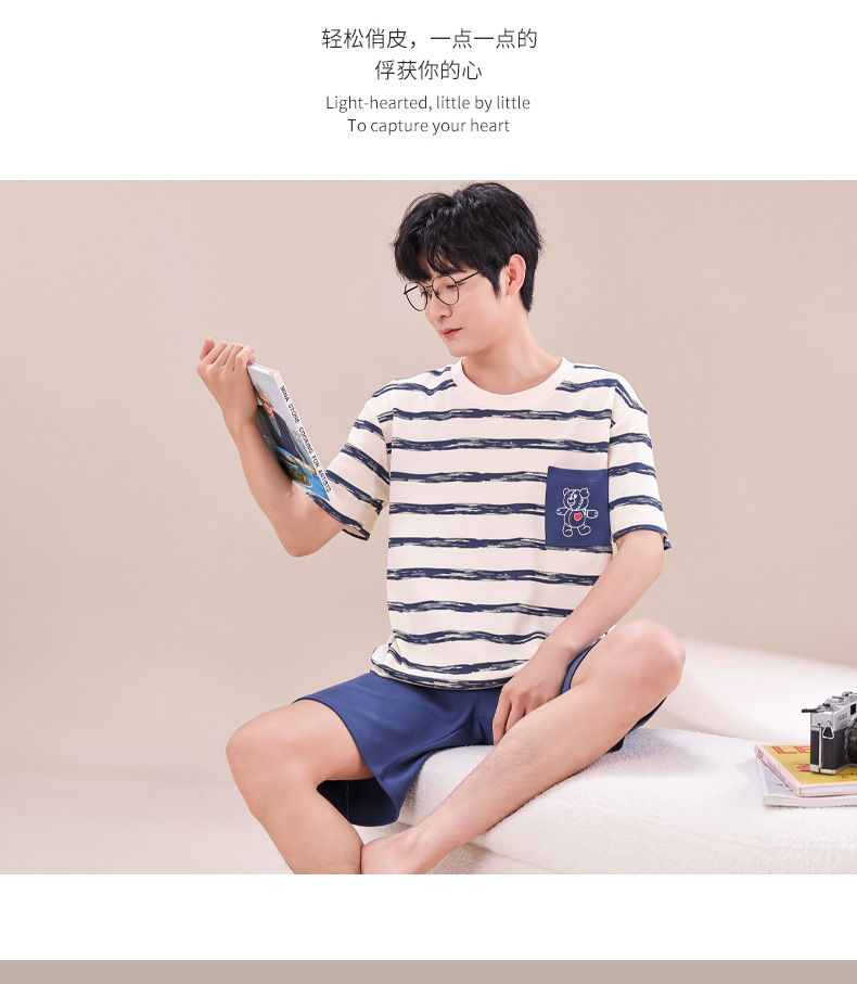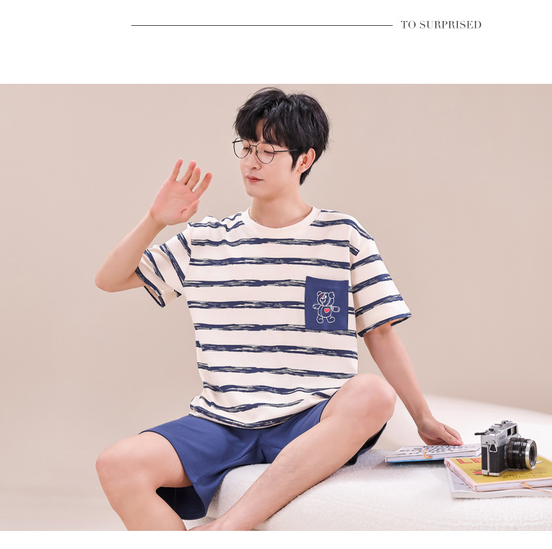 남성용 잠옷 면화 여름 반팔 반바지 얇은 느슨한 단순 남성 여름 홈 의류 세트 착용 가능스토어 가기