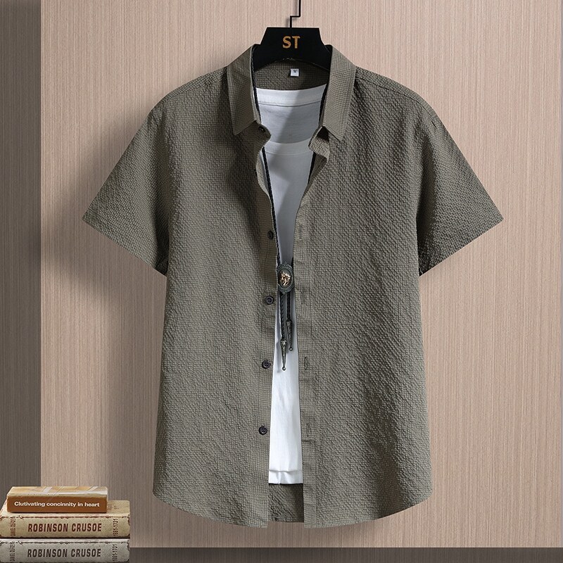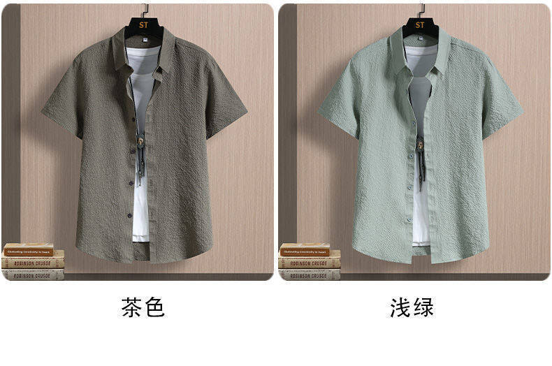 여름 거품 거즈 단색 짧은 소매 셔츠 9 색 사용 가능-909스토어 가기