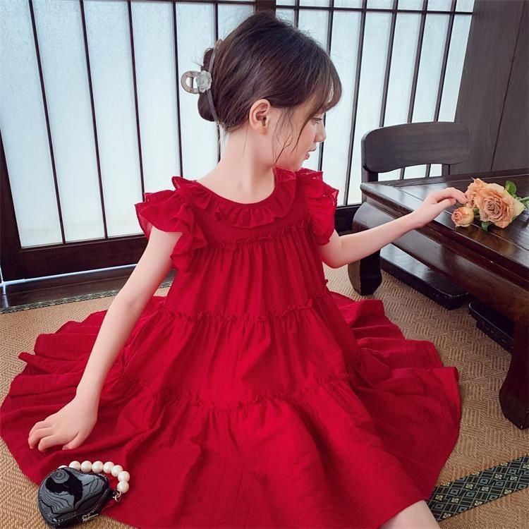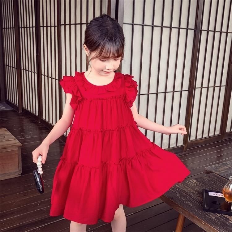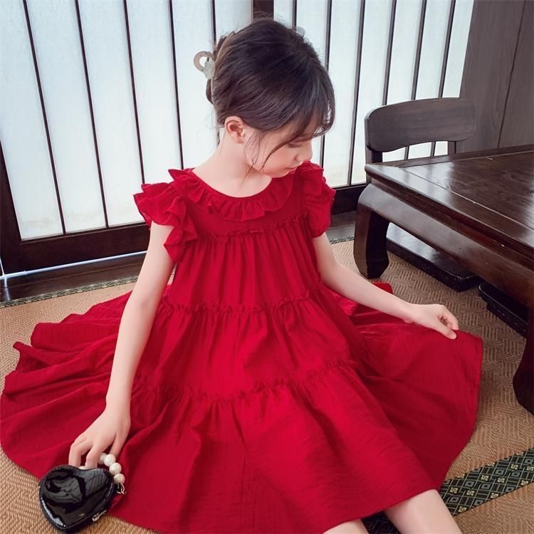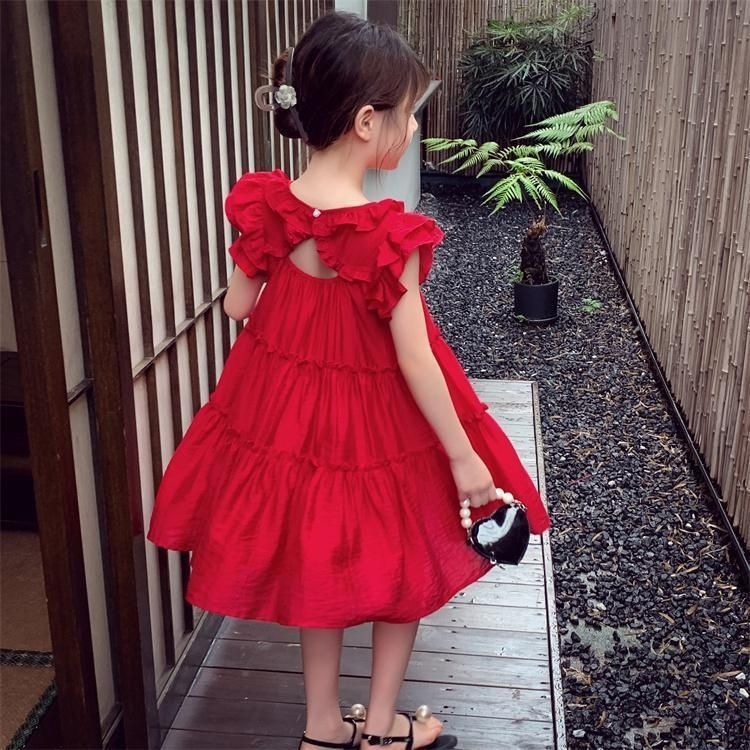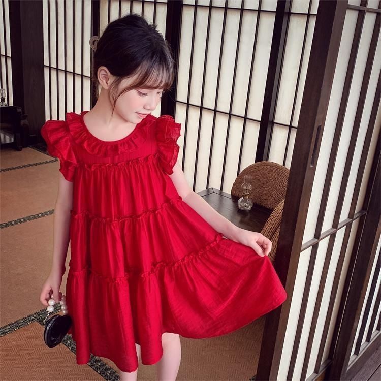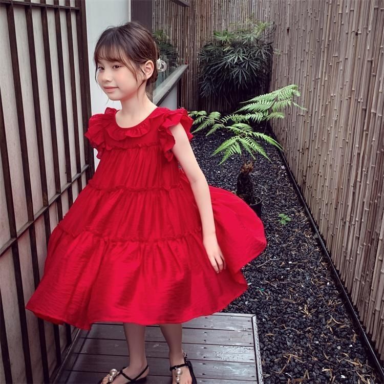 소녀 원피스 여름 2025 새로운 스타일 어린이 여름 비행 소매 스커트 어린 소녀의 하이 엔드 공주 스커트스토어 가기