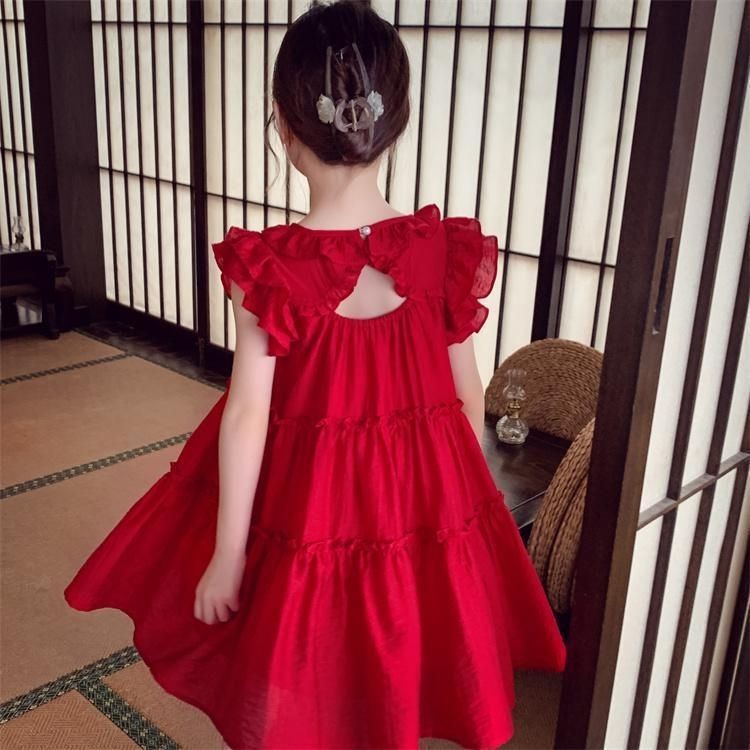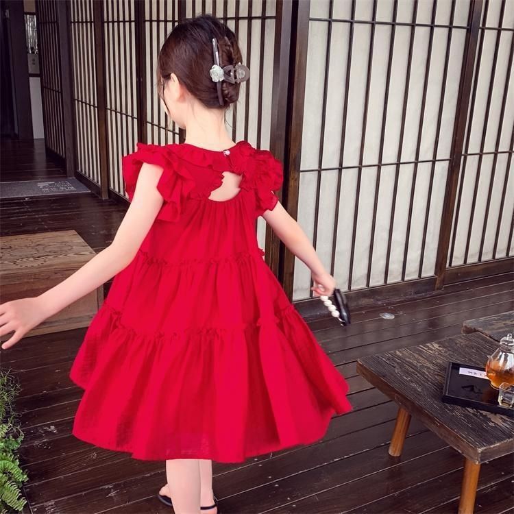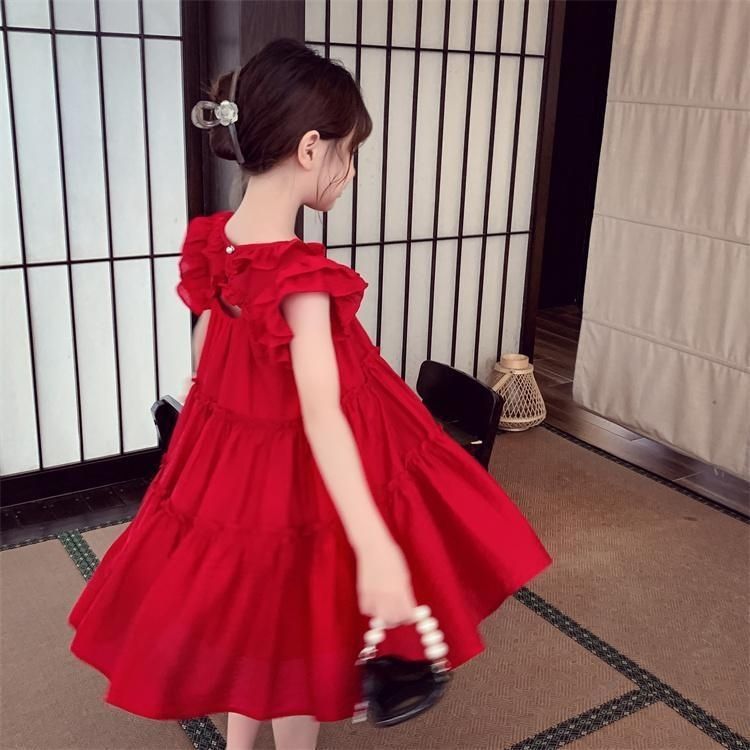 소녀 원피스 여름 2025 새로운 스타일 어린이 여름 비행 소매 스커트 어린 소녀의 하이 엔드 공주 스커트