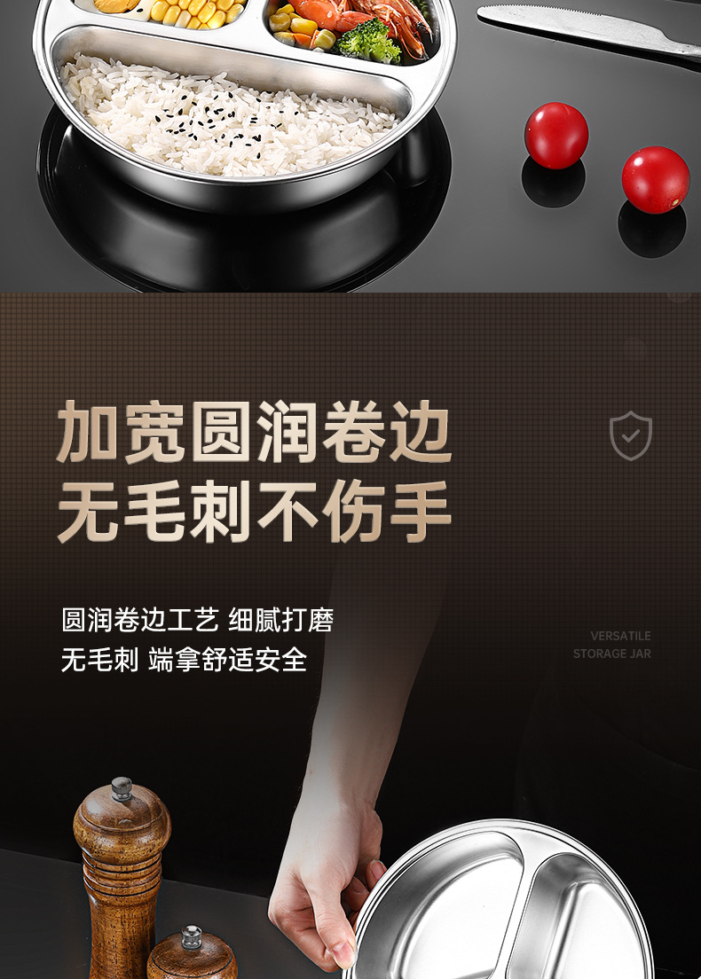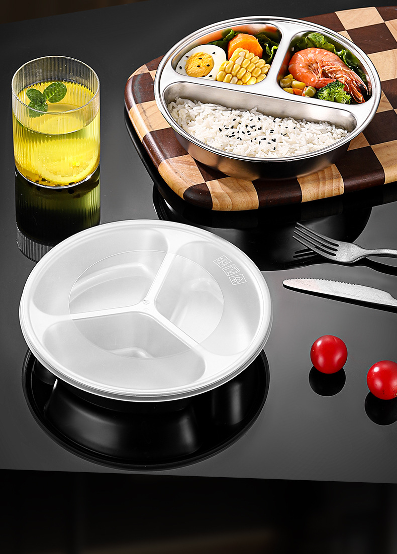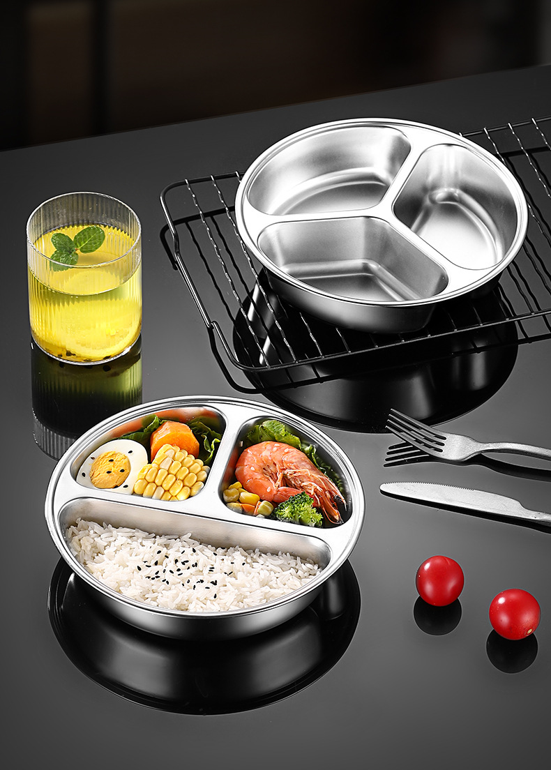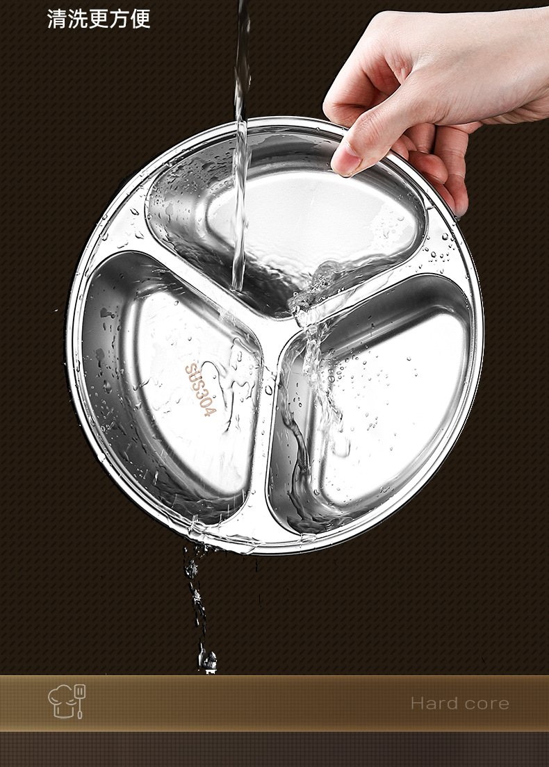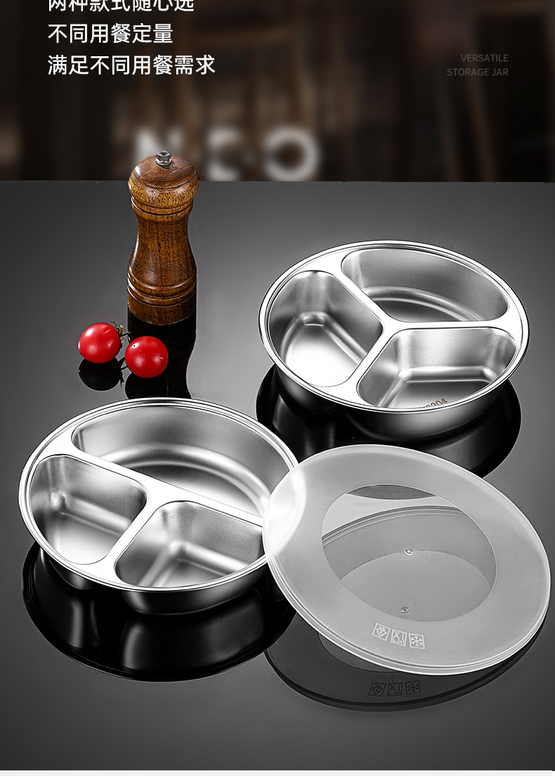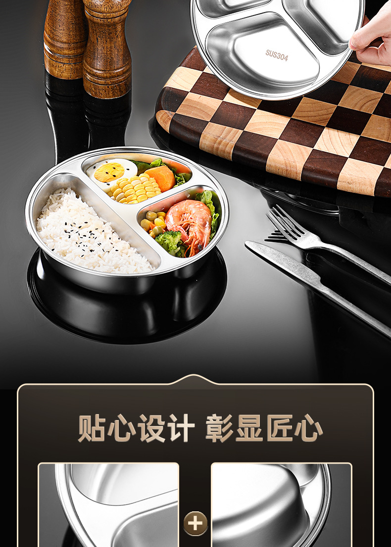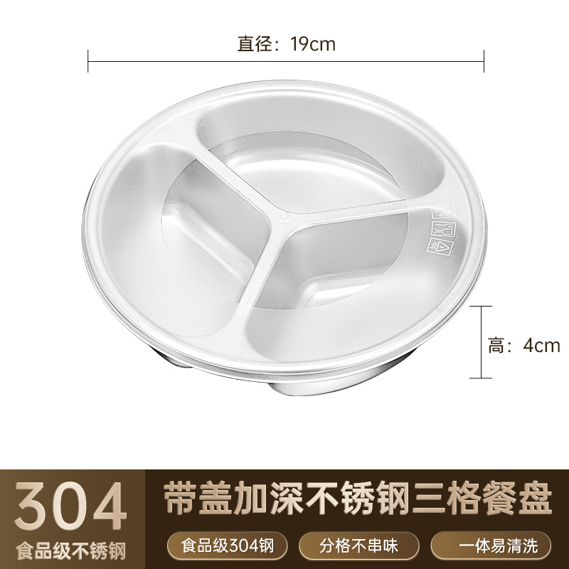 304 스테인레스 스틸 플레이트 라운드 두꺼운 스플릿 플레이트 학교 매점 대용량 패스트 푸드 플레이트 뚜껑 식기