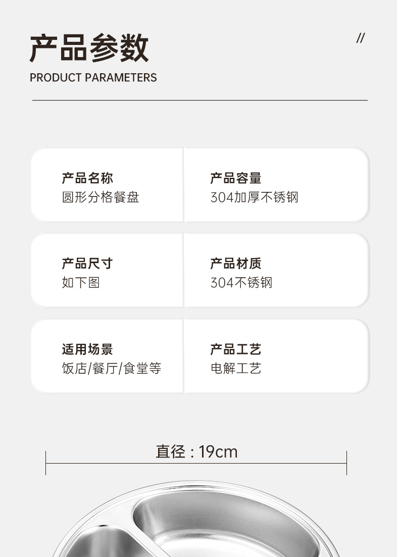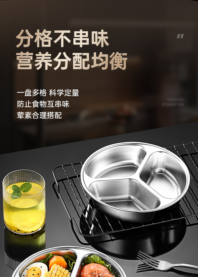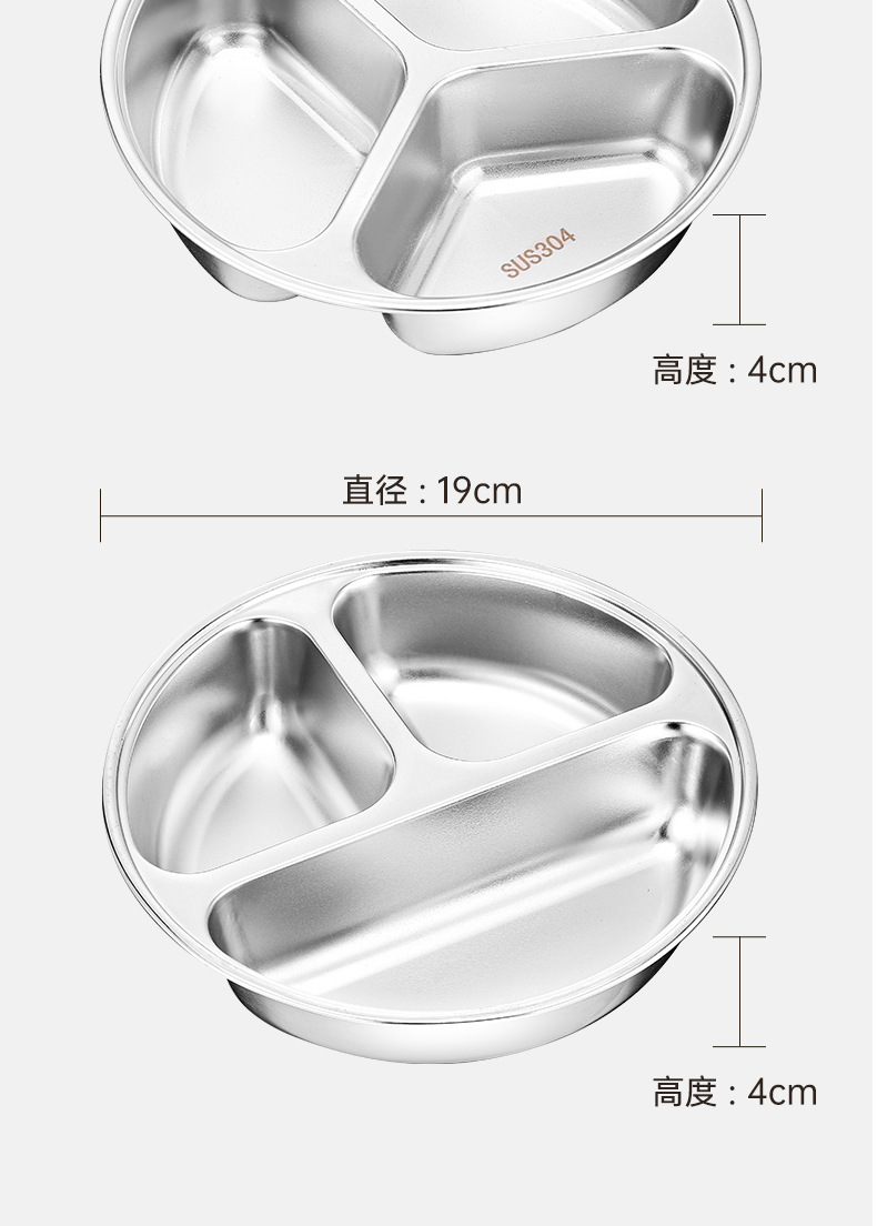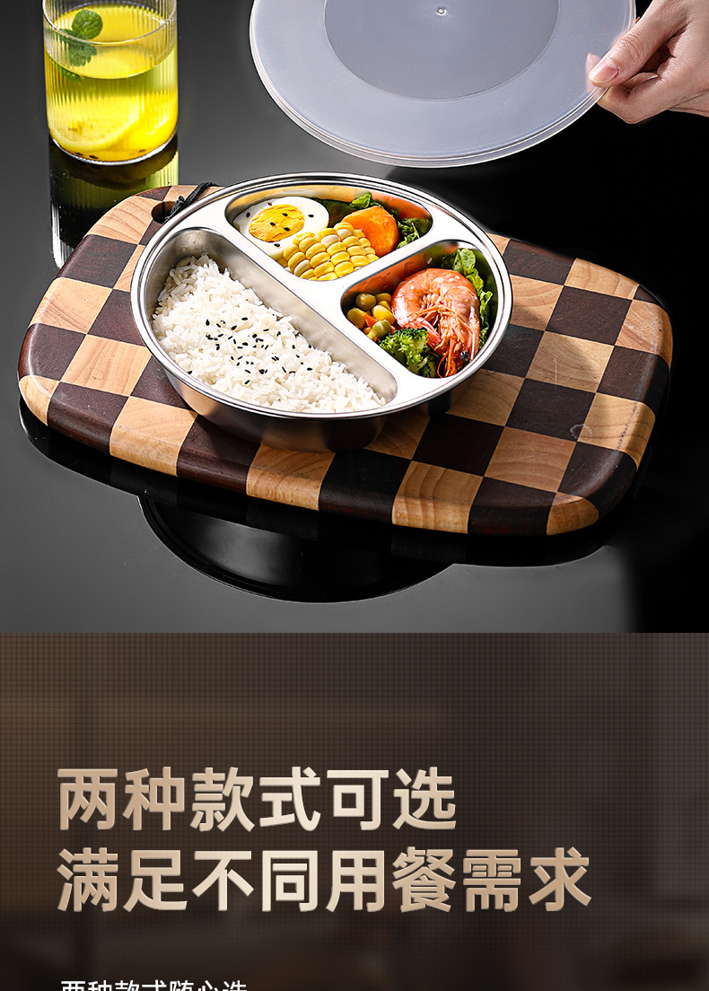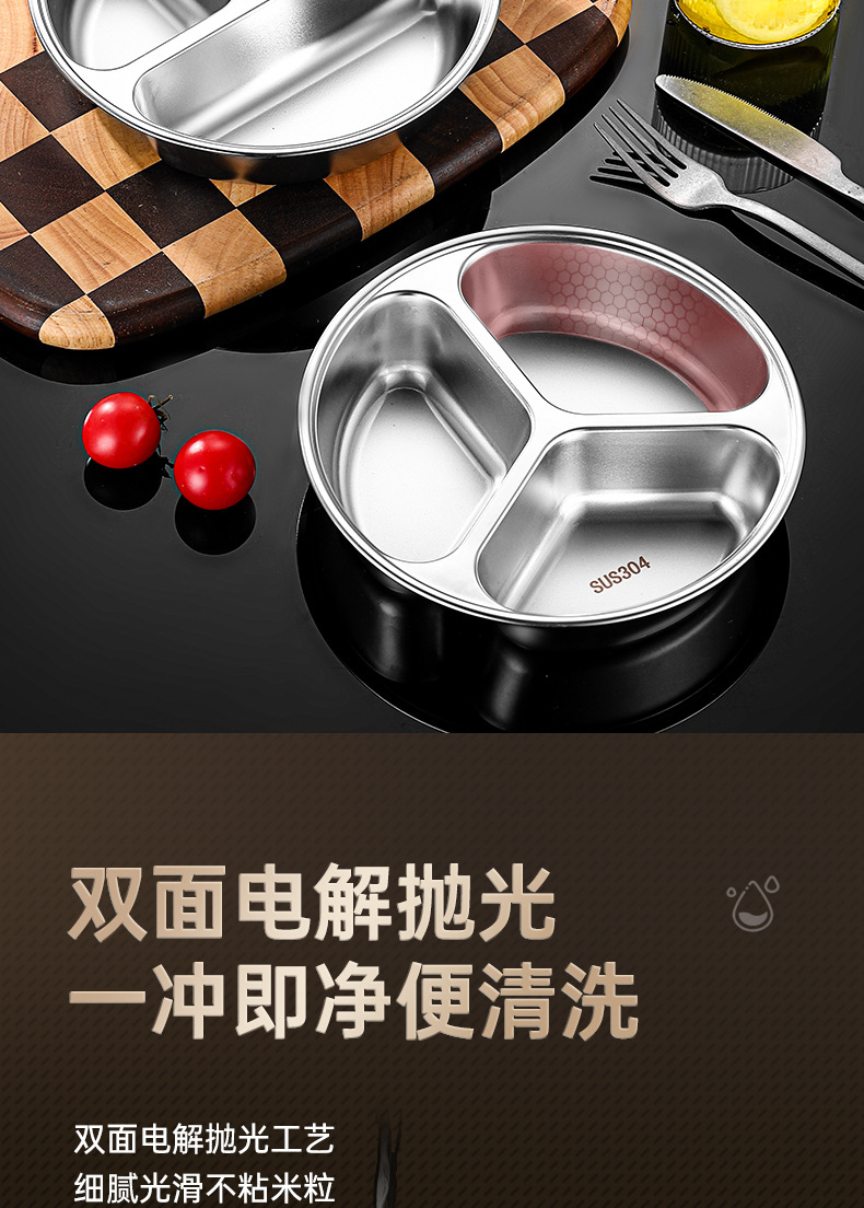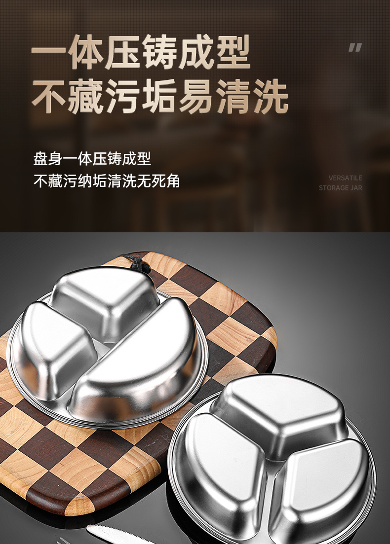 304 스테인레스 스틸 플레이트 라운드 두꺼운 스플릿 플레이트 학교 매점 대용량 패스트 푸드 플레이트 뚜껑 식기