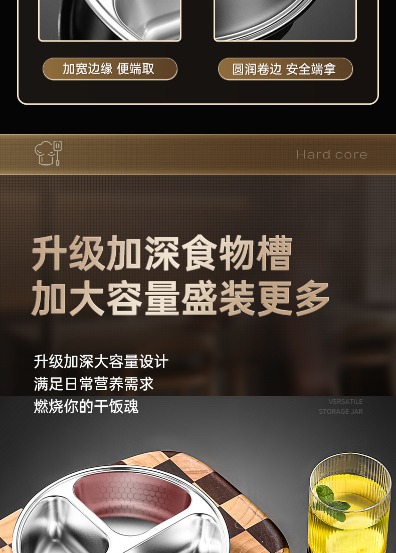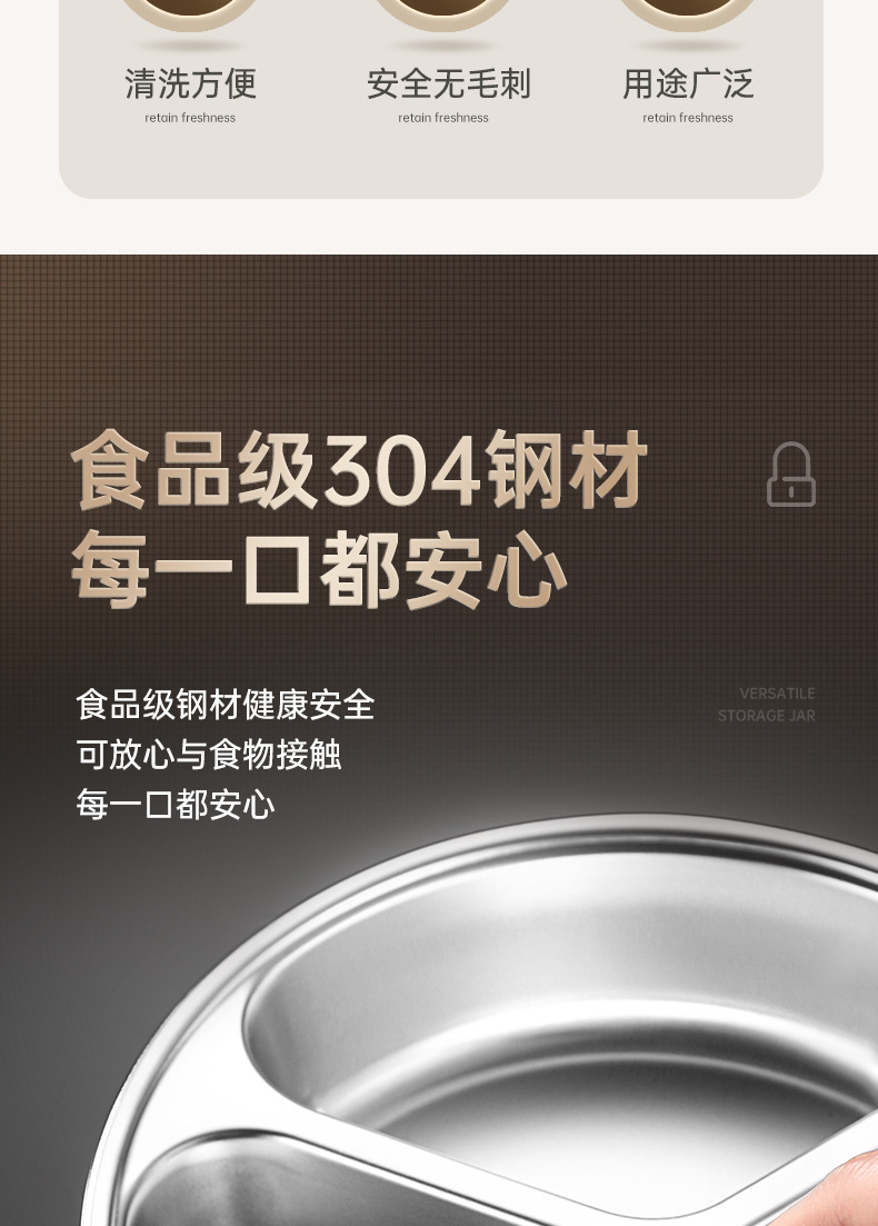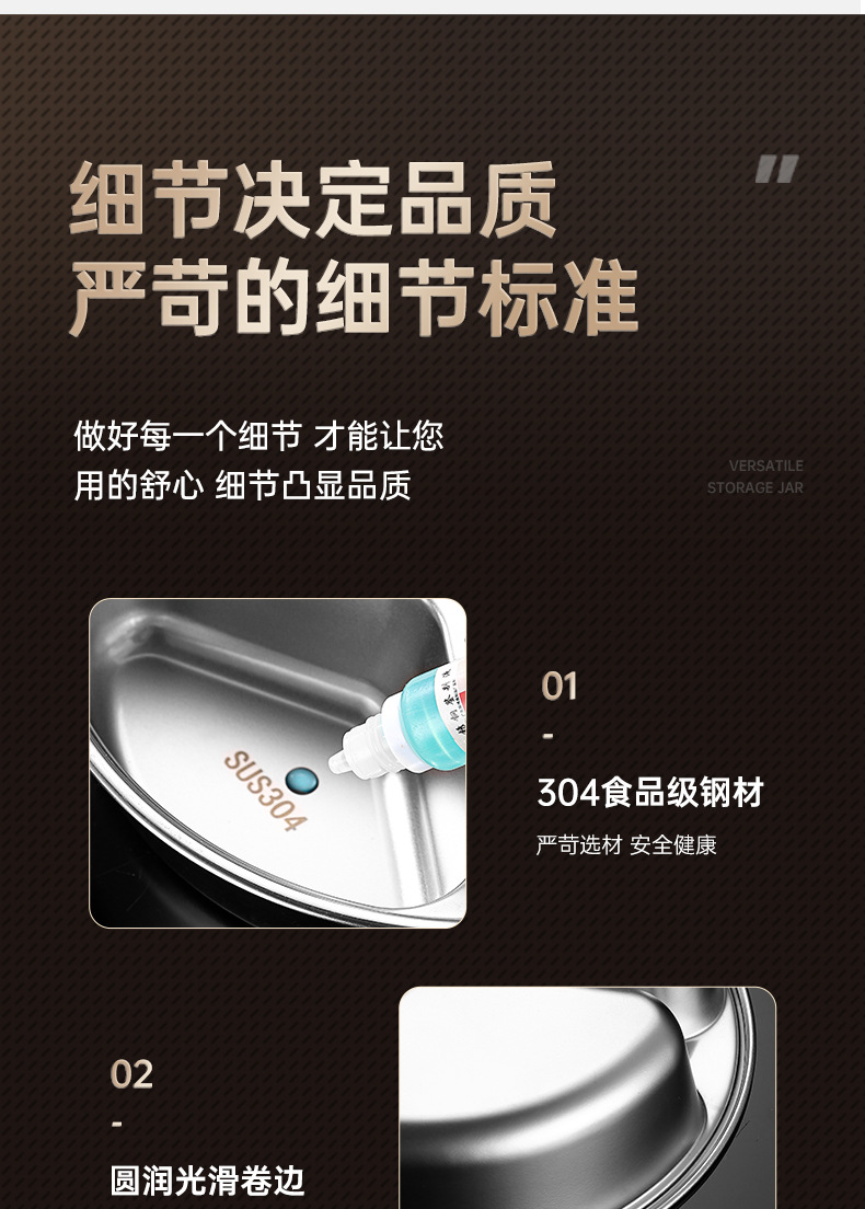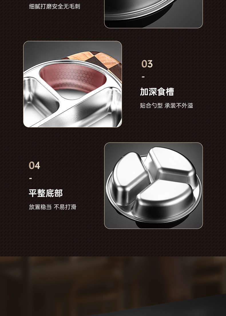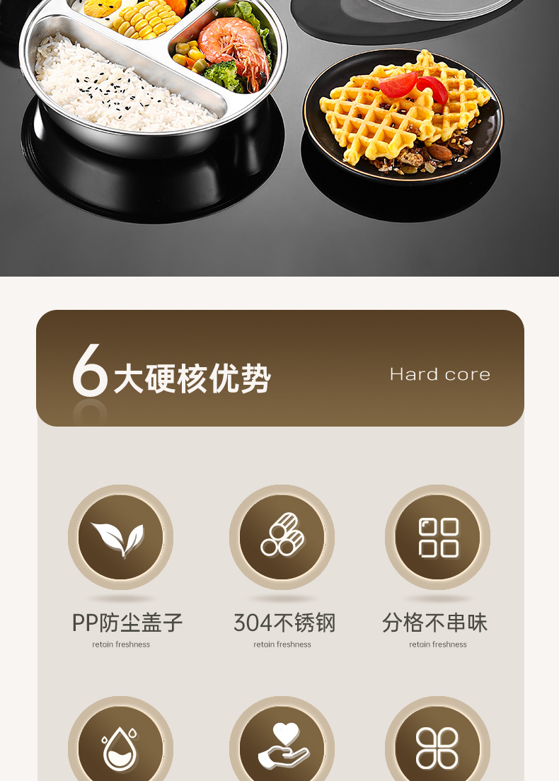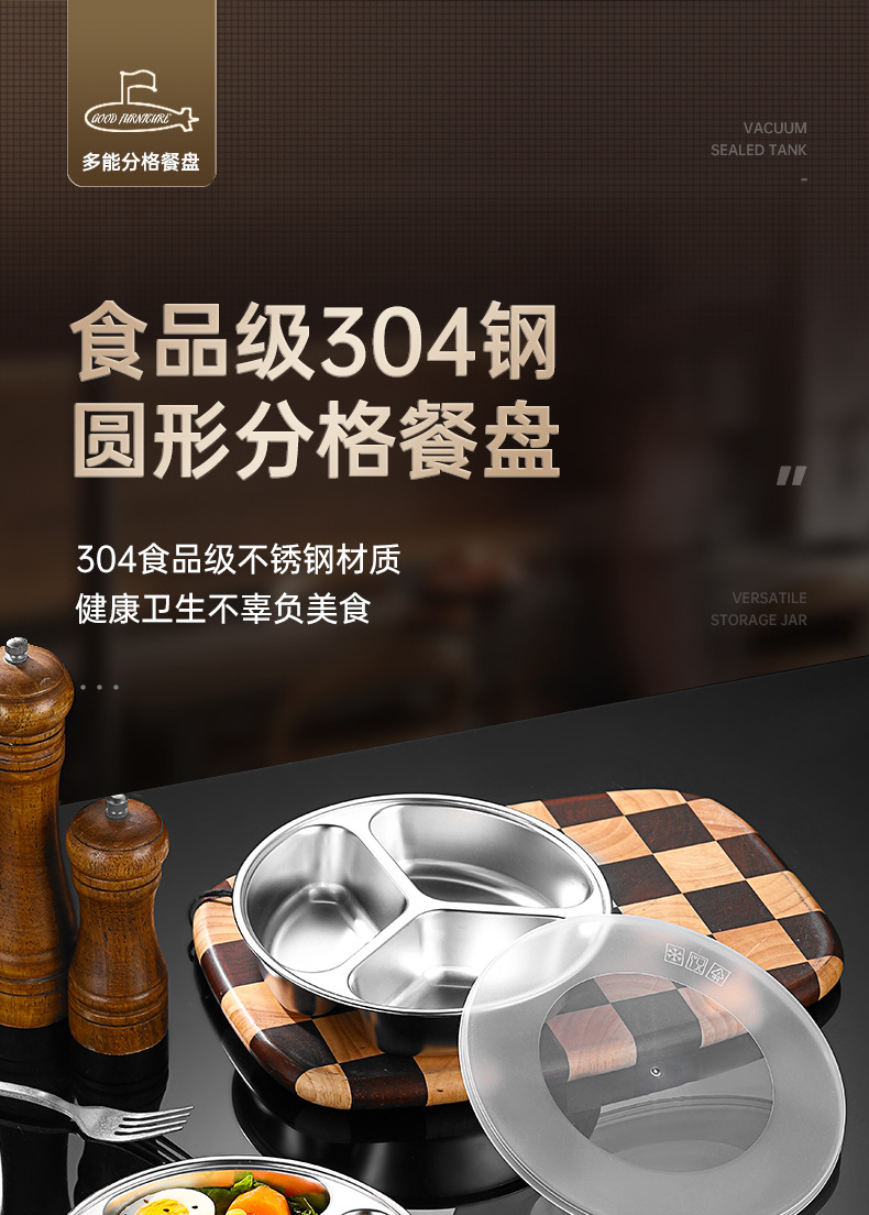 304 스테인레스 스틸 플레이트 라운드 두꺼운 스플릿 플레이트 학교 매점 대용량 패스트 푸드 플레이트 뚜껑 식기