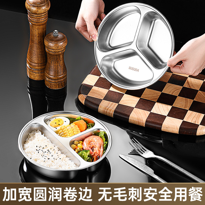 304 스테인레스 스틸 플레이트 라운드 두꺼운 스플릿 플레이트 학교 매점 대용량 패스트 푸드 플레이트 뚜껑 식기스토어 가기