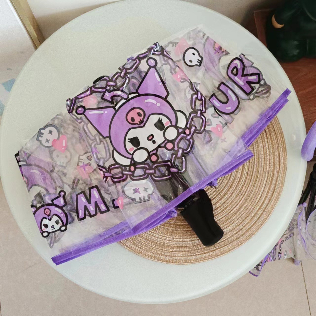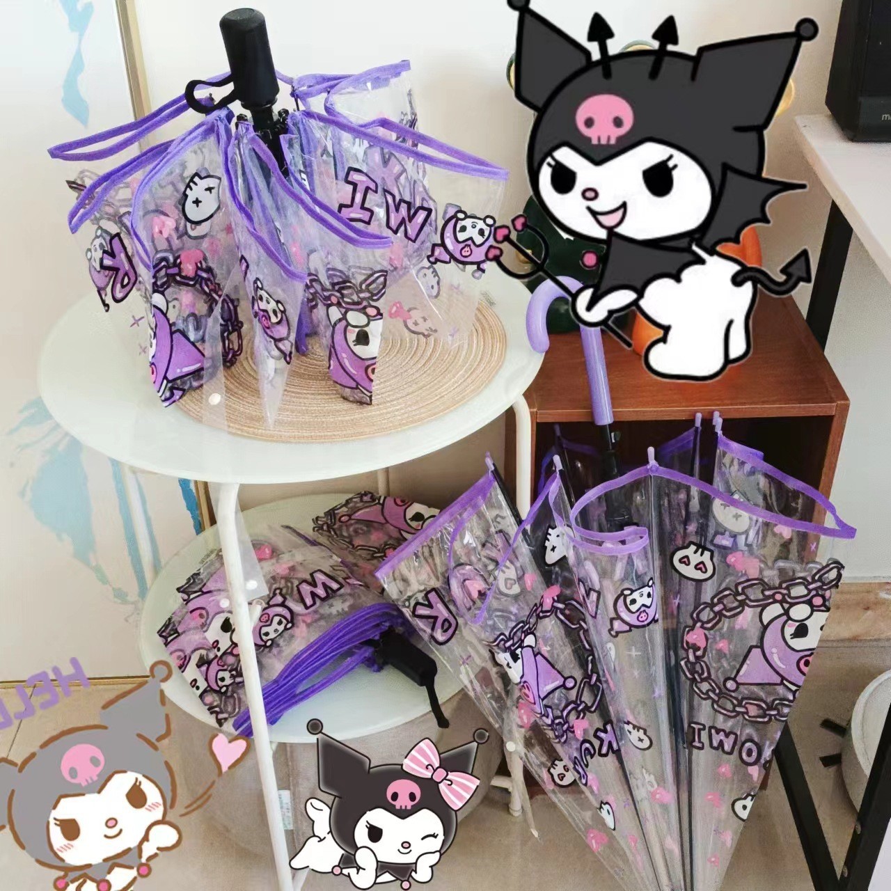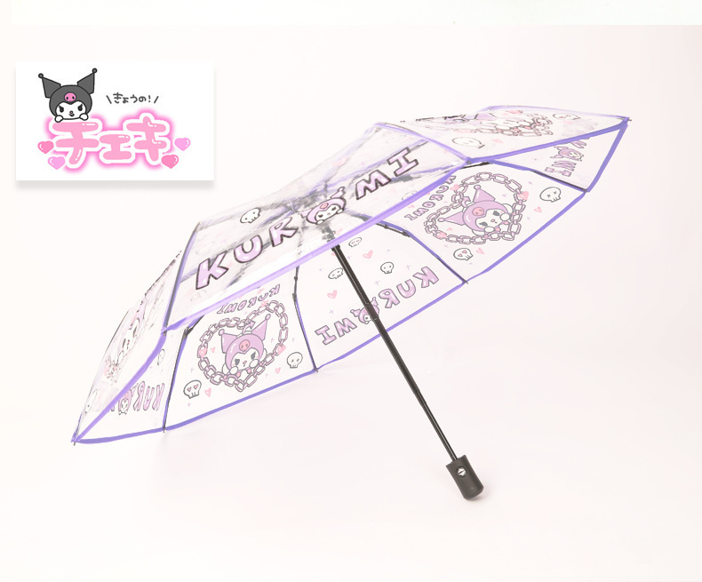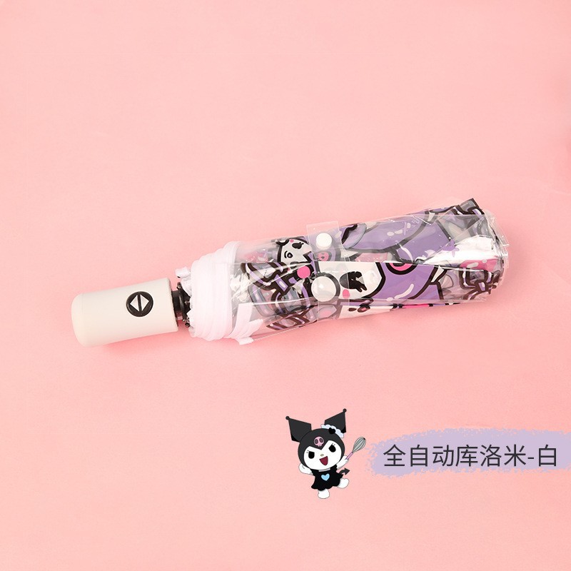 만화 Sanrio Kulomi 투명한 어린이 자동 우산 귀여운 접히는 자동 학생 두꺼운 가리 하트스토어 가기
