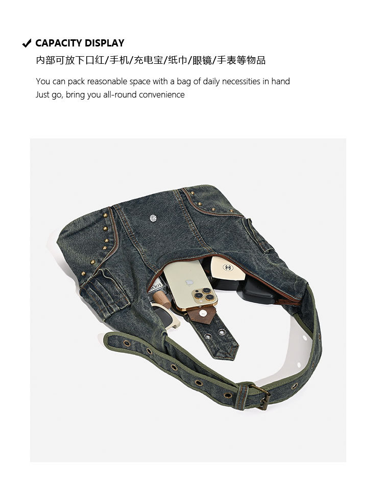 2025 새로운 데님 가방 틈새 마일 라드 토트 백 Y2K 패션 여성 가방 인기 라이트 럭셔리 언더암 백 레트로스토어 가기