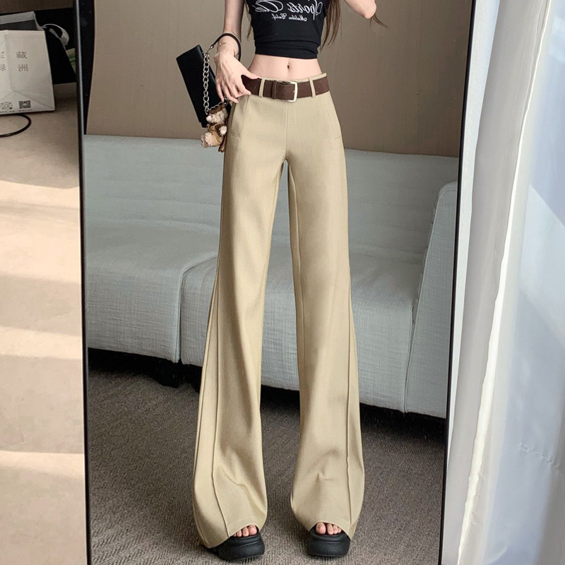 카키 아메리칸 스타일 마이크로 라라 바지 여성의 봄 디자인 센스 낮은 허리 넓은 다리 바지 모든 경기 캐주얼 로프 바지스토어 가기