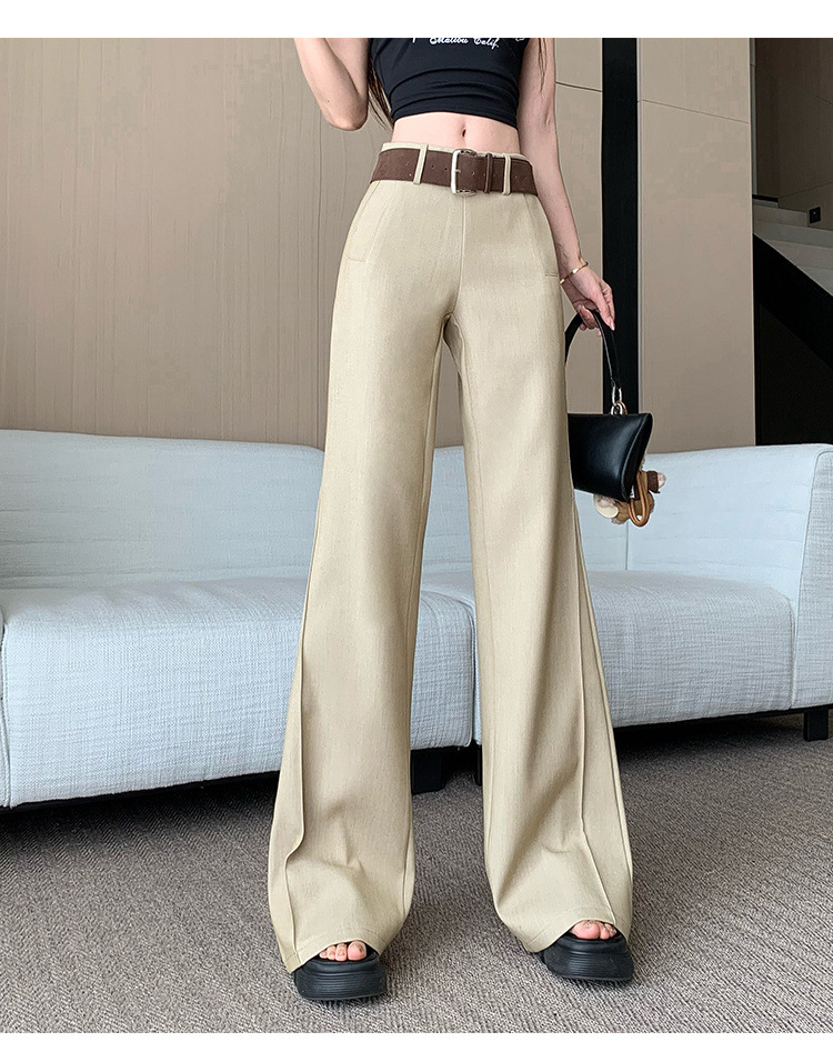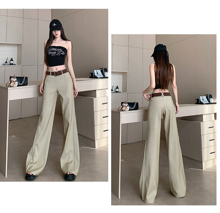 카키 아메리칸 스타일 마이크로 라라 바지 여성의 봄 디자인 센스 낮은 허리 넓은 다리 바지 모든 경기 캐주얼 로프 바지