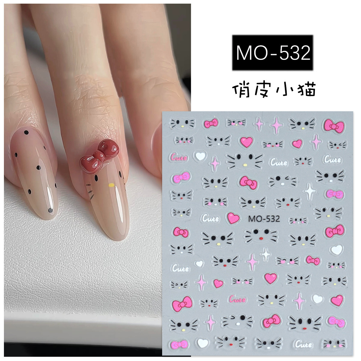 새로운 작은 빨간 책 고양이 네일 아트 스티커 그라디언트 귀여운 키티 고양이 활 고양이 발톱 장식 스티커스토어 가기