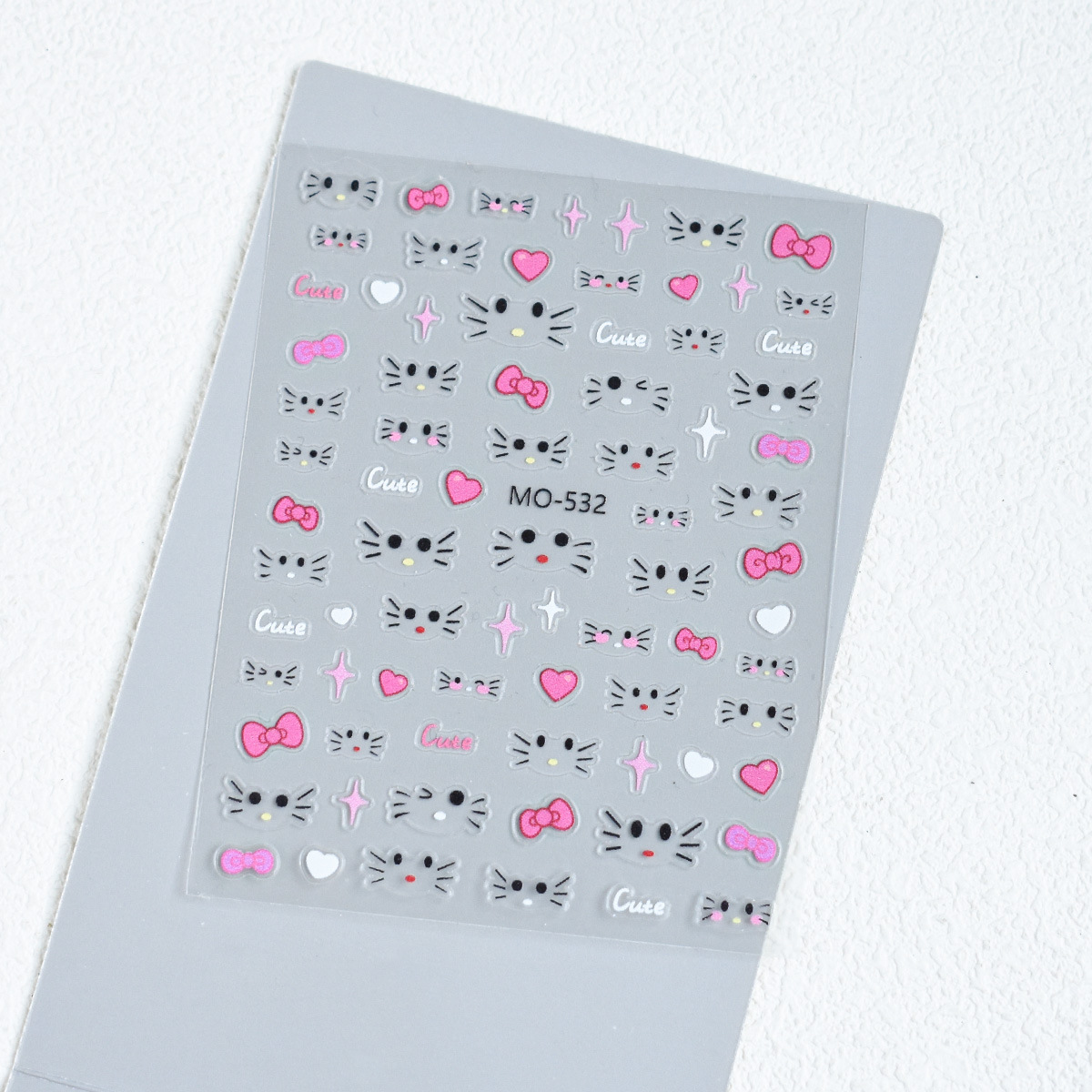 새로운 작은 빨간 책 고양이 네일 아트 스티커 그라디언트 귀여운 키티 고양이 활 고양이 발톱 장식 스티커