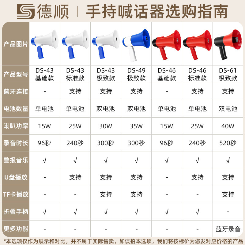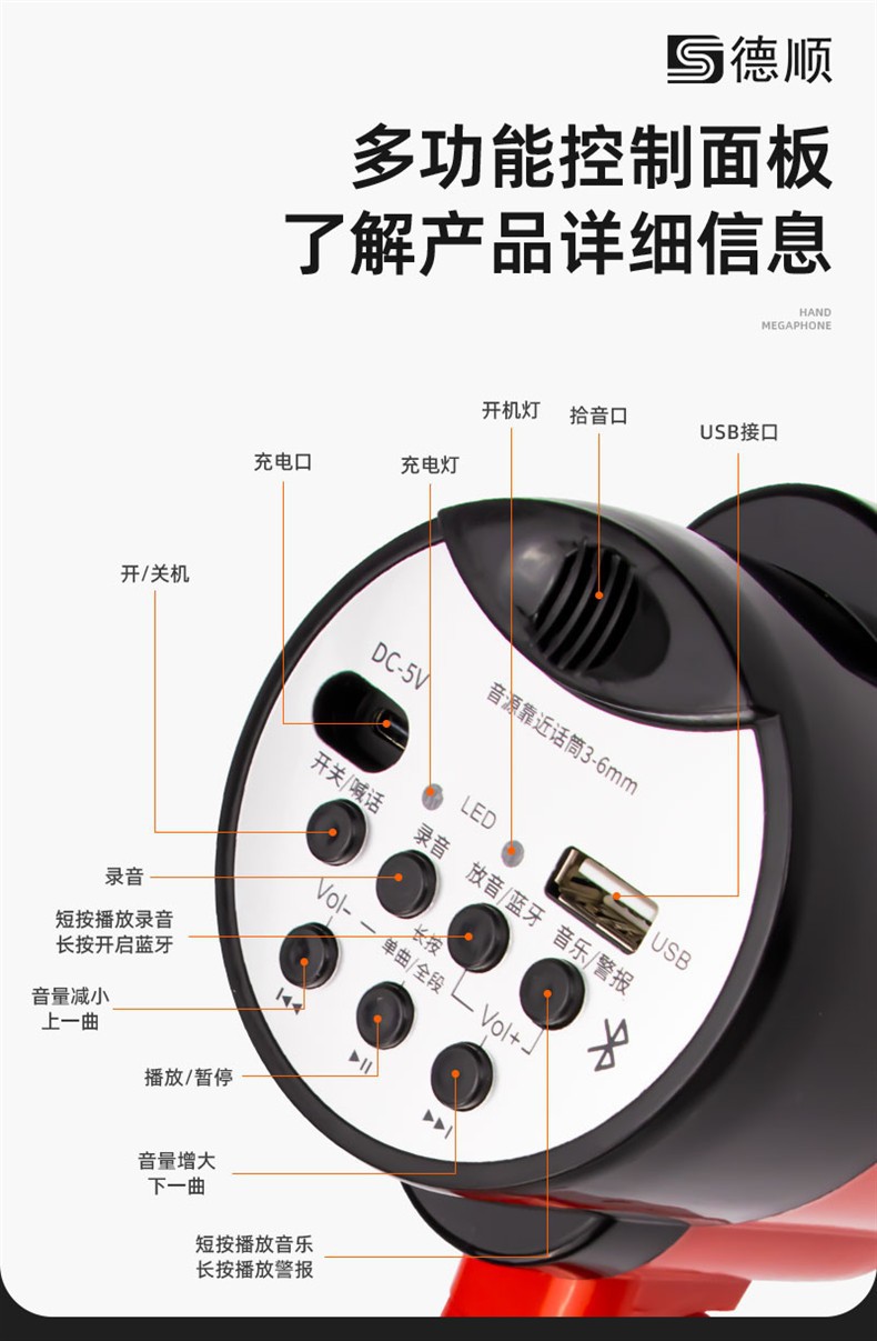 Desun 46DBA 매장 메가폰 휴대용 확성기 거리 노점 판매 공항 체크인 녹음 스피커