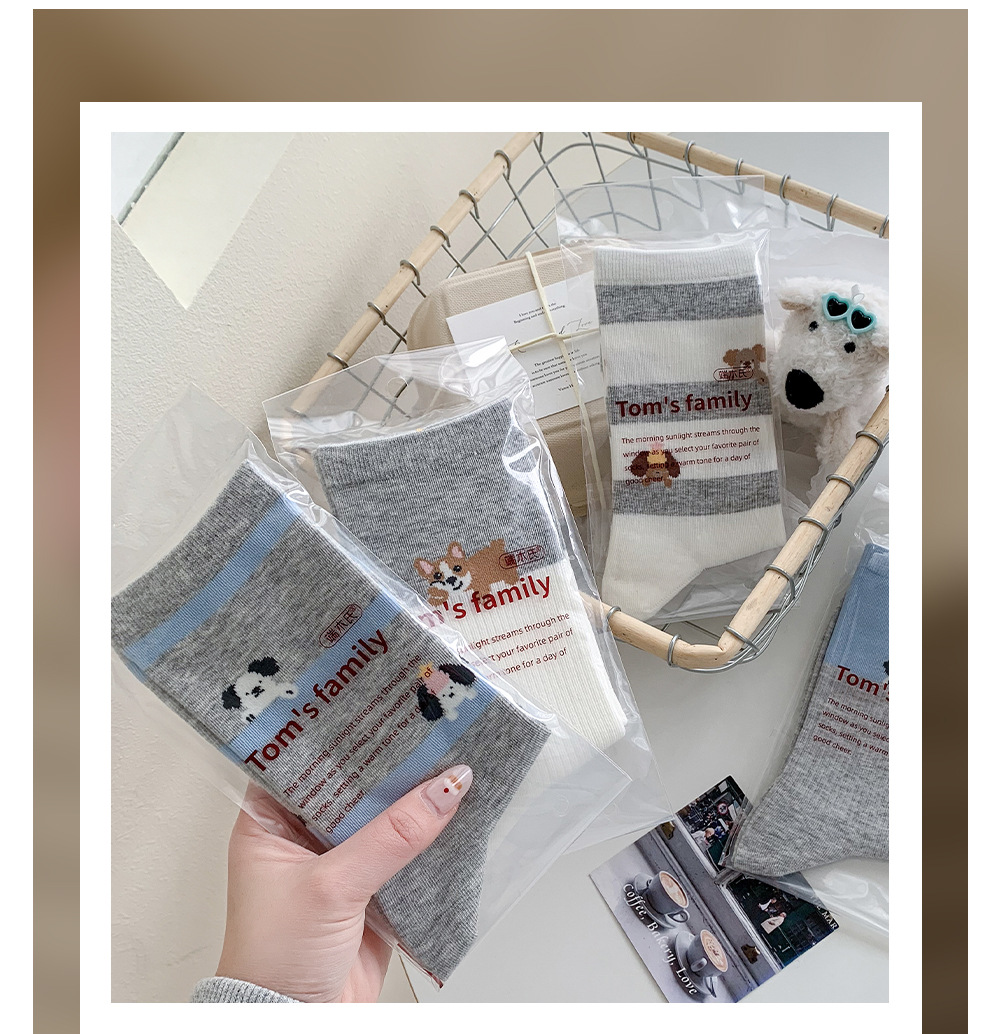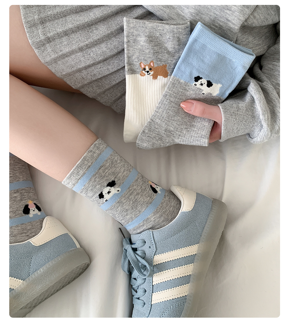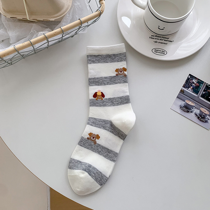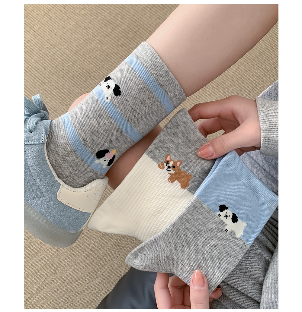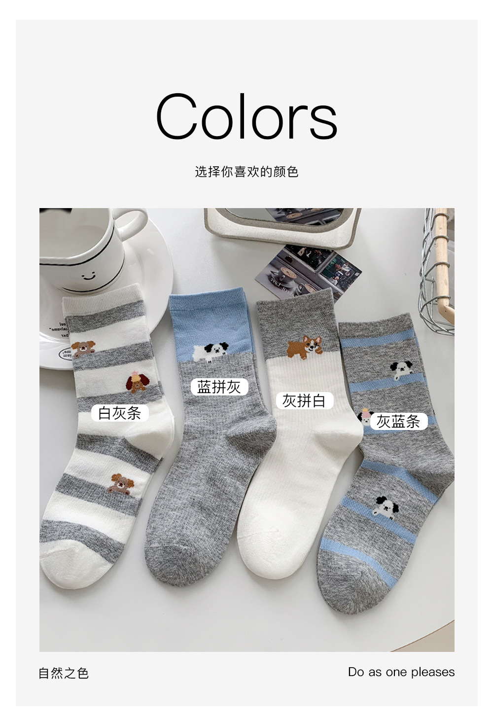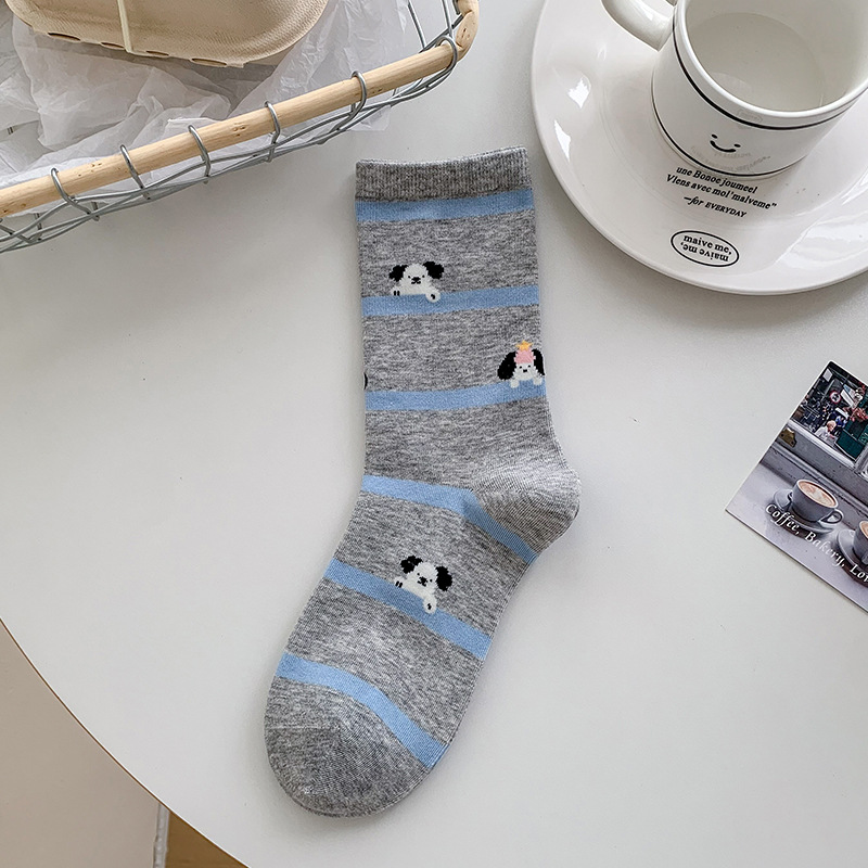여성용 가을 겨울 순면 중목 양말, 배색 만화 강아지 세로 줄무늬 여성 양말, 냄새 방지 항균 스타킹, 무봉제 양말스토어 가기