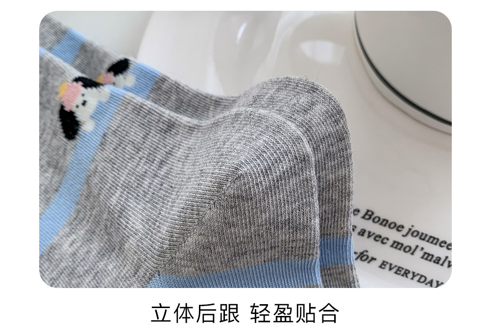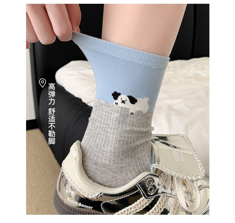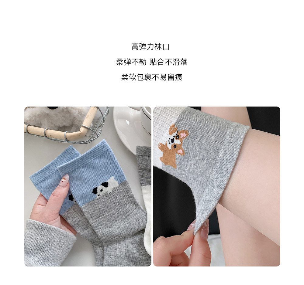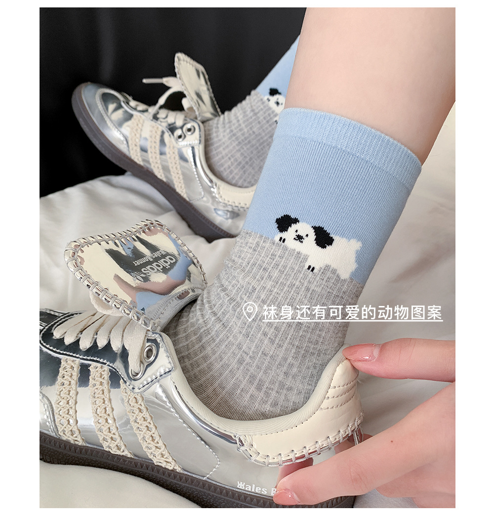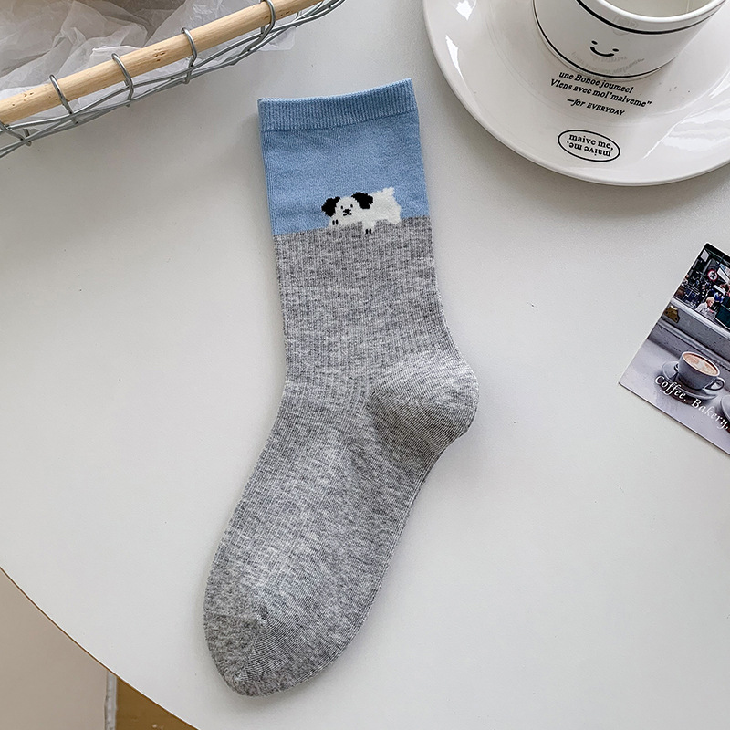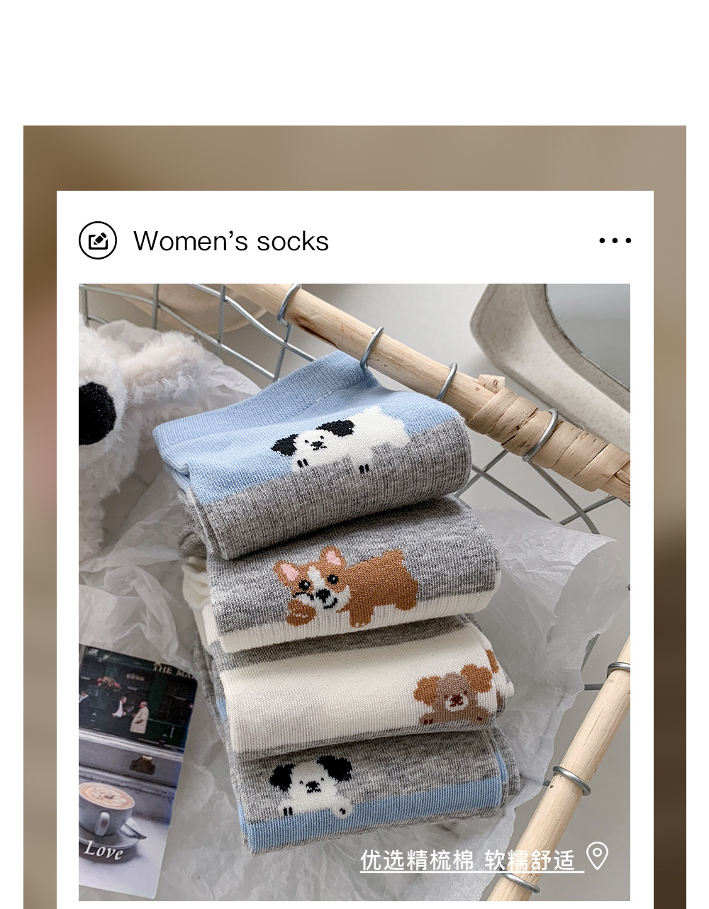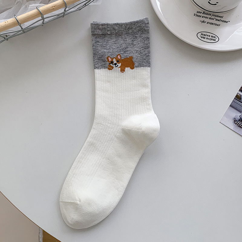 여성용 가을 겨울 순면 중목 양말, 배색 만화 강아지 세로 줄무늬 여성 양말, 냄새 방지 항균 스타킹, 무봉제 양말스토어 가기