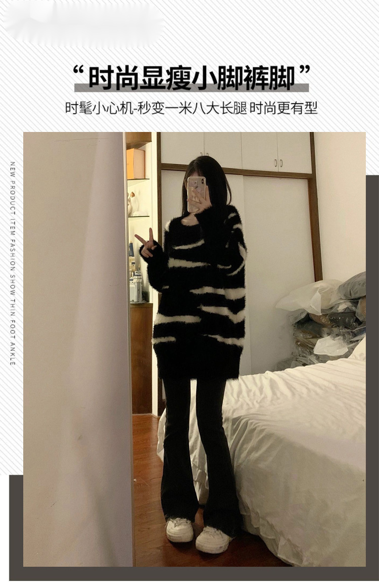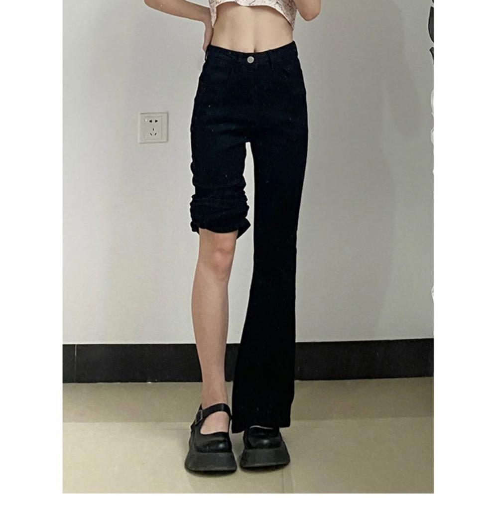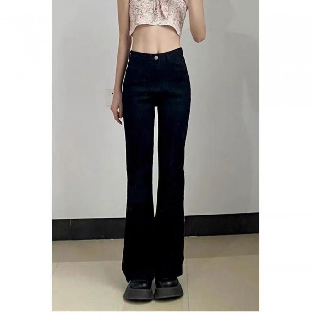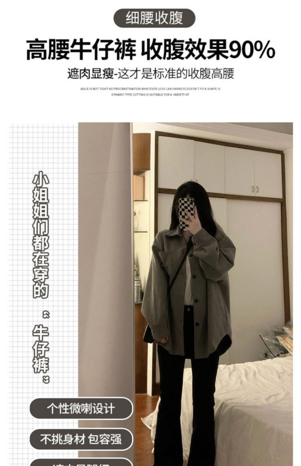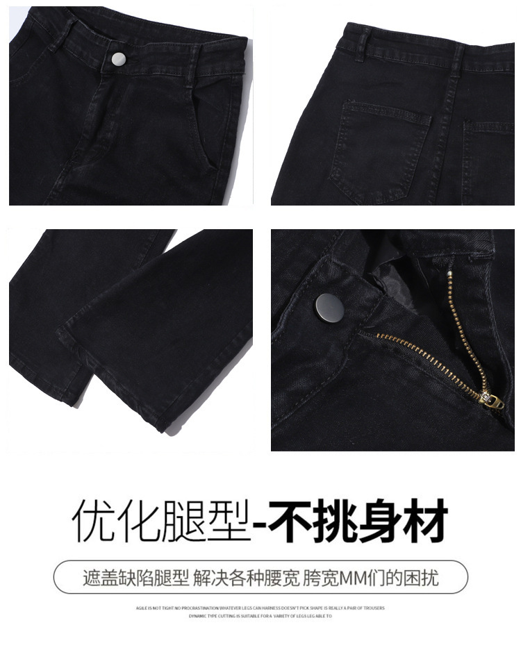 여성을위한 높은 허리 마이크로 플레어 청바지 봄 새로운 대형 뚱뚱한 소녀 mm 슬리밍 탄성 플레어 배꼽 모양 바지스토어 가기