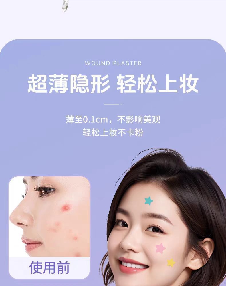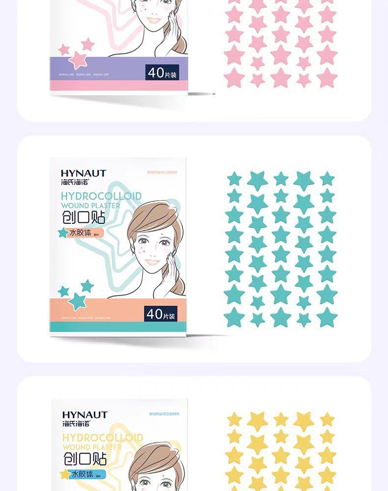 Haishi Hainuo 여드름 패치 붕대 하이드로콜로이드 오각형 모양은 여드름에 부착할 수 있습니다 하이드로콜로이드 여드름 패치