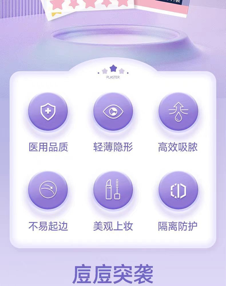 Haishi Hainuo 여드름 패치 붕대 하이드로콜로이드 오각형 모양은 여드름에 부착할 수 있습니다 하이드로콜로이드 여드름 패치스토어 가기