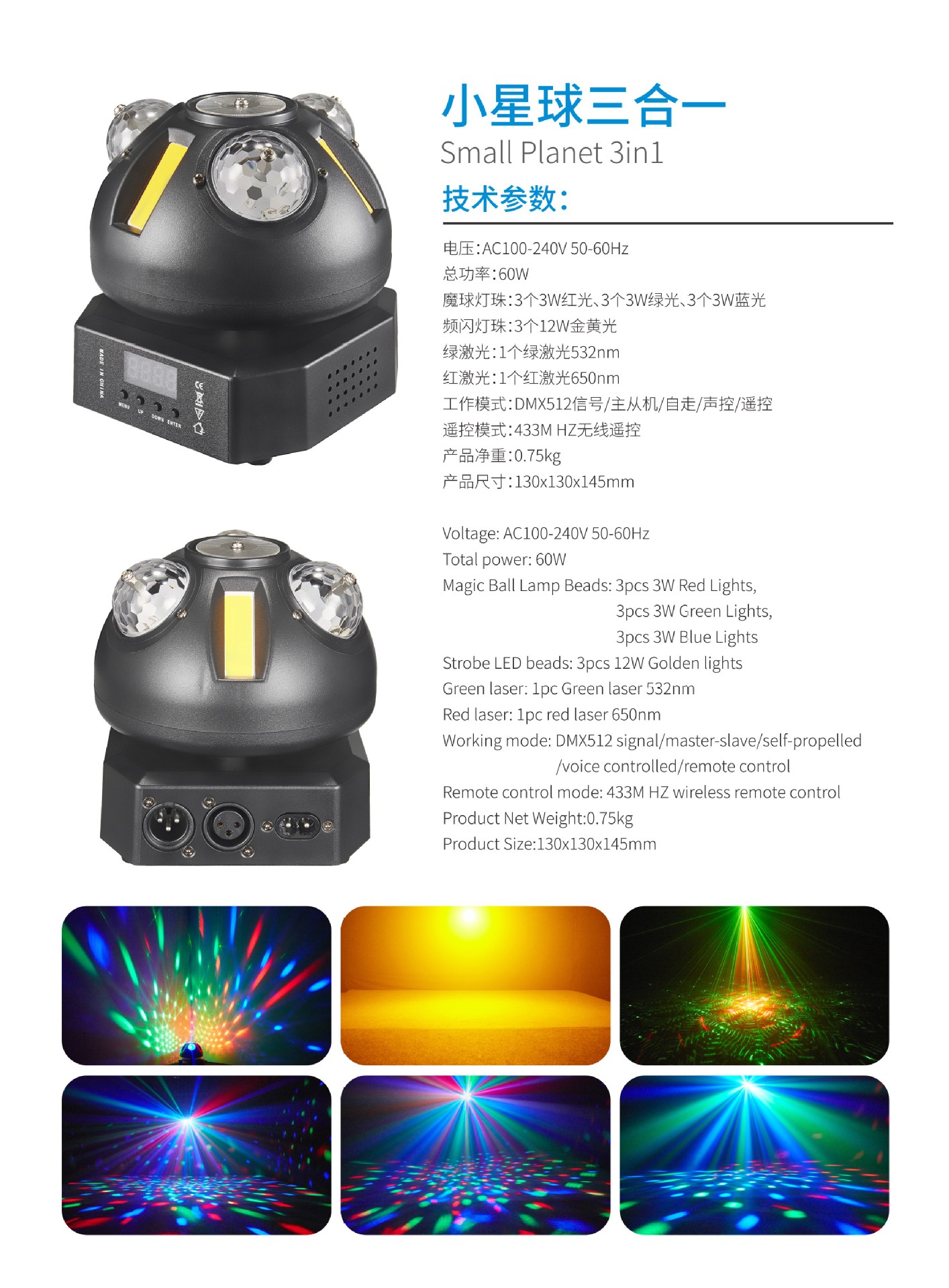 신제품 작은 행성 3 대 1 무한 회전 빛 ED 스트로브 매직 볼 라이트 KTV 바 무대 레이저 빛 국경
