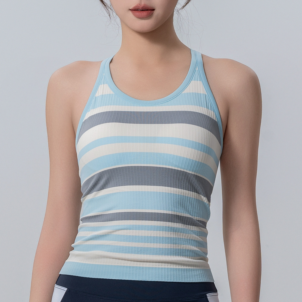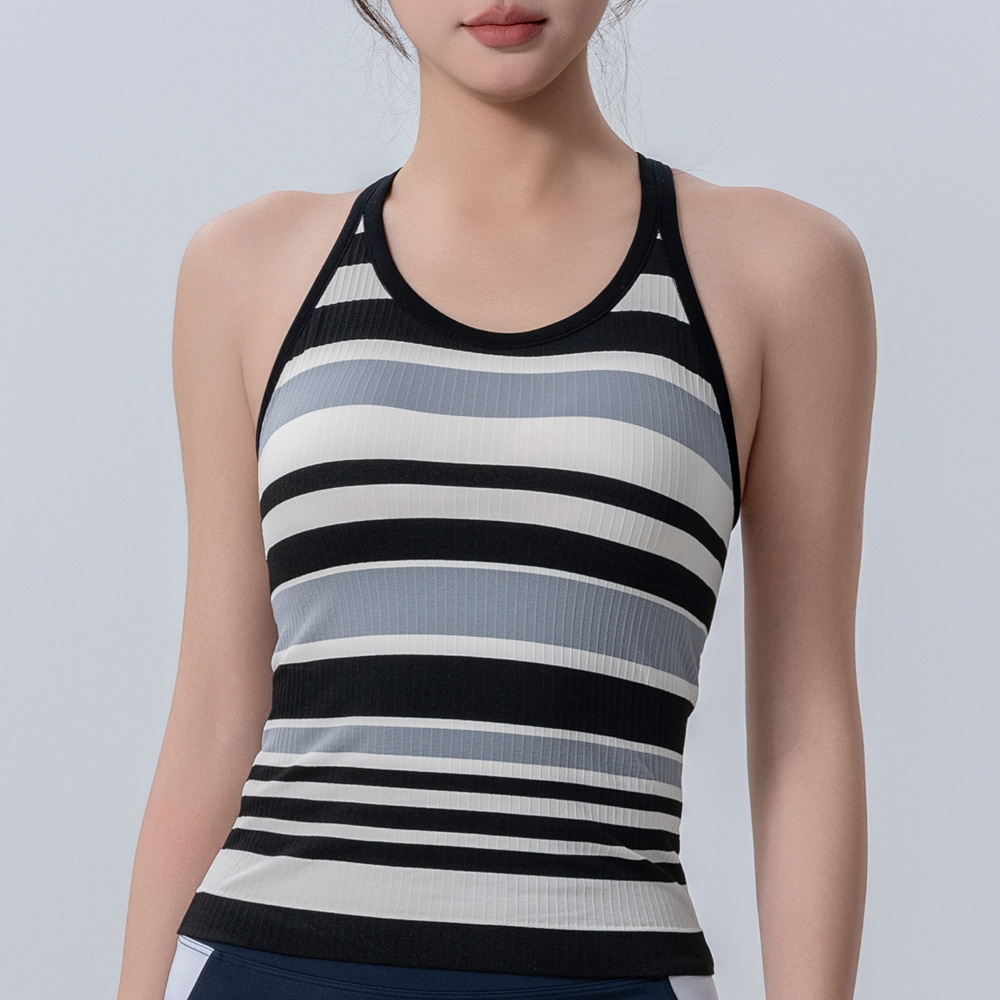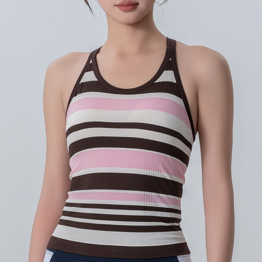 가슴 패드가 있는 요가 조끼 속옷 속건성 줄무늬 내부 및 외부 피트니스웨어 스포츠 탑 인 핫 스타일