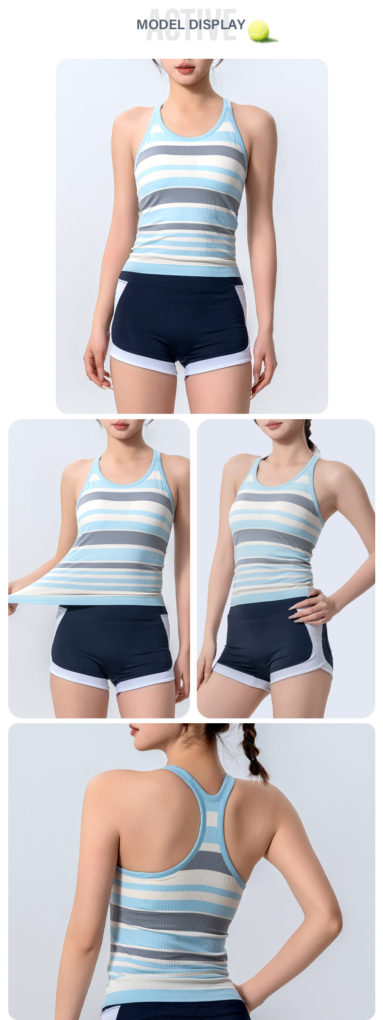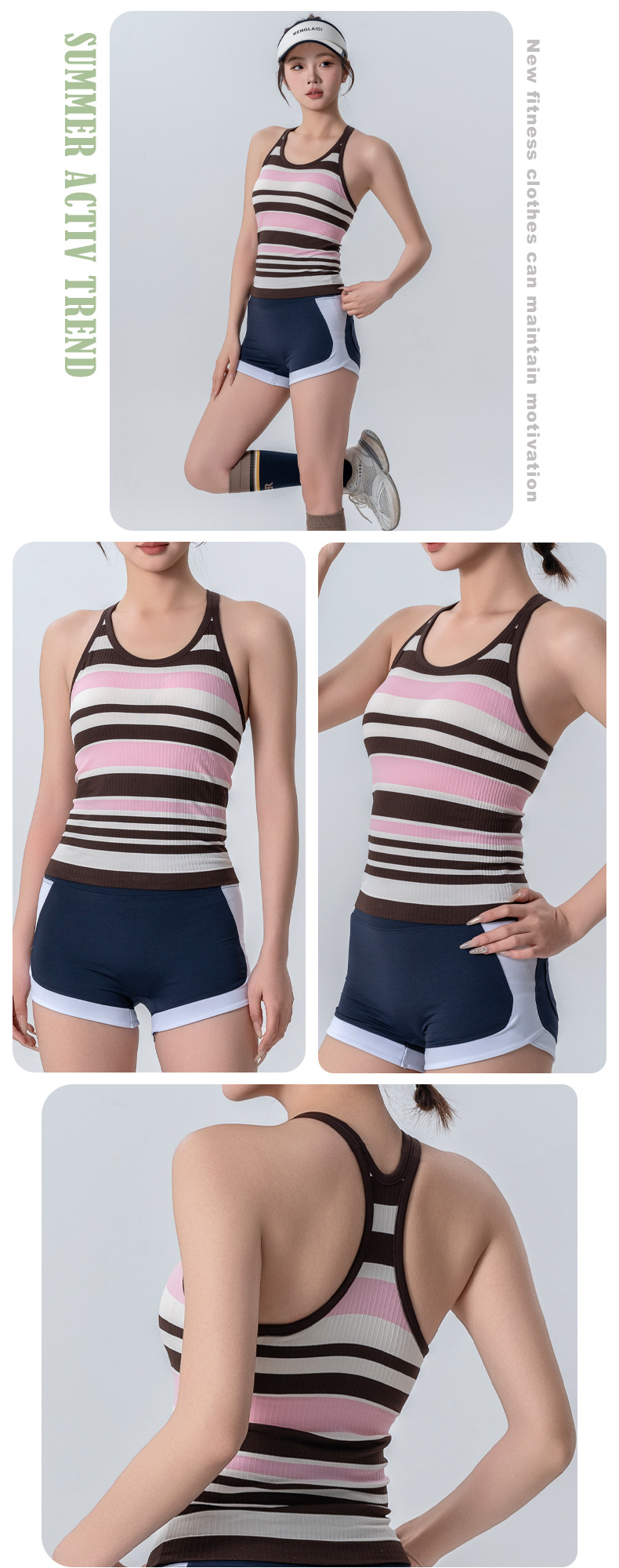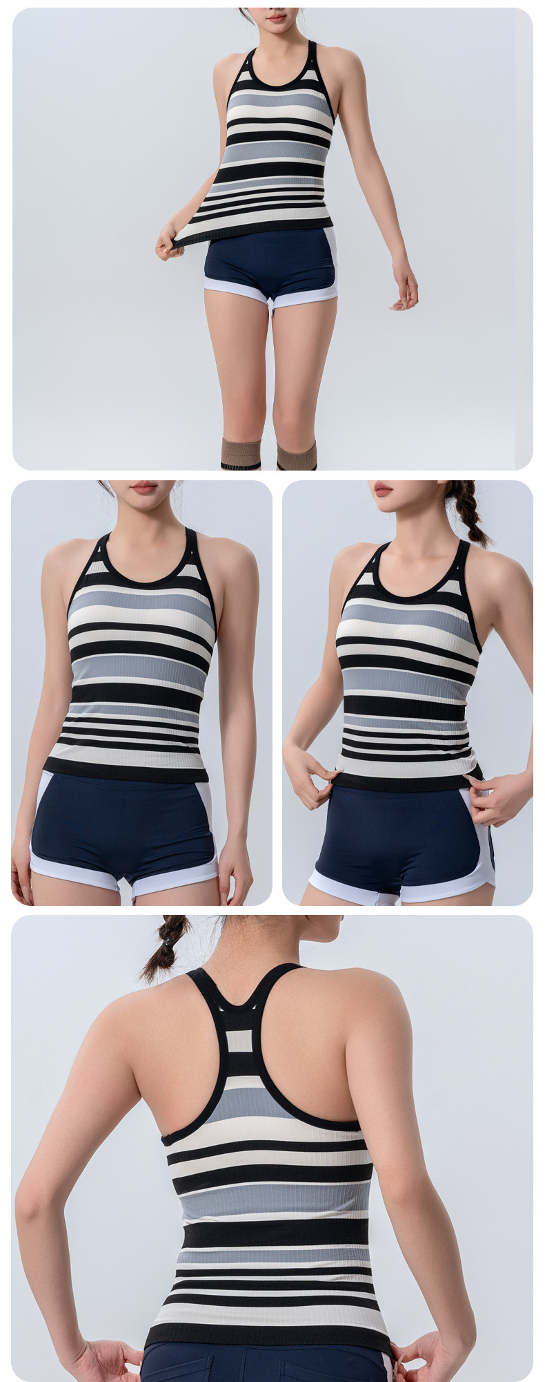 가슴 패드가 있는 요가 조끼 속옷 속건성 줄무늬 내부 및 외부 피트니스웨어 스포츠 탑 인 핫 스타일
