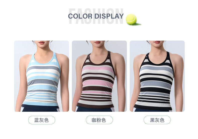 가슴 패드가 있는 요가 조끼 속옷 속건성 줄무늬 내부 및 외부 피트니스웨어 스포츠 탑 인 핫 스타일스토어 가기