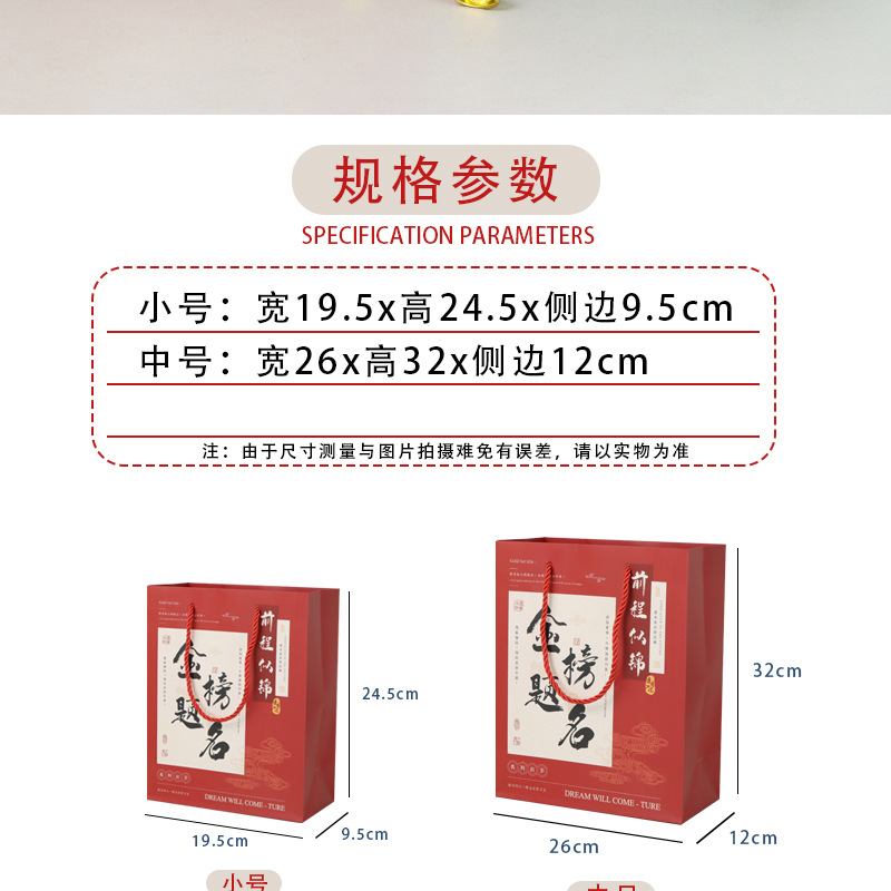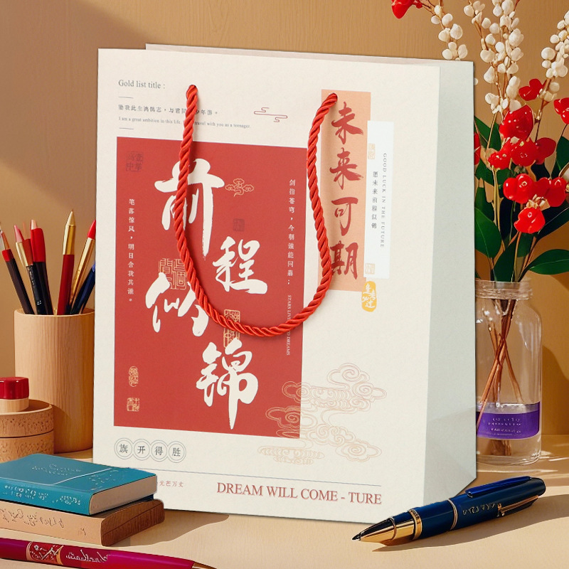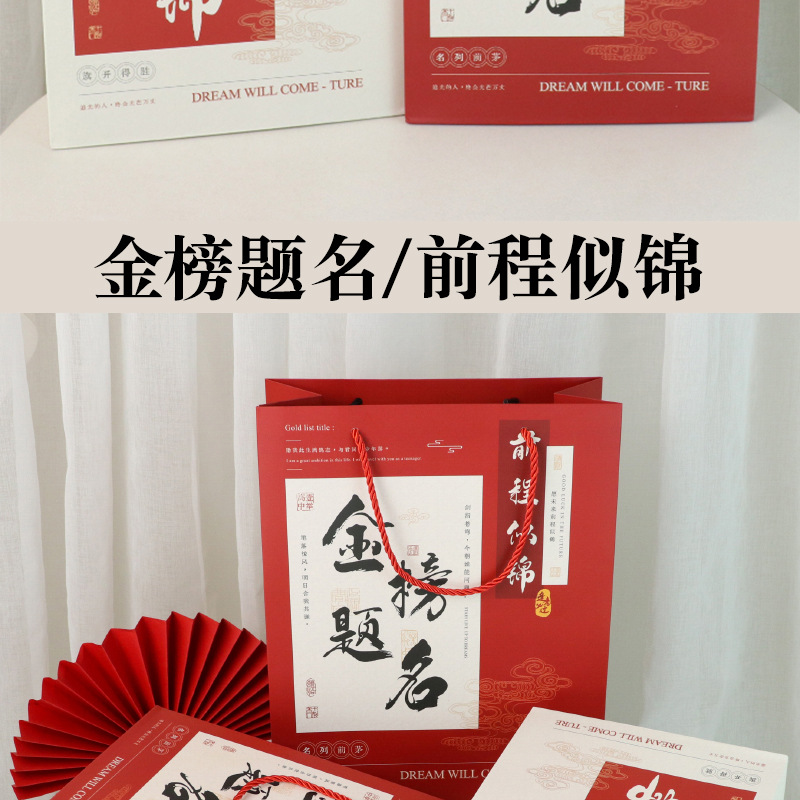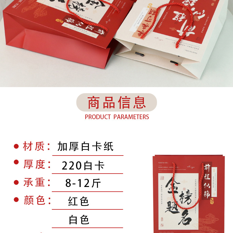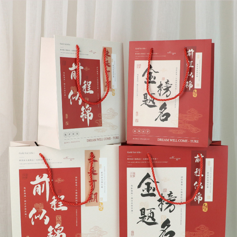 중국 스타일 오마이갓 대학 입시 영감 학교 가방 복고풍 종이 가방 축제 선물 가방 고등학교 입시 금상 선물 상자스토어 가기