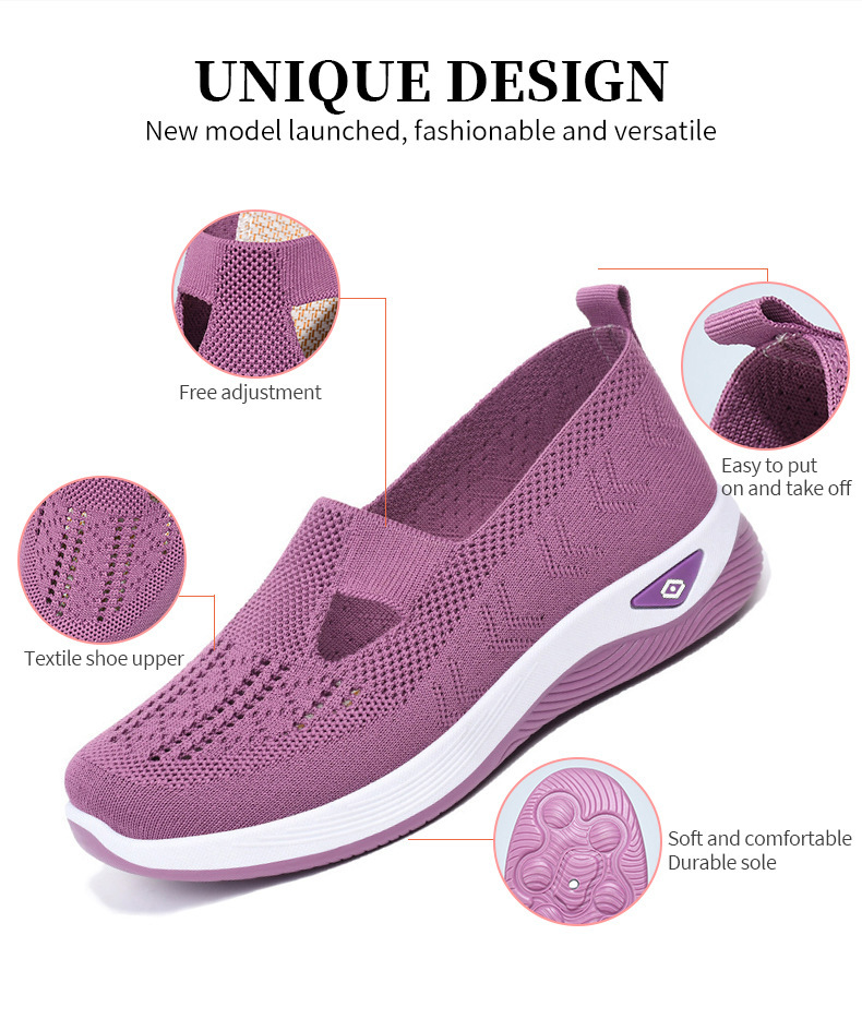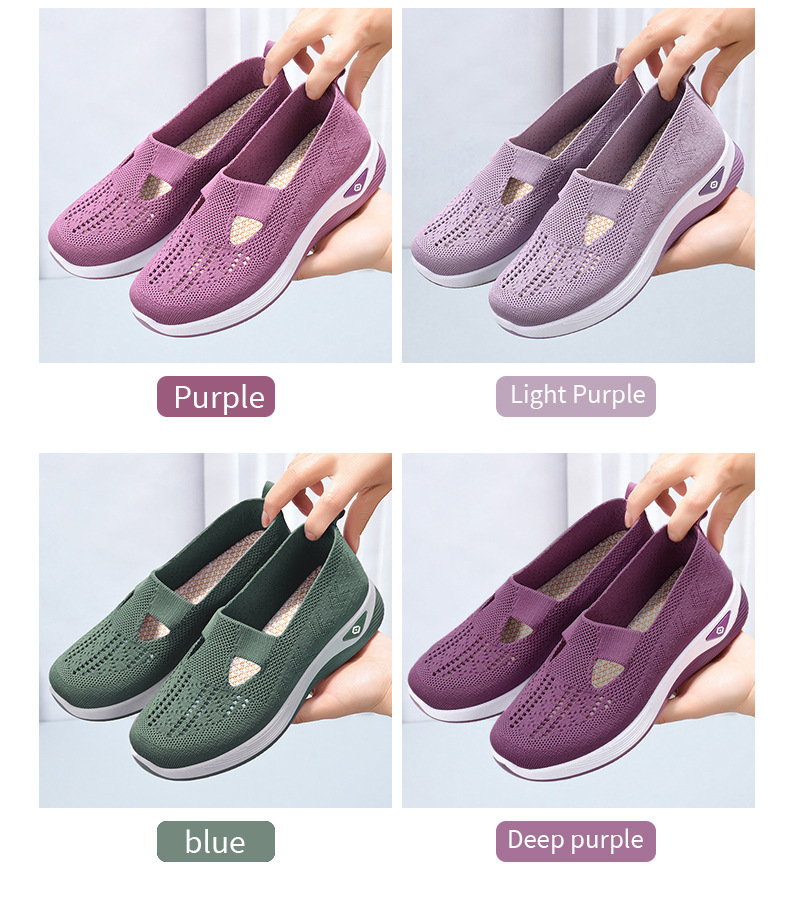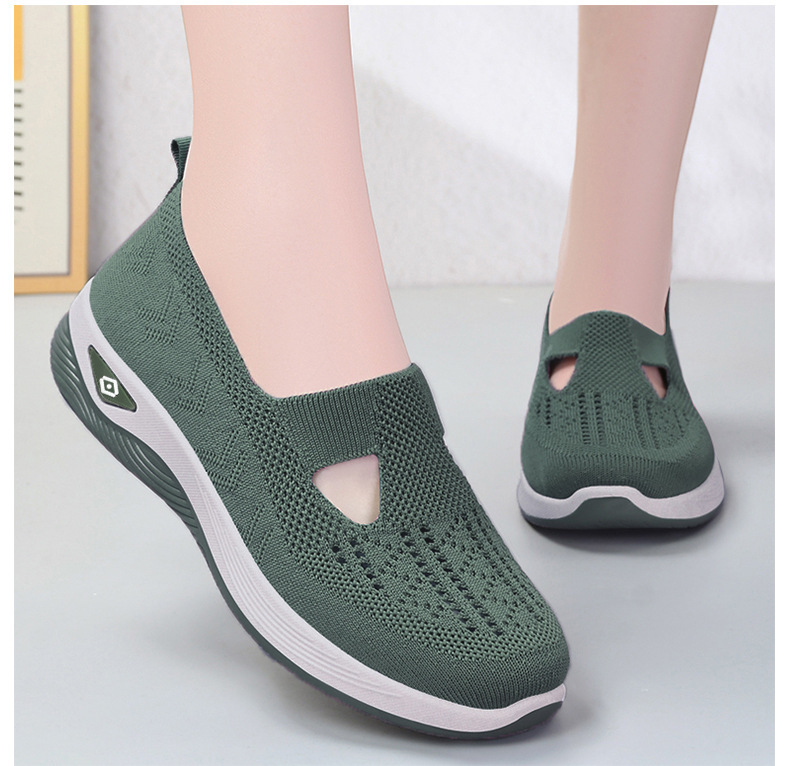 여성 신발 소프트 솔 피곤하지 않은 발 여름 국경 신발 캐주얼 신발 슬립 온 엄마 신발 메쉬 통기성 걷기 신발