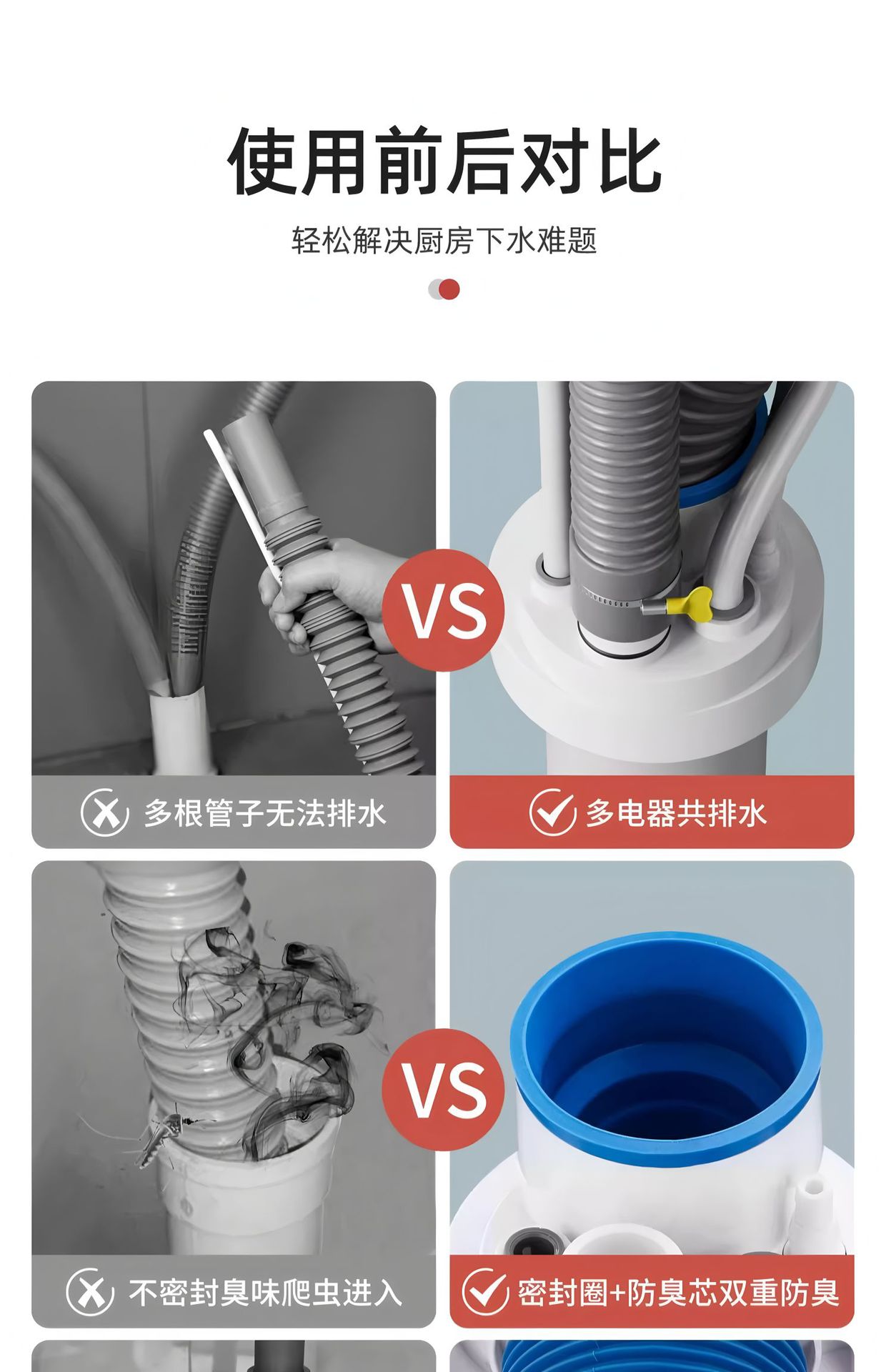 주방 하수관 5 방향 배수관 탈취제 다기능 사전 필터 식기 세척기 정수기 3 방향 커넥터스토어 가기