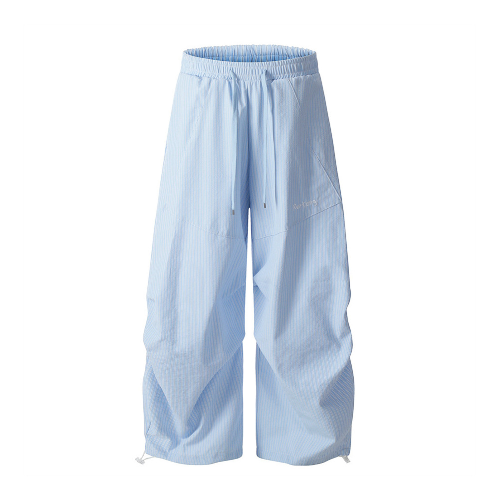 수직 줄무늬 Machete 캐주얼 바지 남자 스포츠 느슨한 충전 바지 주름 디자인 주름 된 낙하산 병 넓은 다리 유행 바지