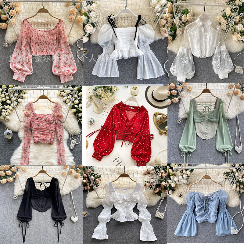 새로운 꽃 쉬폰 셔츠 여성의 프랑스 민소매 뜨거운 소녀 한국 달콤한 슈퍼 요정 짧은 여성 최고 공장 도매