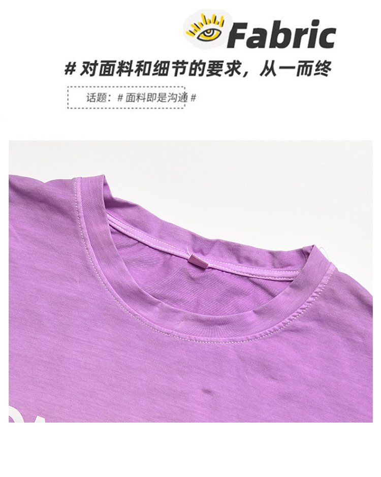 • 매달아 염색 보라색 [흰색에 보라색 글자가 있는 반팔]