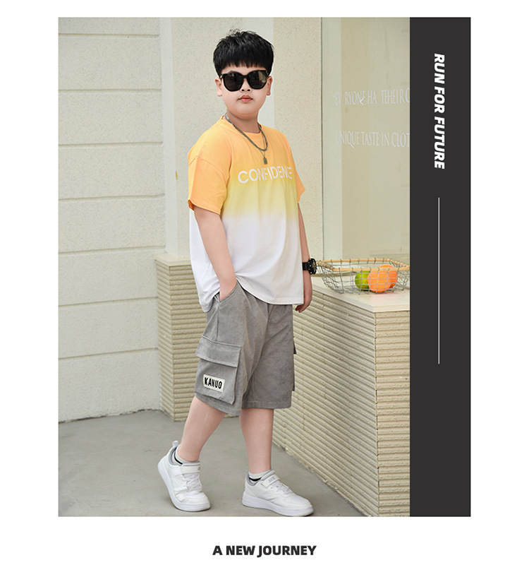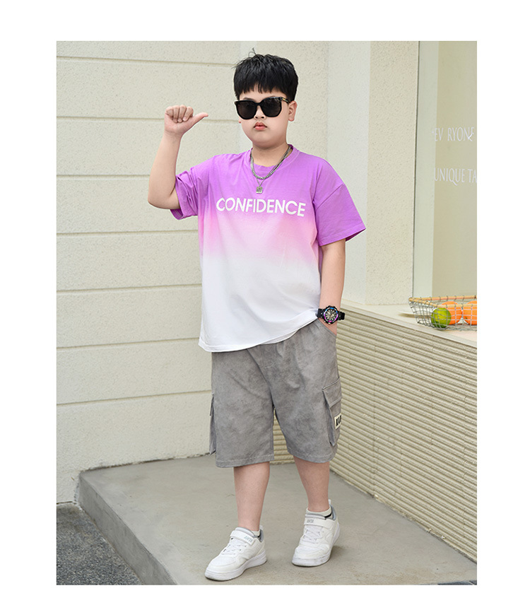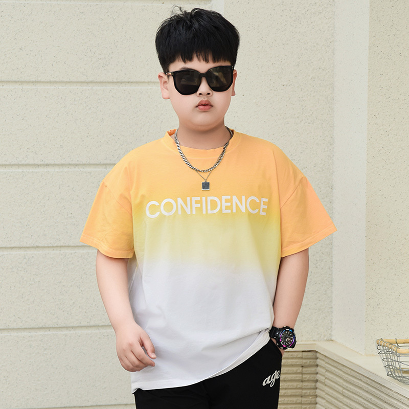 통통한 소년 어린이 반소매 코튼 티셔츠 2025 얇은 여름 착용 플러스 대형 중형 및 대형 아동복 느슨한 반소매 최고 트렌디 티셔츠스토어 가기