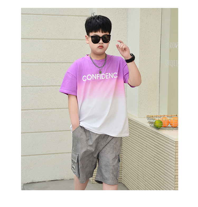 통통한 소년 어린이 반소매 코튼 티셔츠 2025 얇은 여름 착용 플러스 대형 중형 및 대형 아동복 느슨한 반소매 최고 트렌디 티셔츠