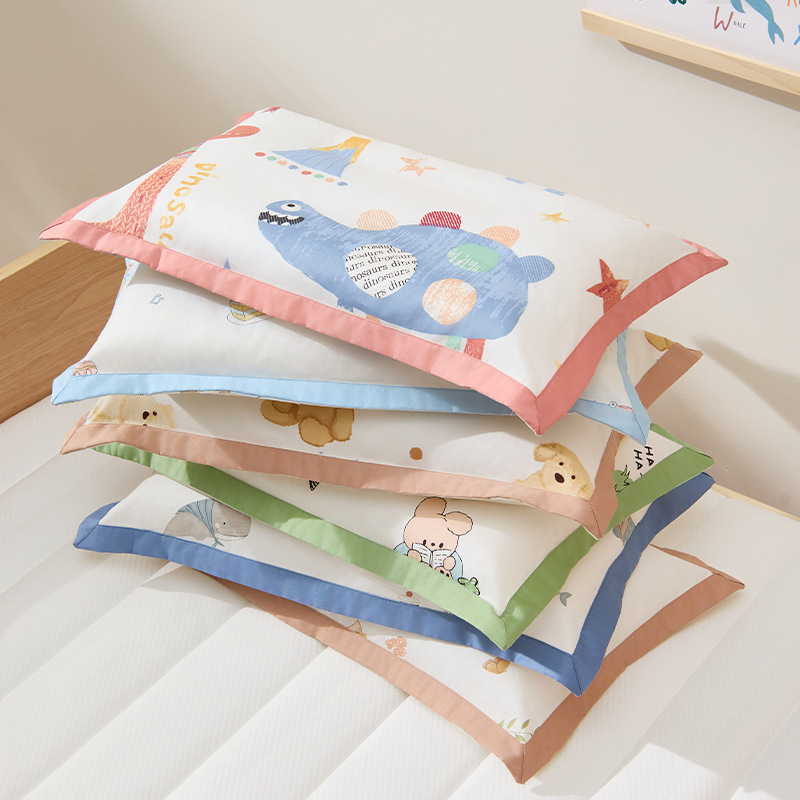 2025 봄과 여름 새로운 어린이 만화 면 60 카운트 긴 스테이플 면 만화 면 베개 커버 라텍스 베개 작은 베개 커버