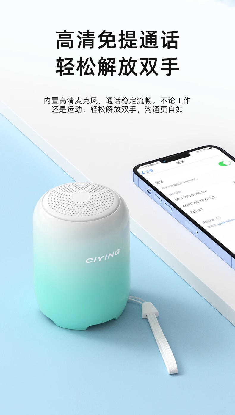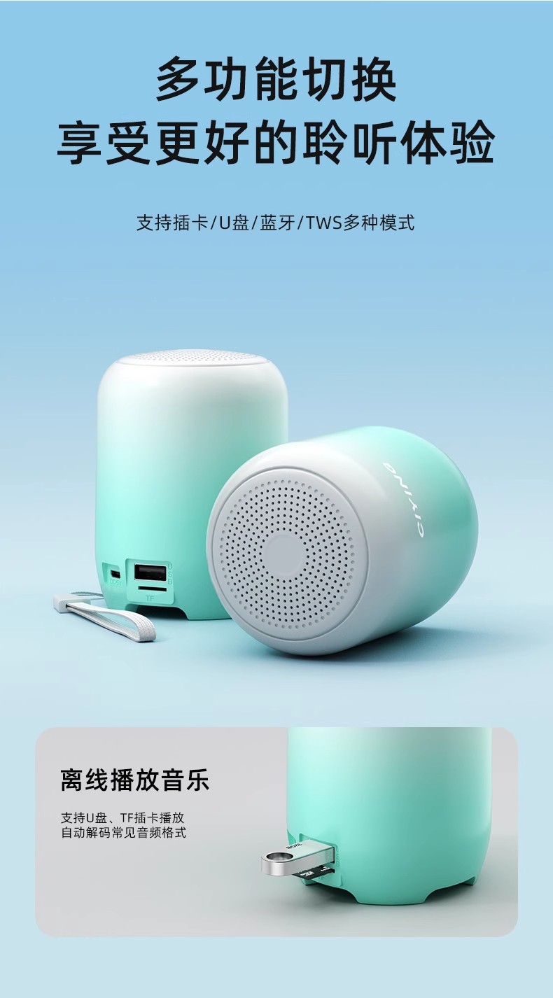 미니 블루투스 스피커 마카롱 그라데이션 컬러 카드 삽입형 오디오 휴대용 무선 야외 AI 음성 서브우퍼