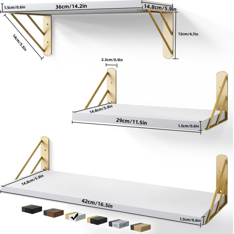 맞춤형 국경 간 벽걸이 선반, 직선형 칸막이, 삼각형 철제 브래킷, 침실 및 거실 벽걸이형 내하중 보드