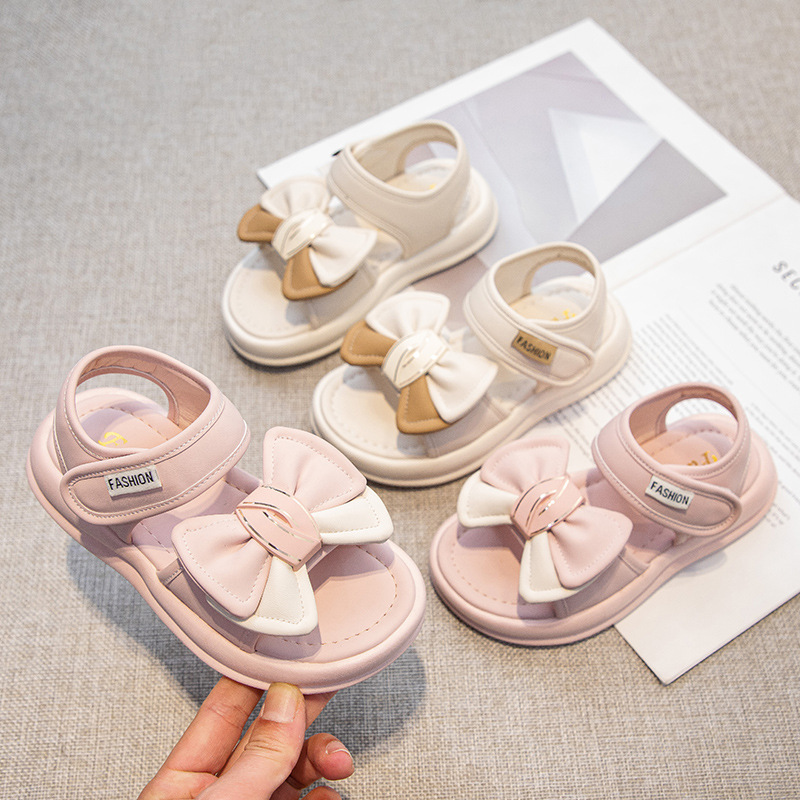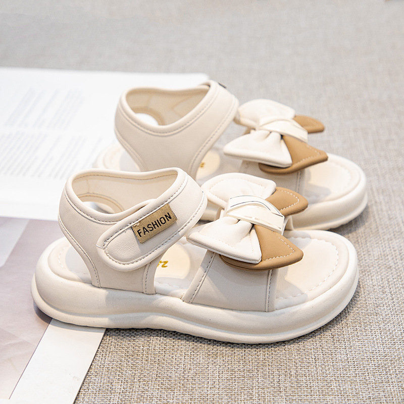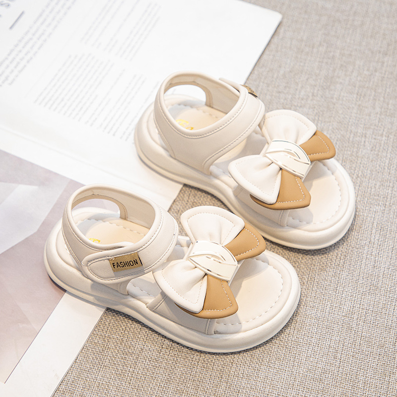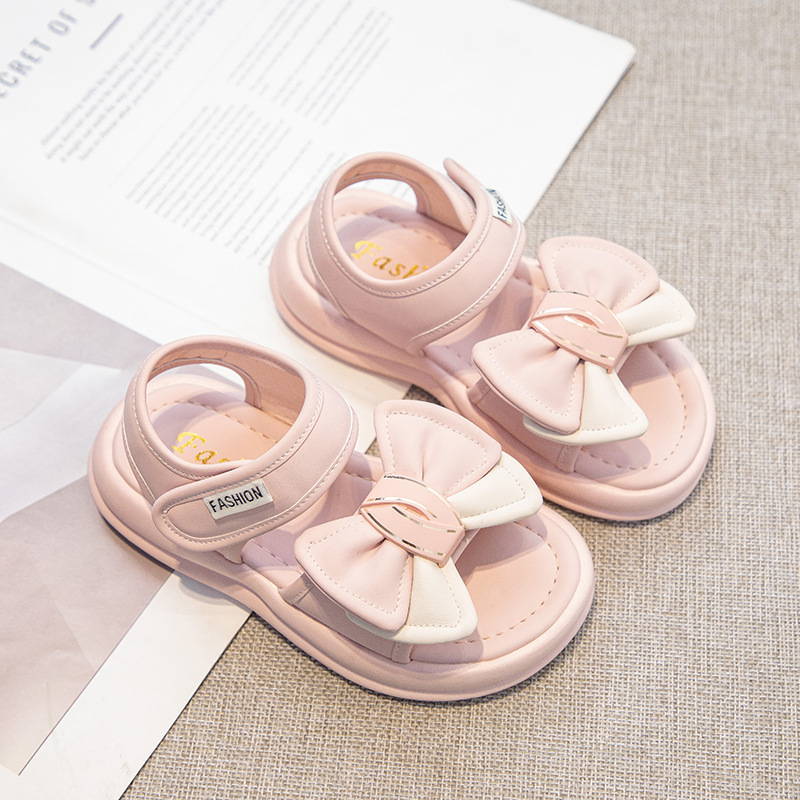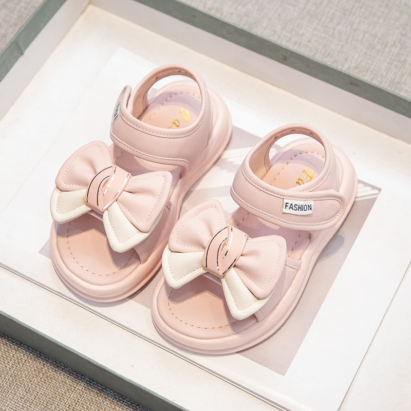 2025 여름 새로운 패션 소녀 편안한 공주 신발 소녀 캐주얼 나비 매듭 샌들 편지 비치 신발