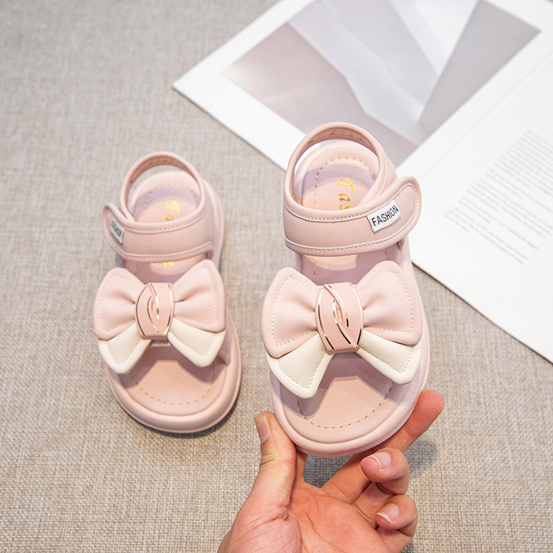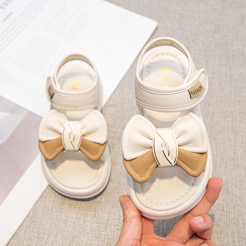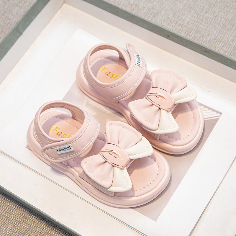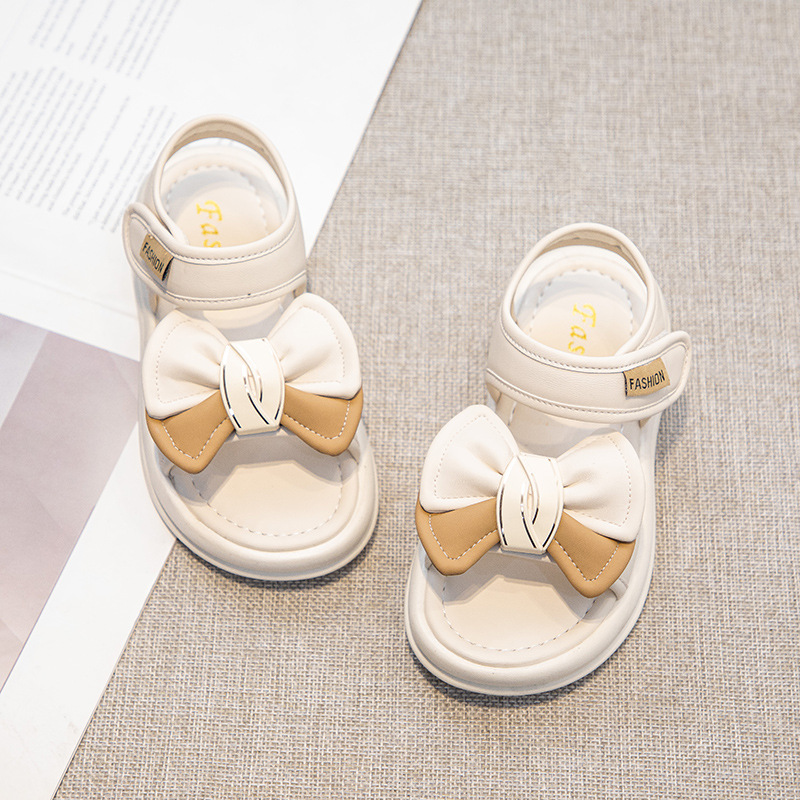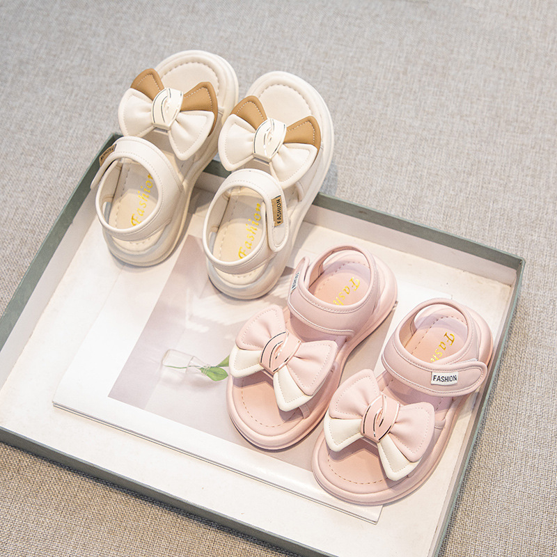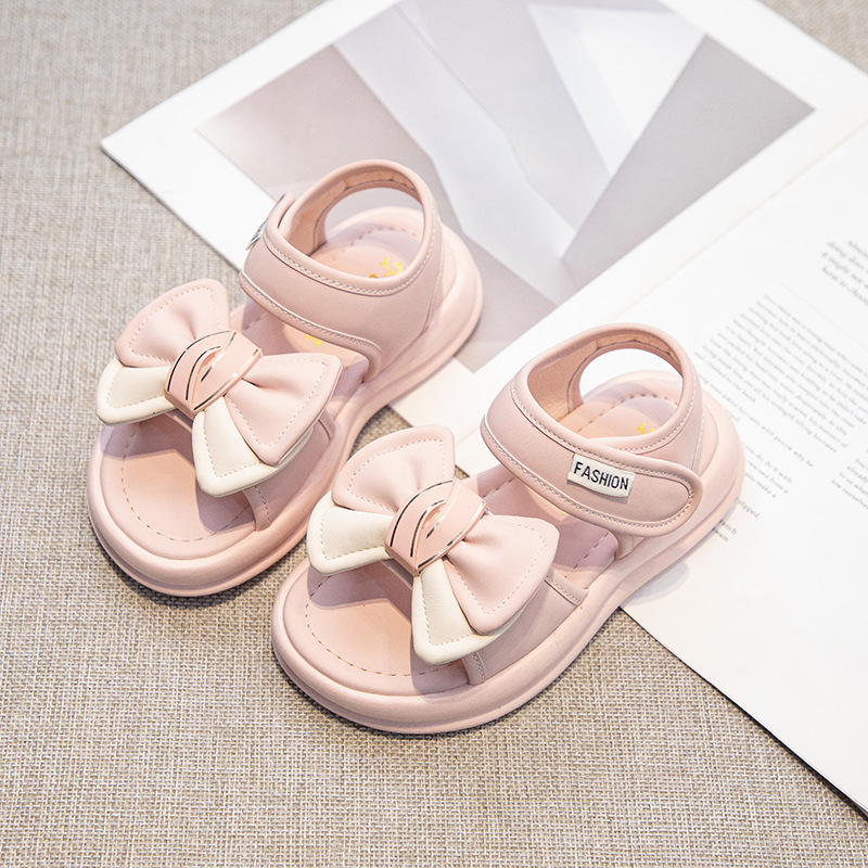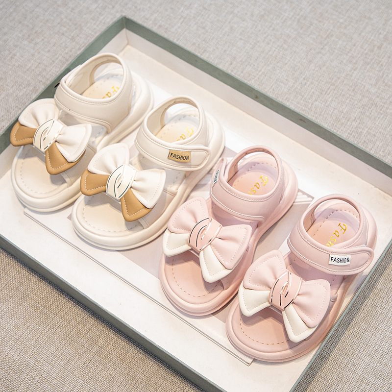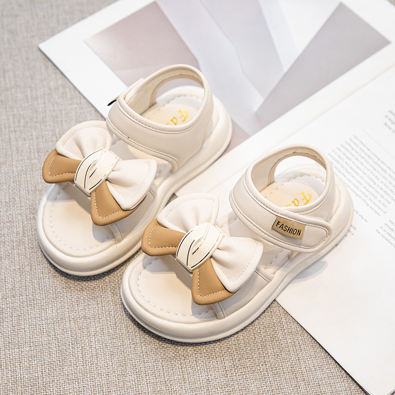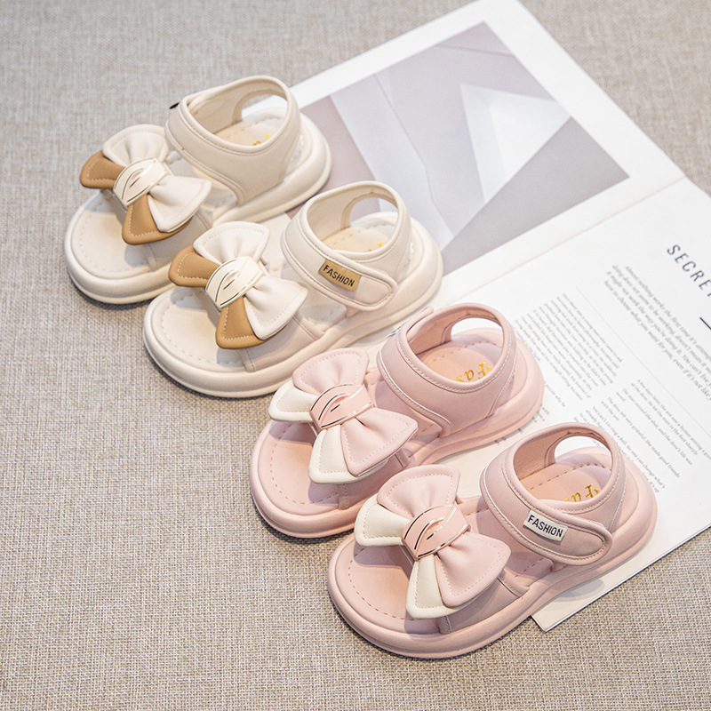2025 여름 새로운 패션 소녀 편안한 공주 신발 소녀 캐주얼 나비 매듭 샌들 편지 비치 신발스토어 가기