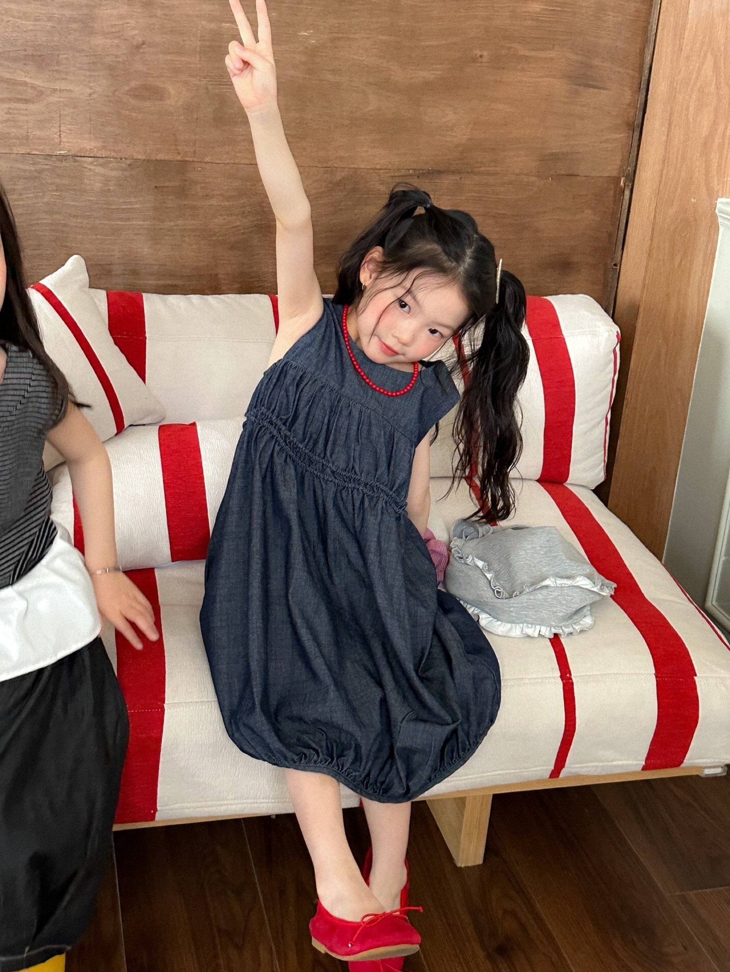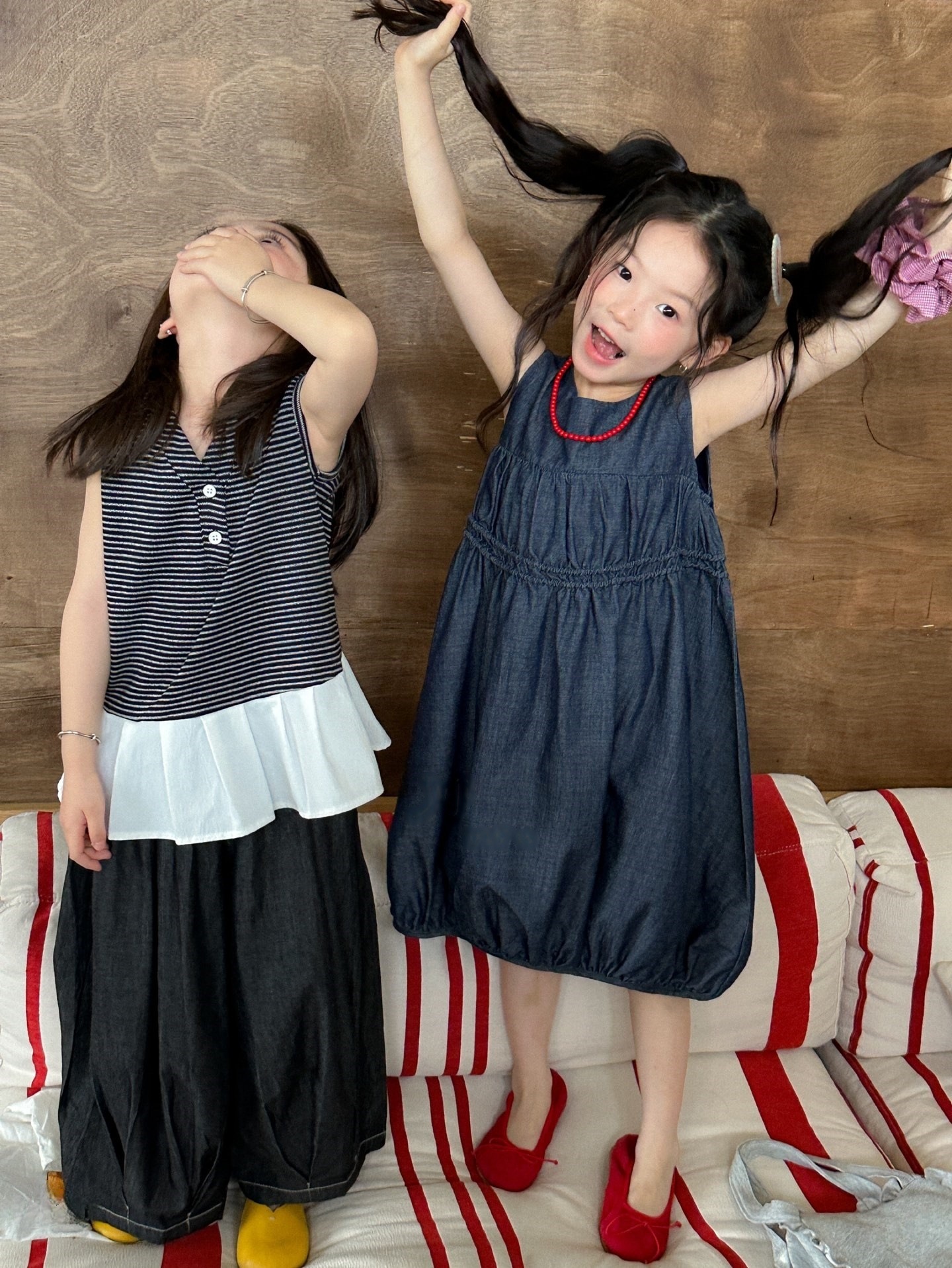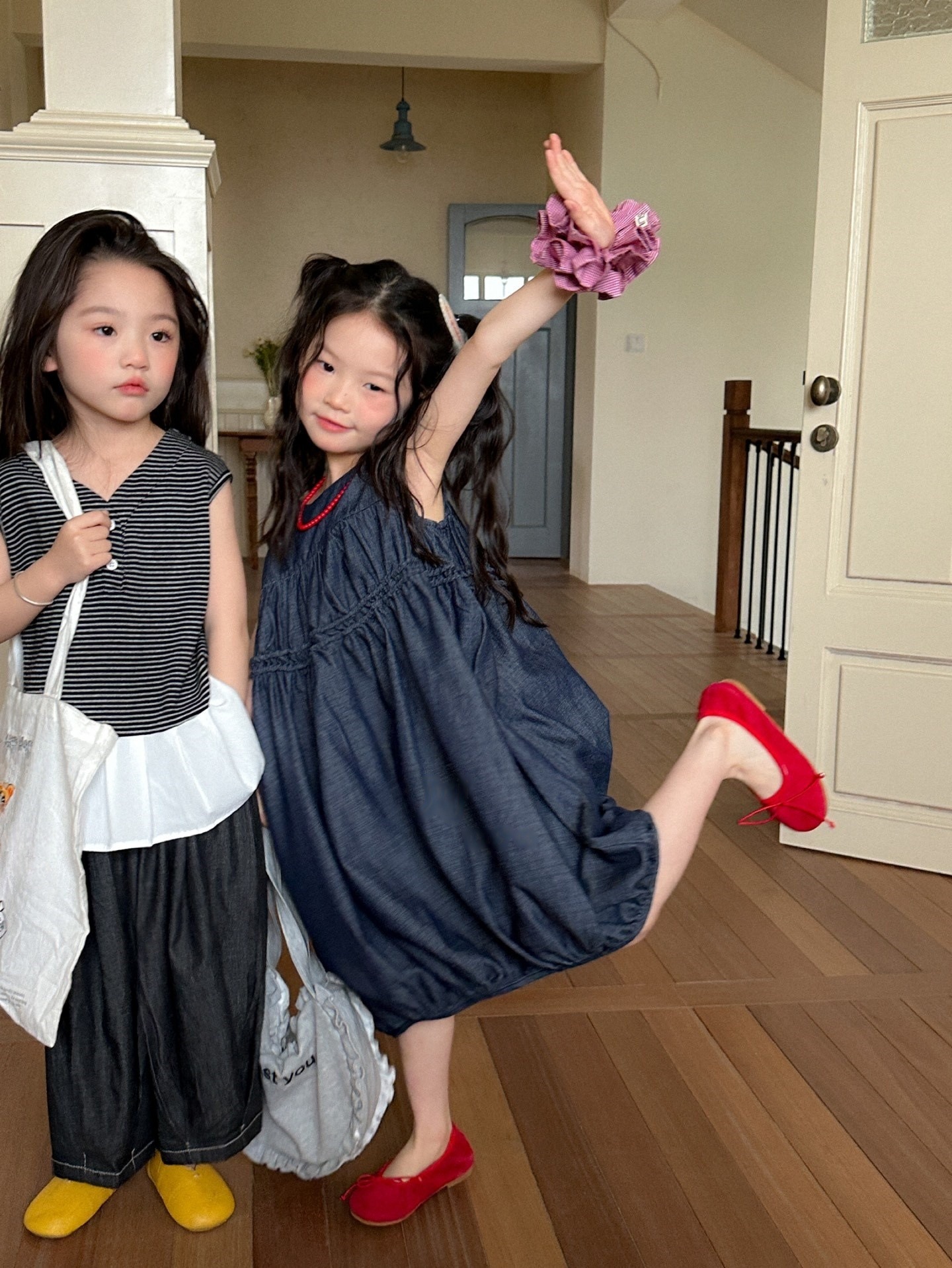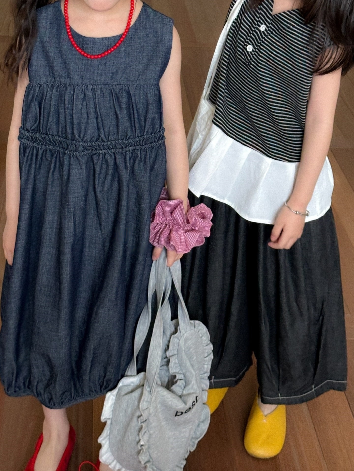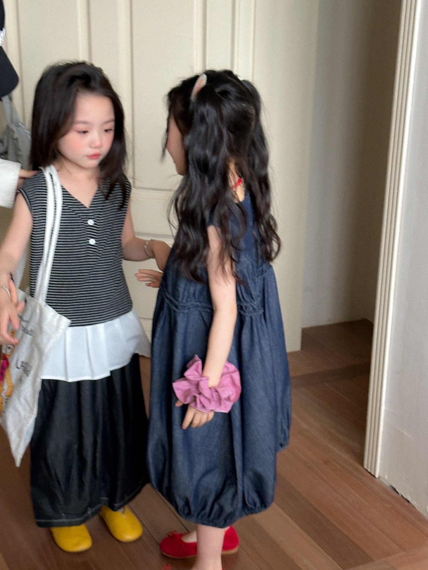 한국 아동복 소녀 느슨한 캐주얼 원피스 2025 여름 새로운 아기 소녀 스타일 데님 스커트 대외 무역스토어 가기
