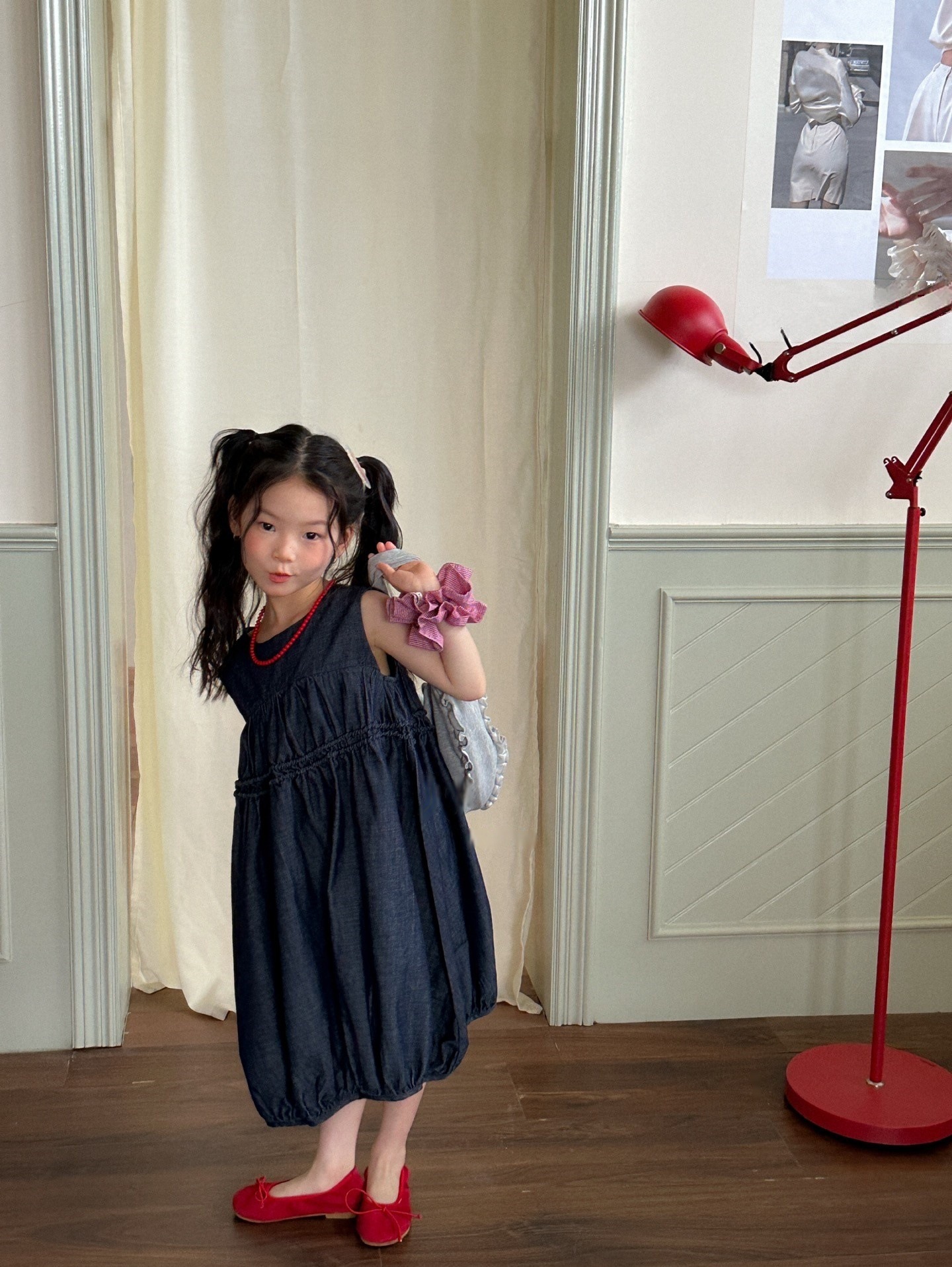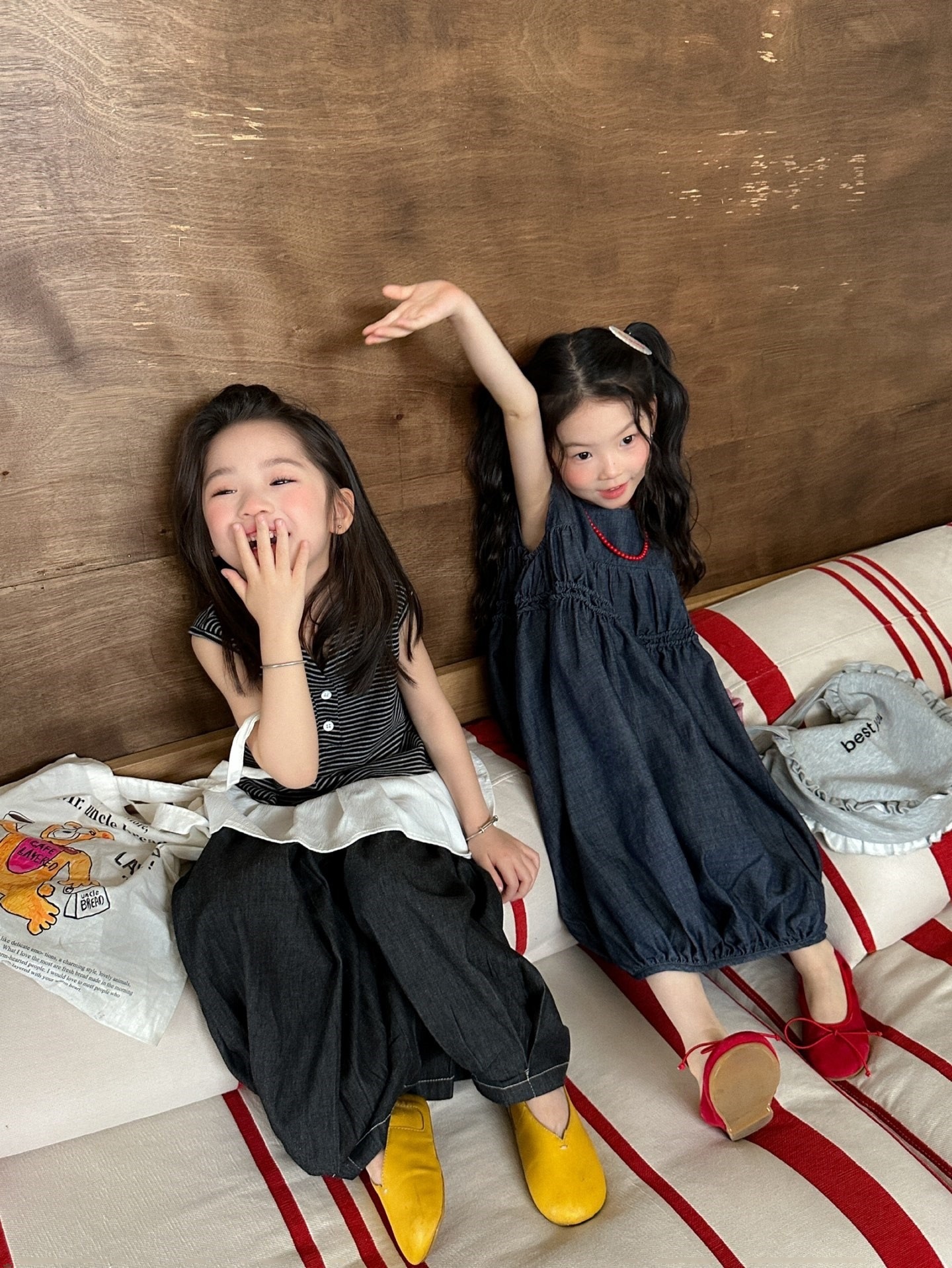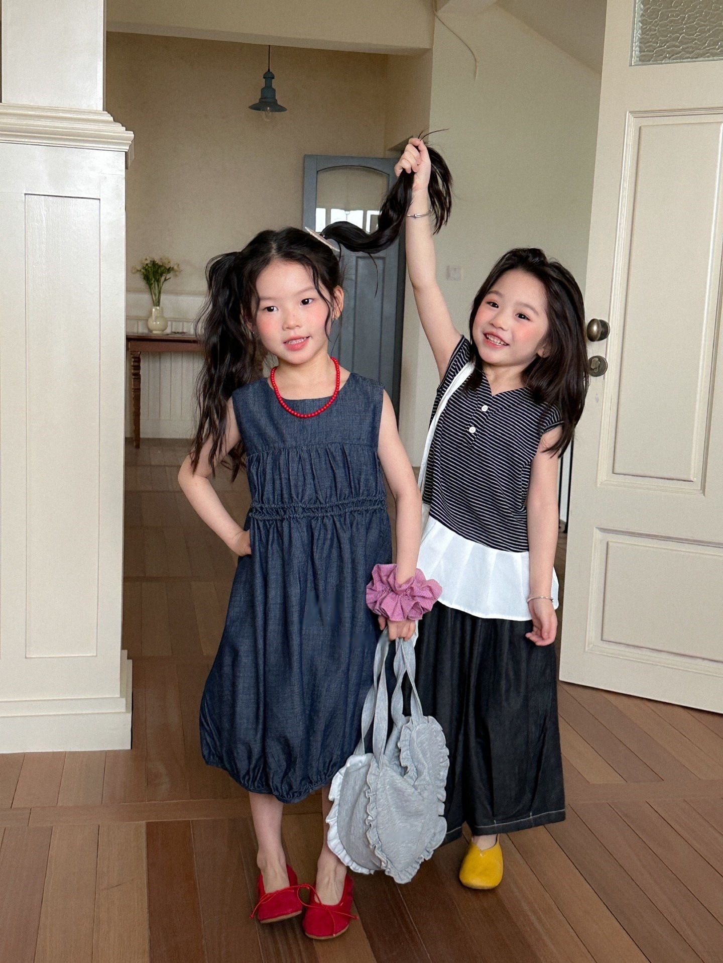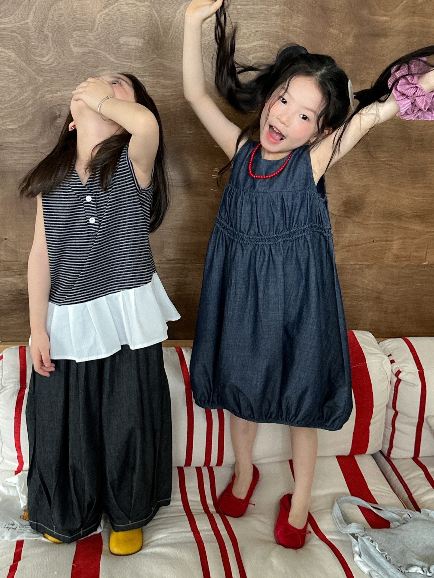 한국 아동복 소녀 느슨한 캐주얼 원피스 2025 여름 새로운 아기 소녀 스타일 데님 스커트 대외 무역스토어 가기