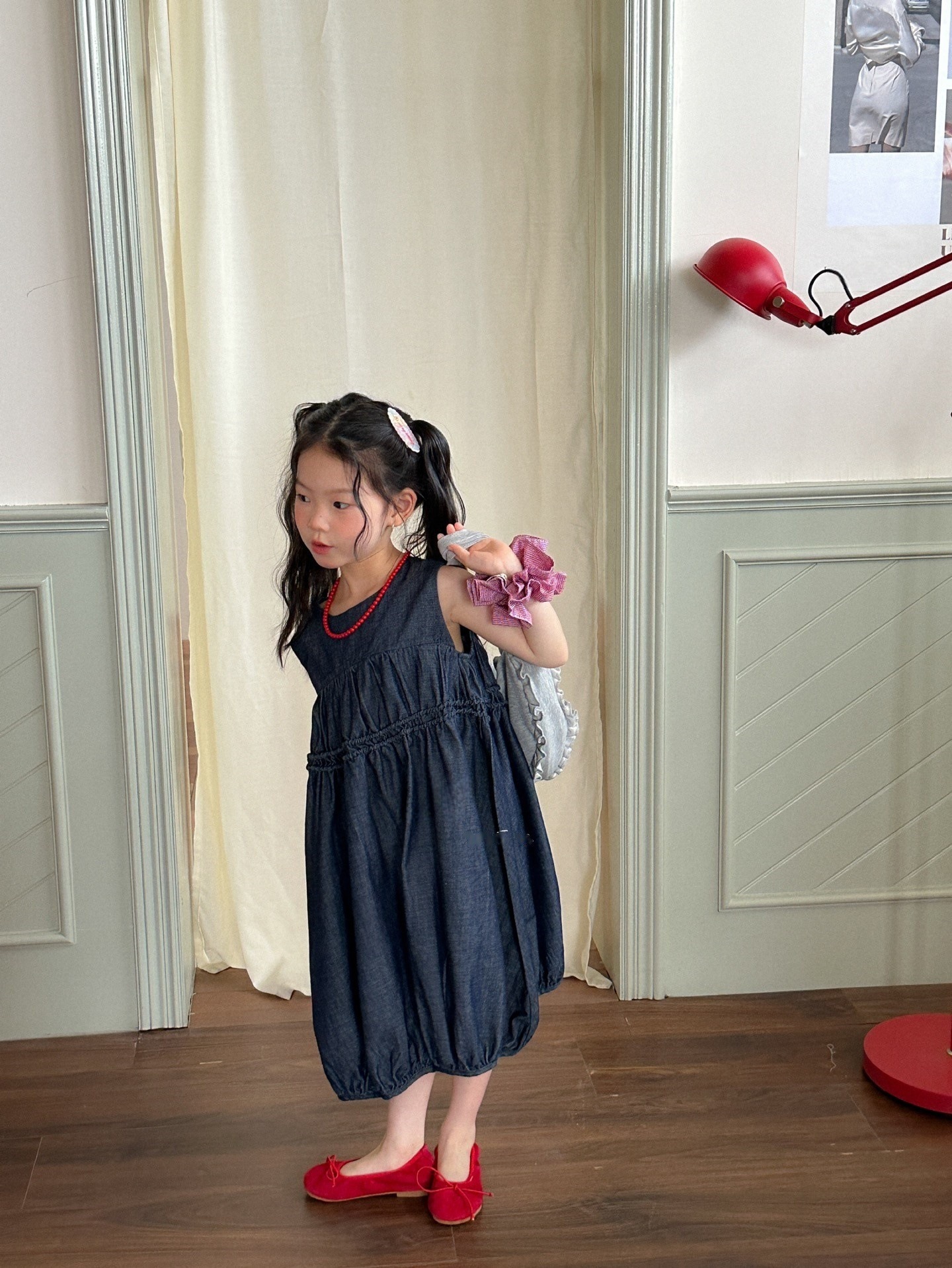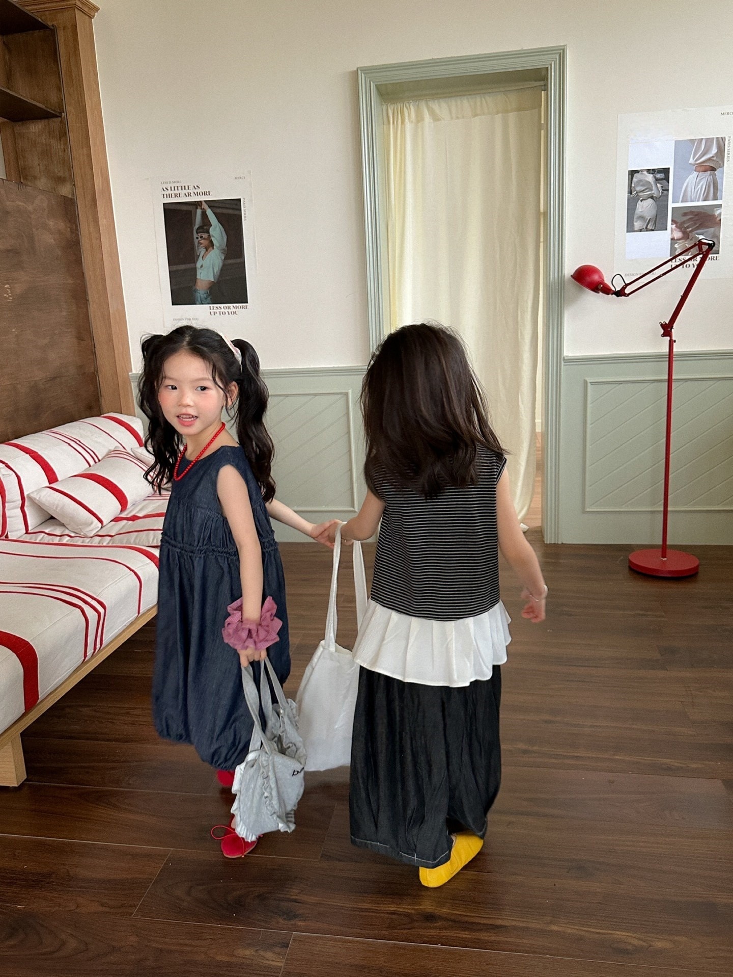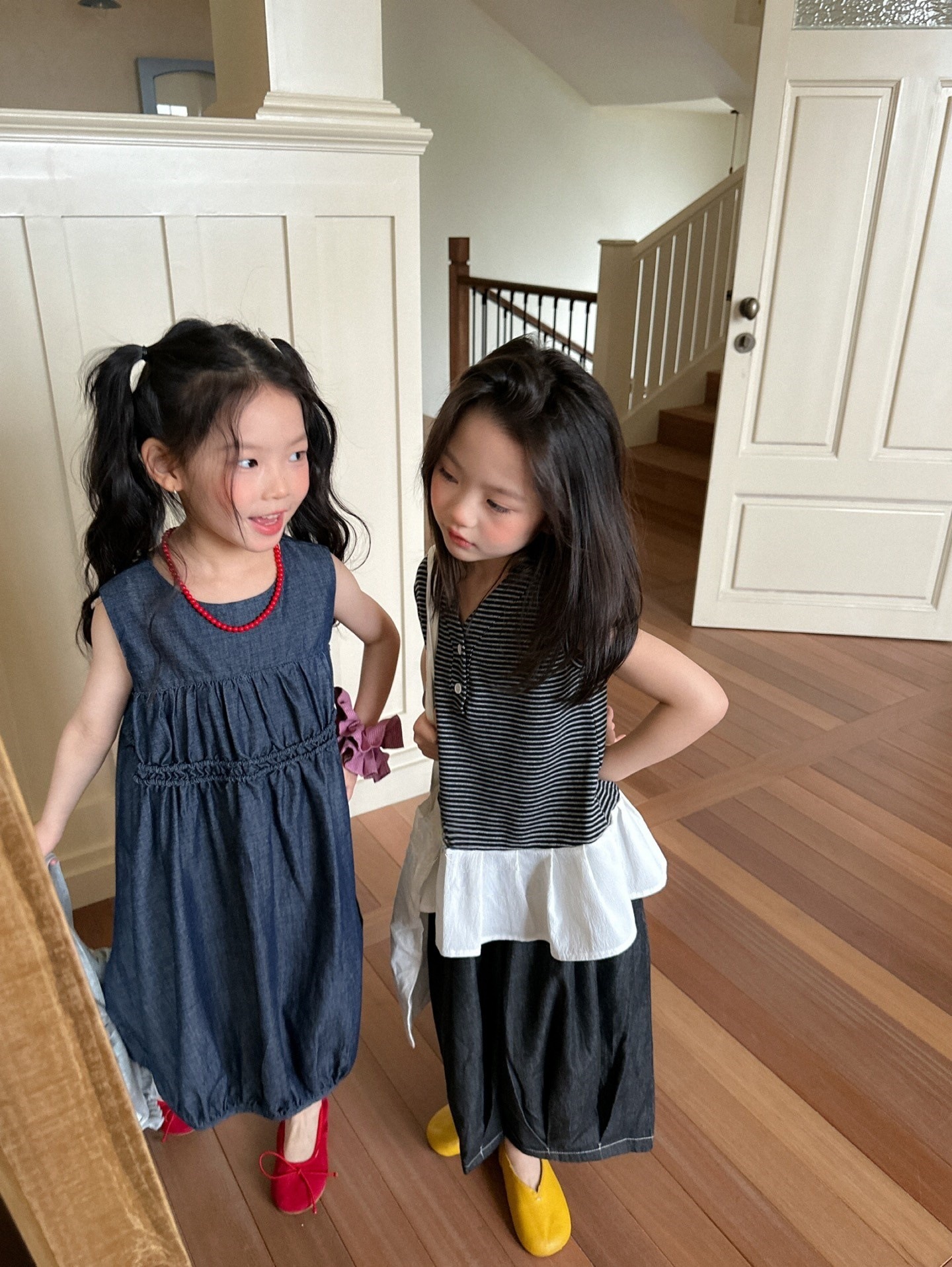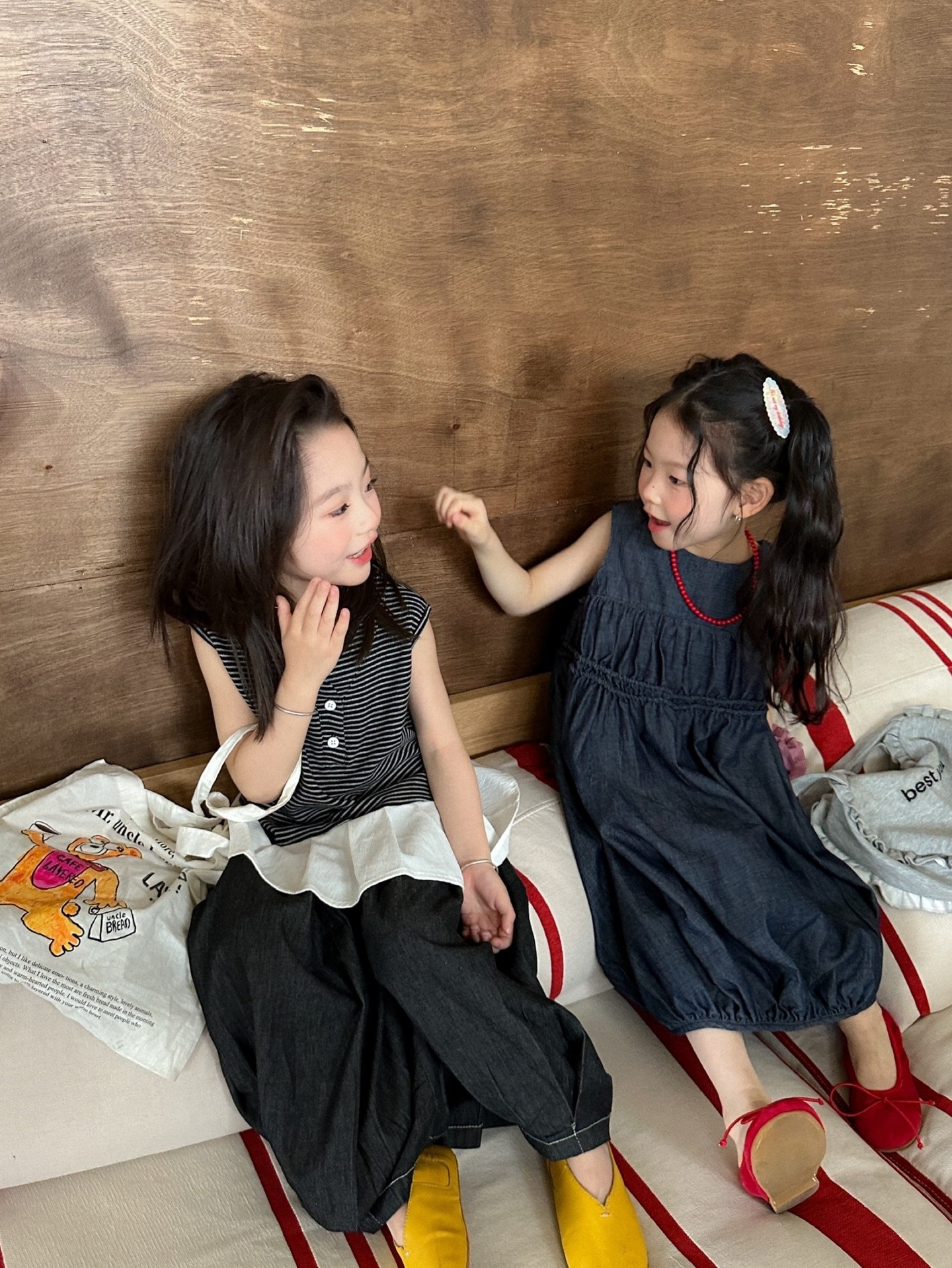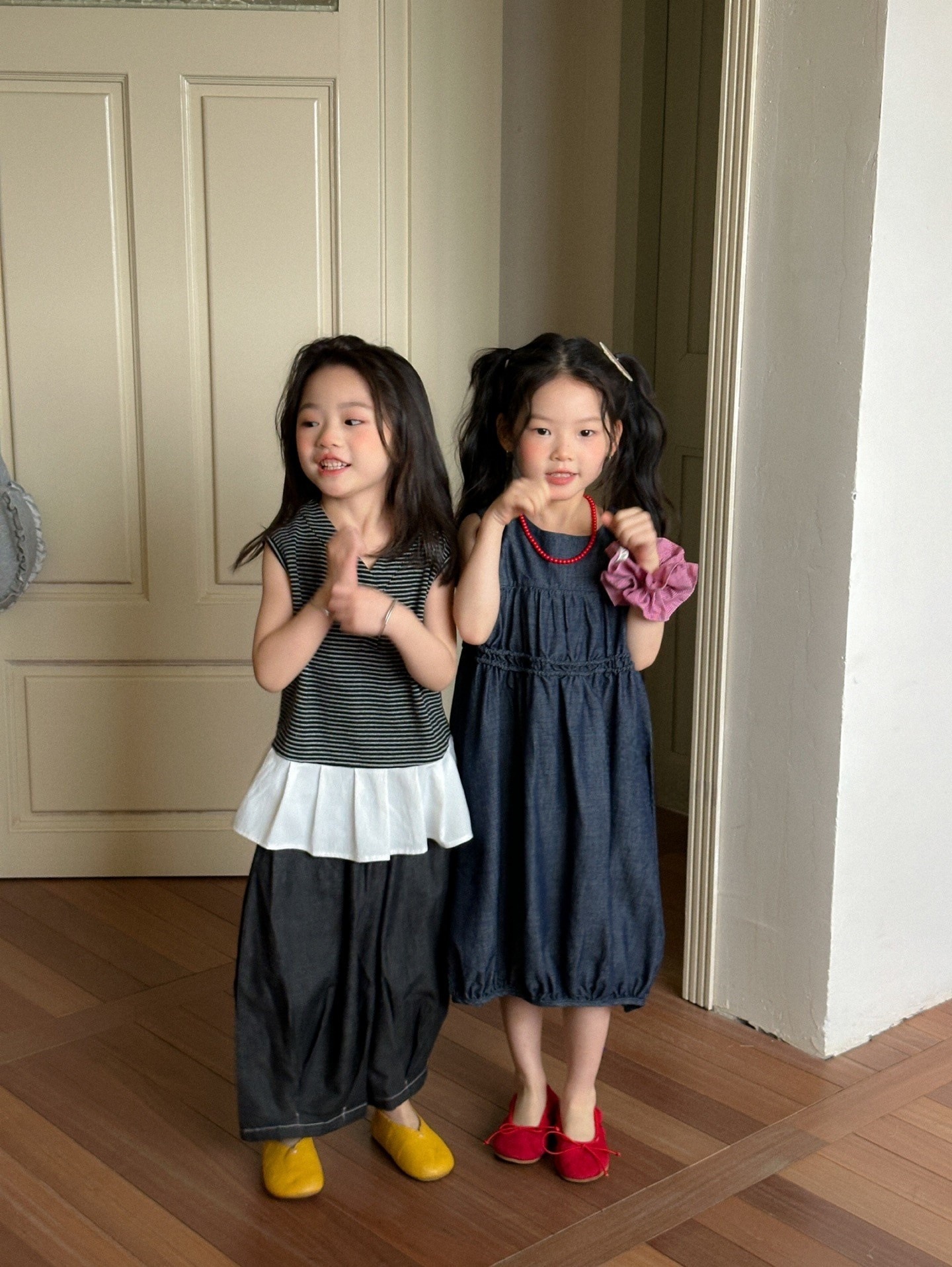한국 아동복 소녀 느슨한 캐주얼 원피스 2025 여름 새로운 아기 소녀 스타일 데님 스커트 대외 무역스토어 가기