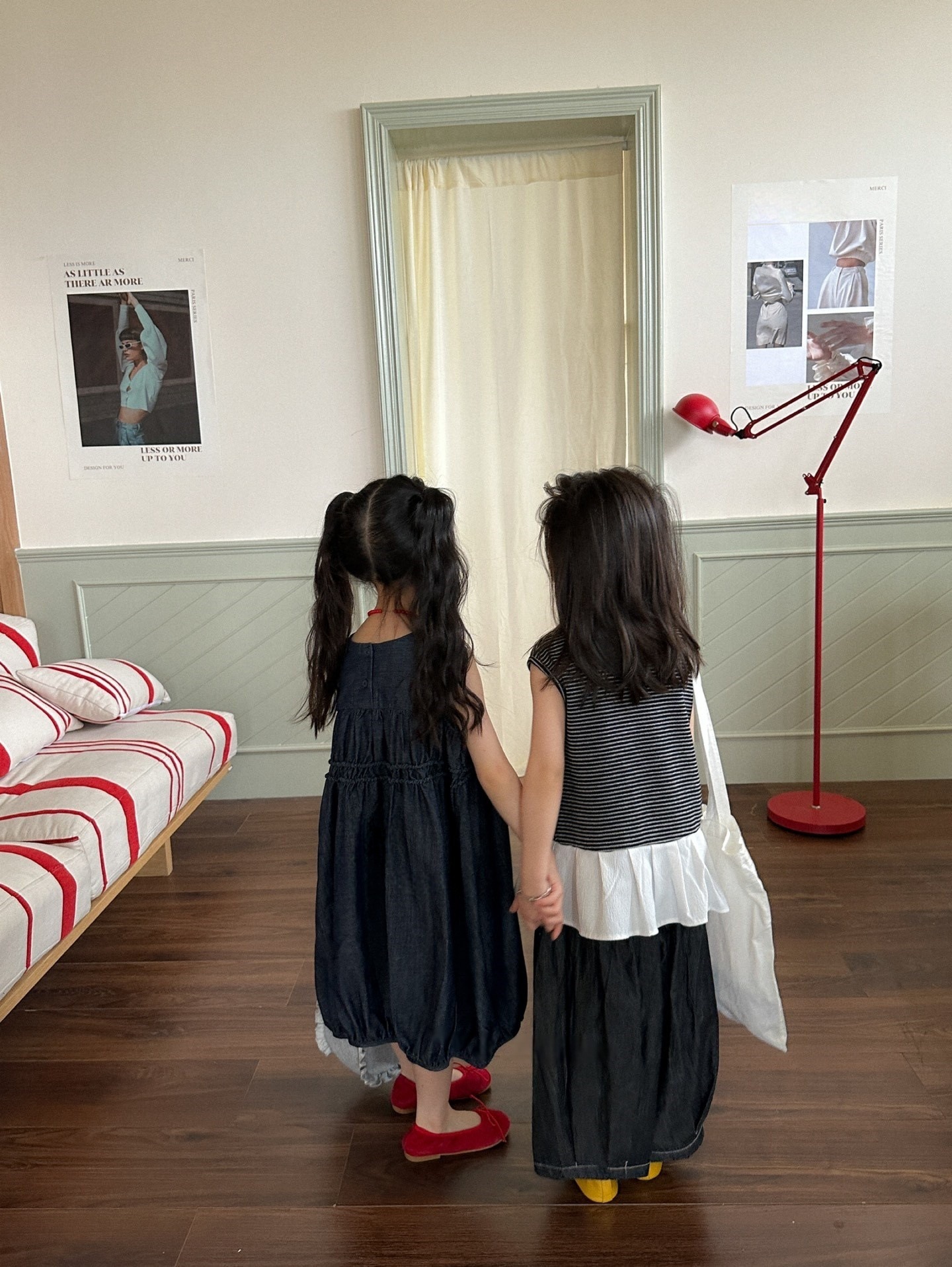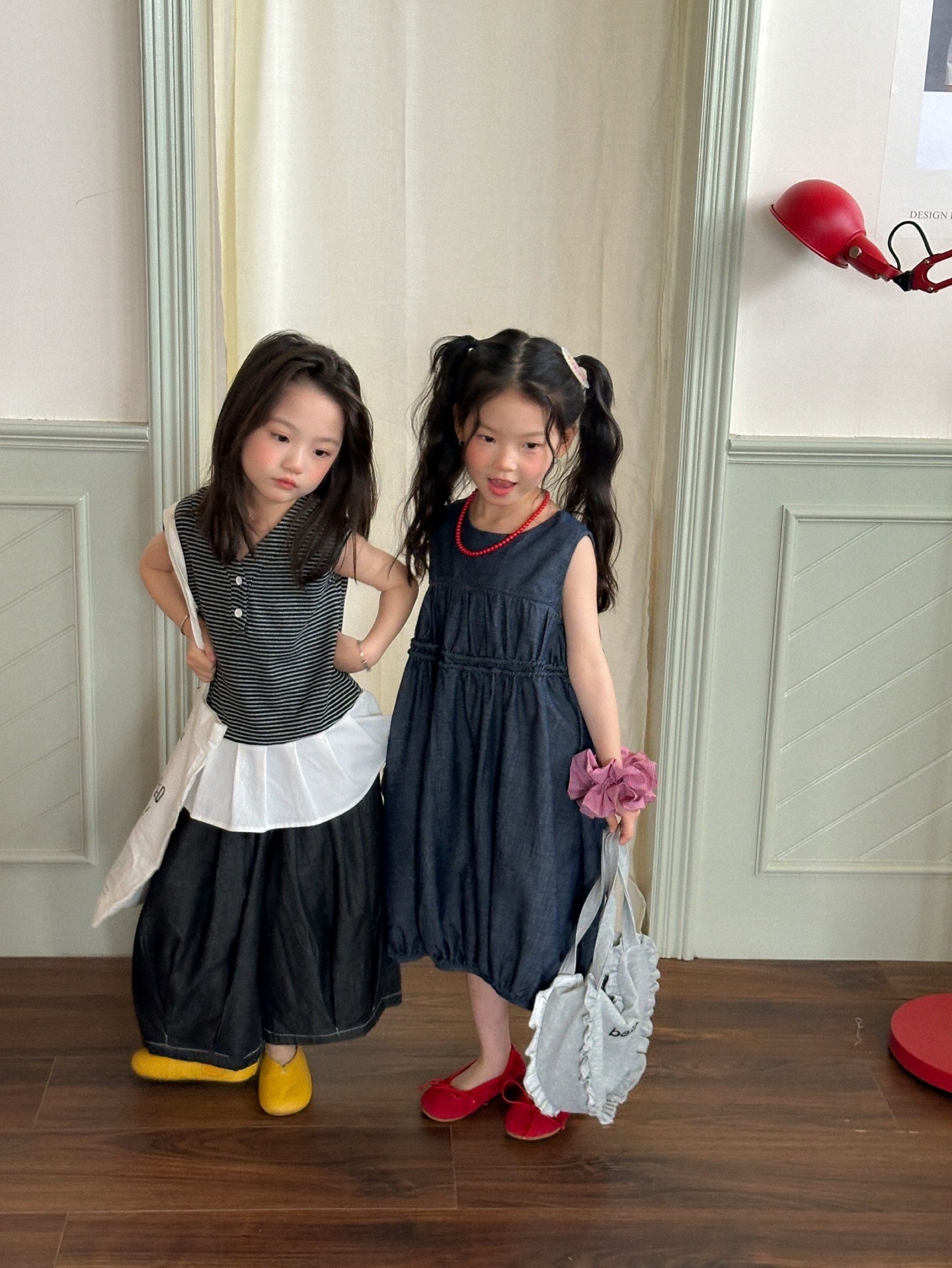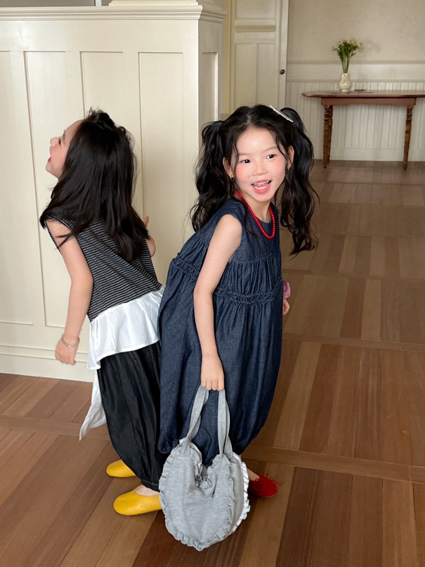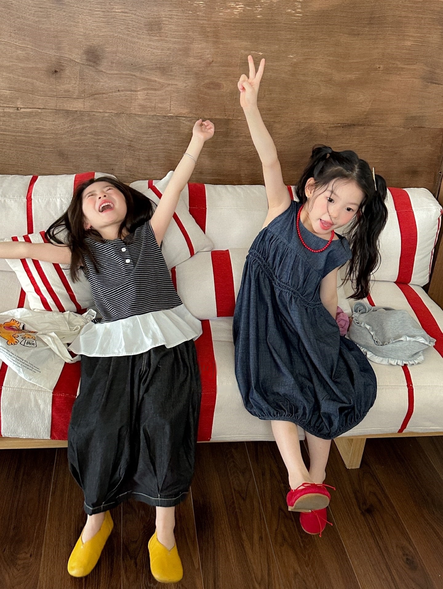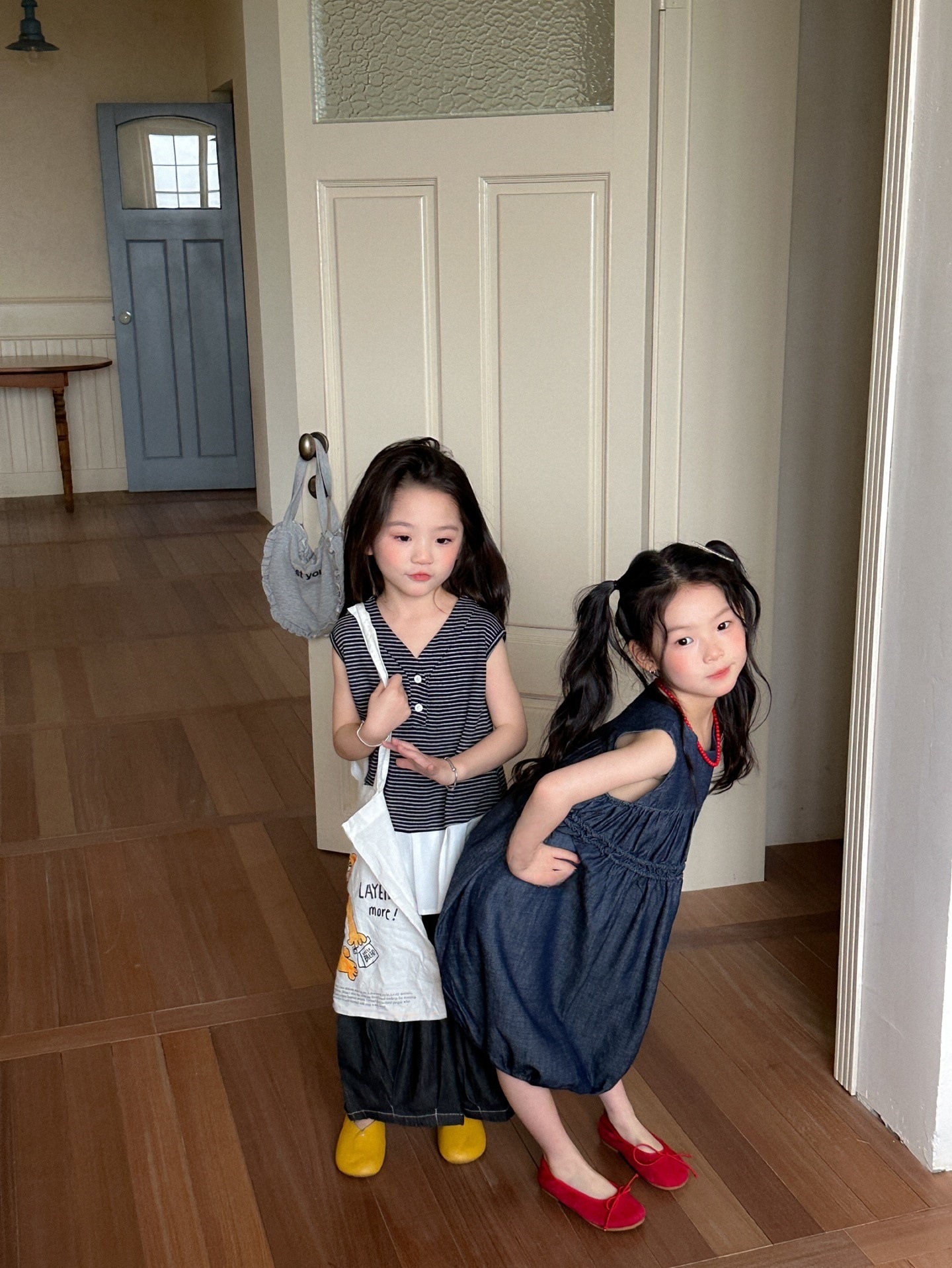 한국 아동복 소녀 느슨한 캐주얼 원피스 2025 여름 새로운 아기 소녀 스타일 데님 스커트 대외 무역스토어 가기
