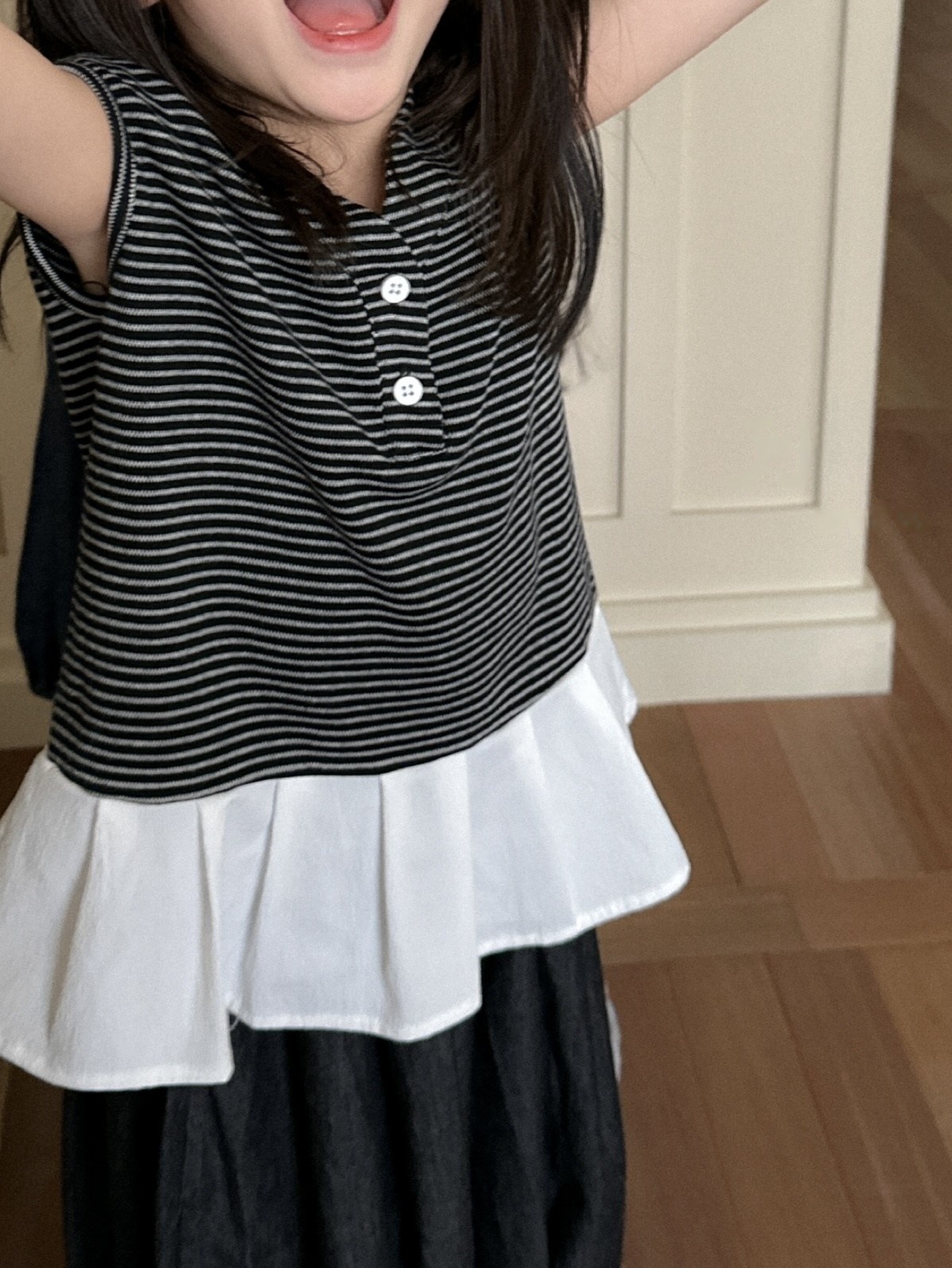 한국 아동복 소녀 느슨한 캐주얼 원피스 2025 여름 새로운 아기 소녀 스타일 데님 스커트 대외 무역